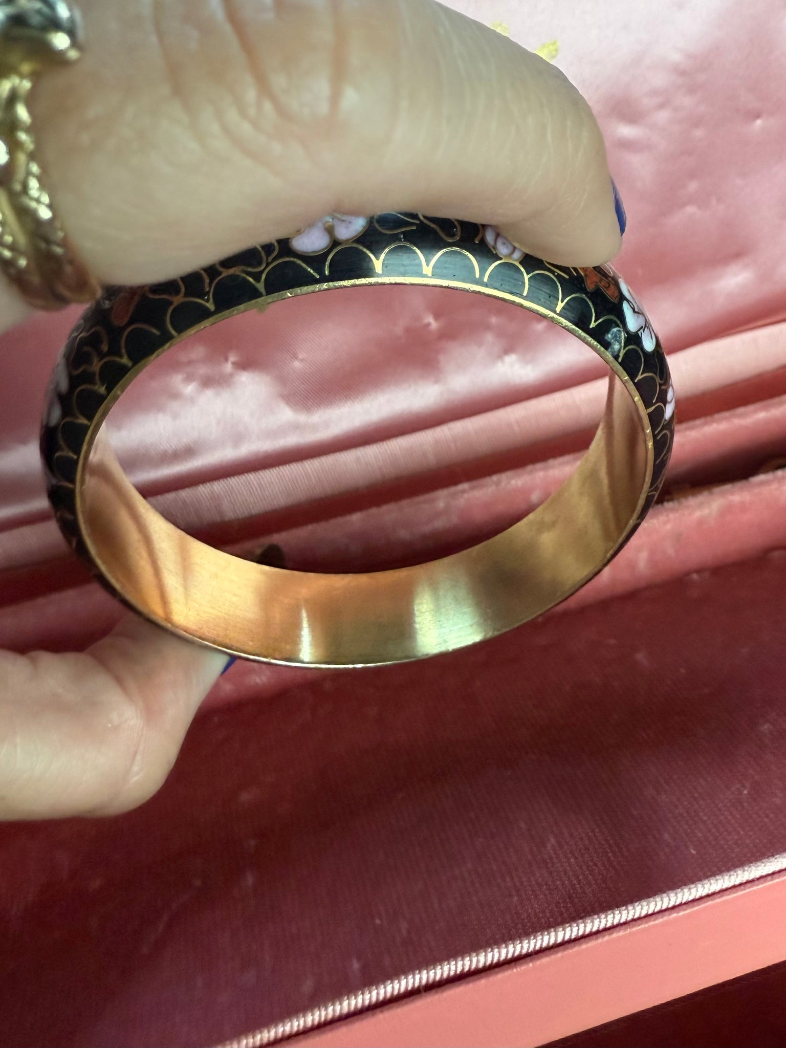 Costume jewelry • 54.5 grams • measures 2.5” going across the inside of the bangle, 17mm width
