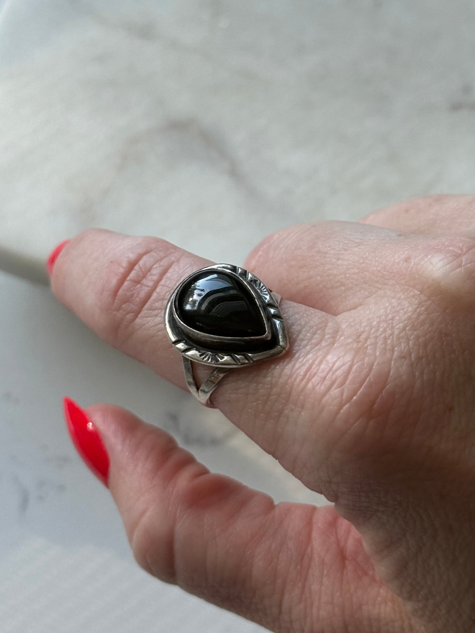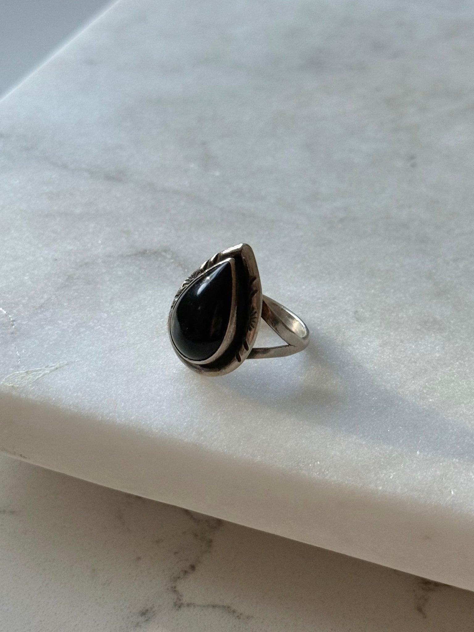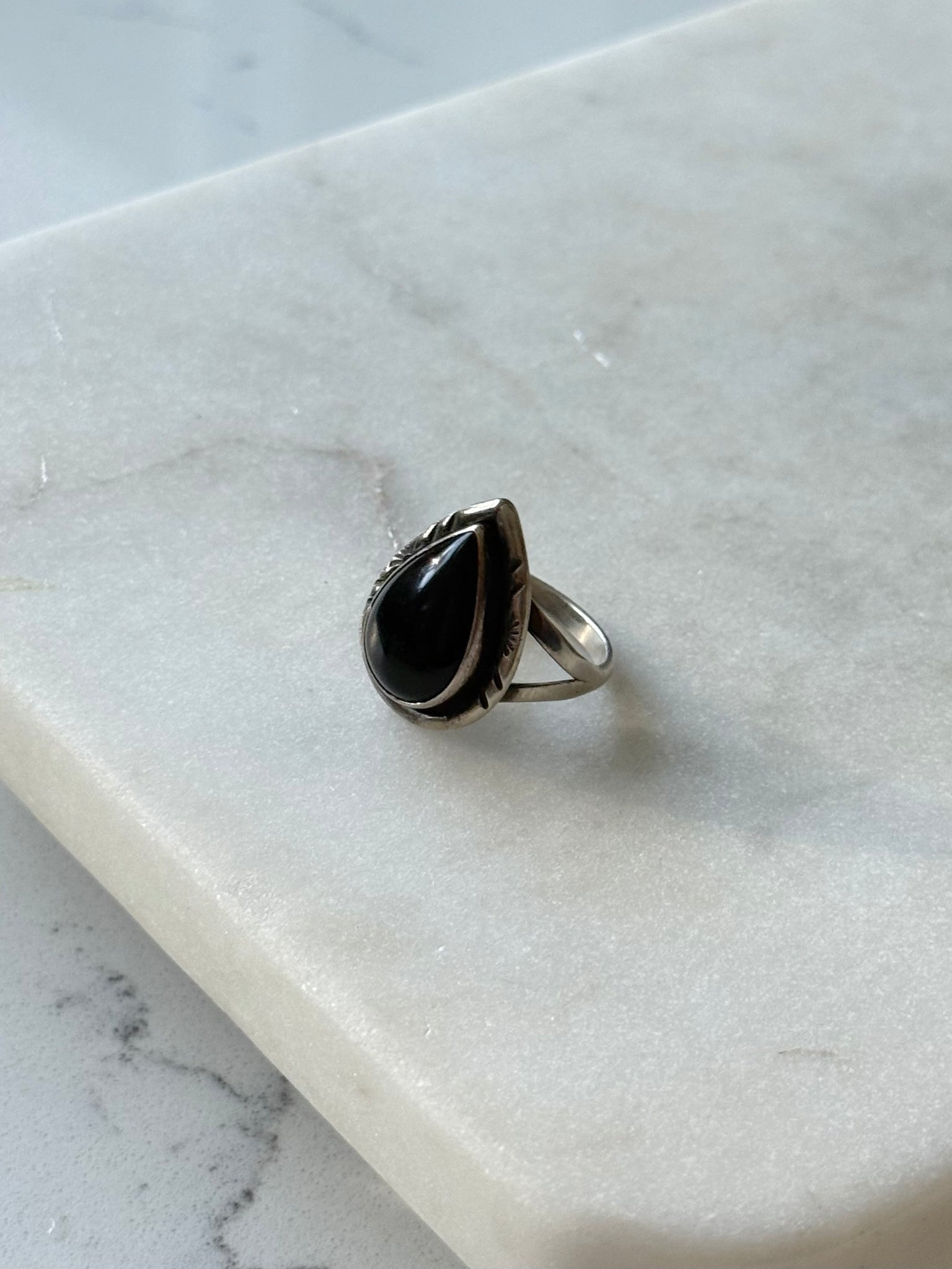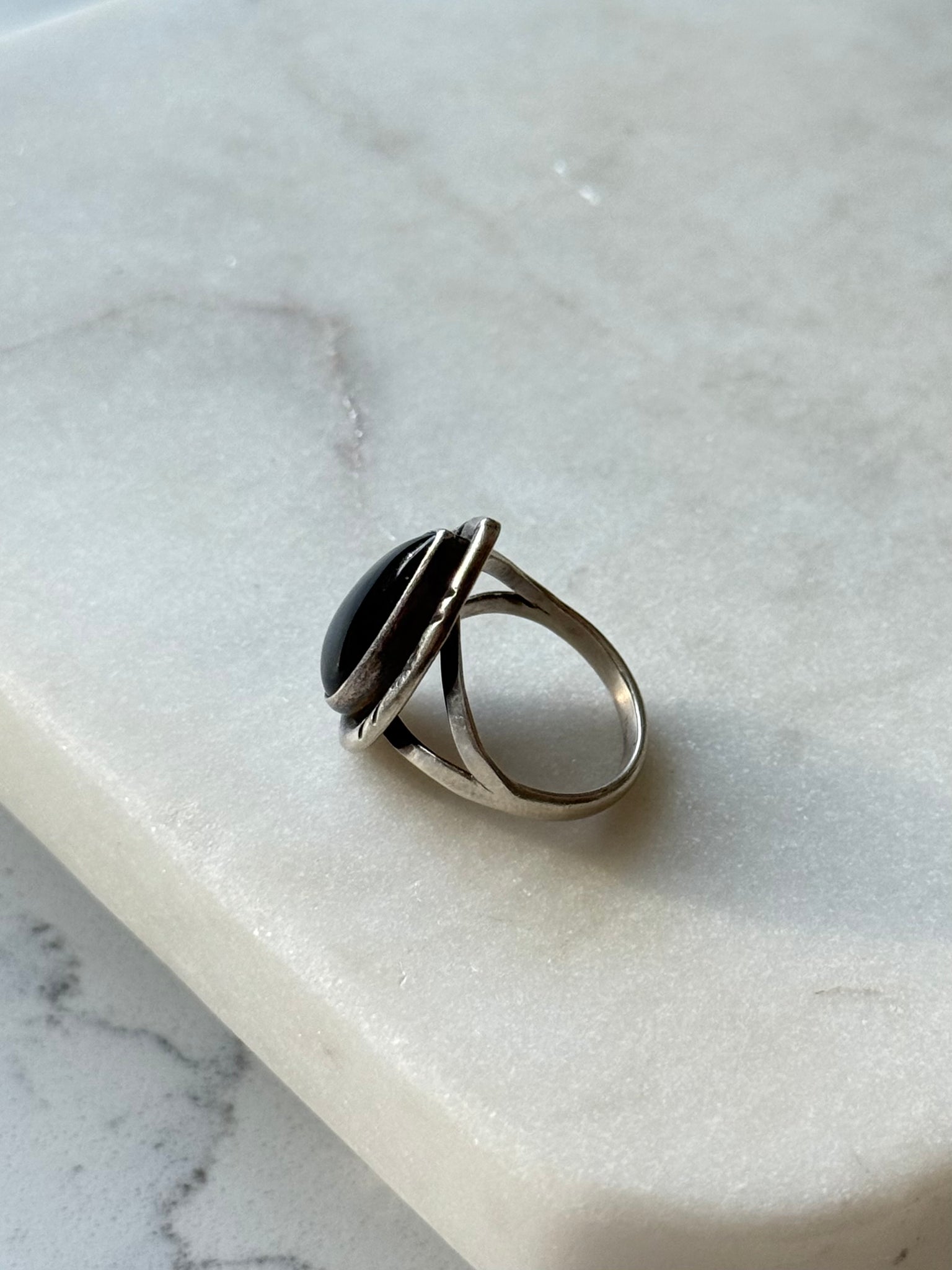 Vintage Black Onyx Sterling Silver Ring Size 7.25