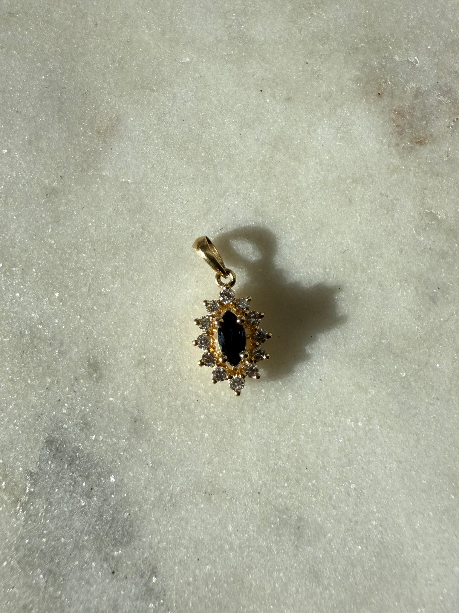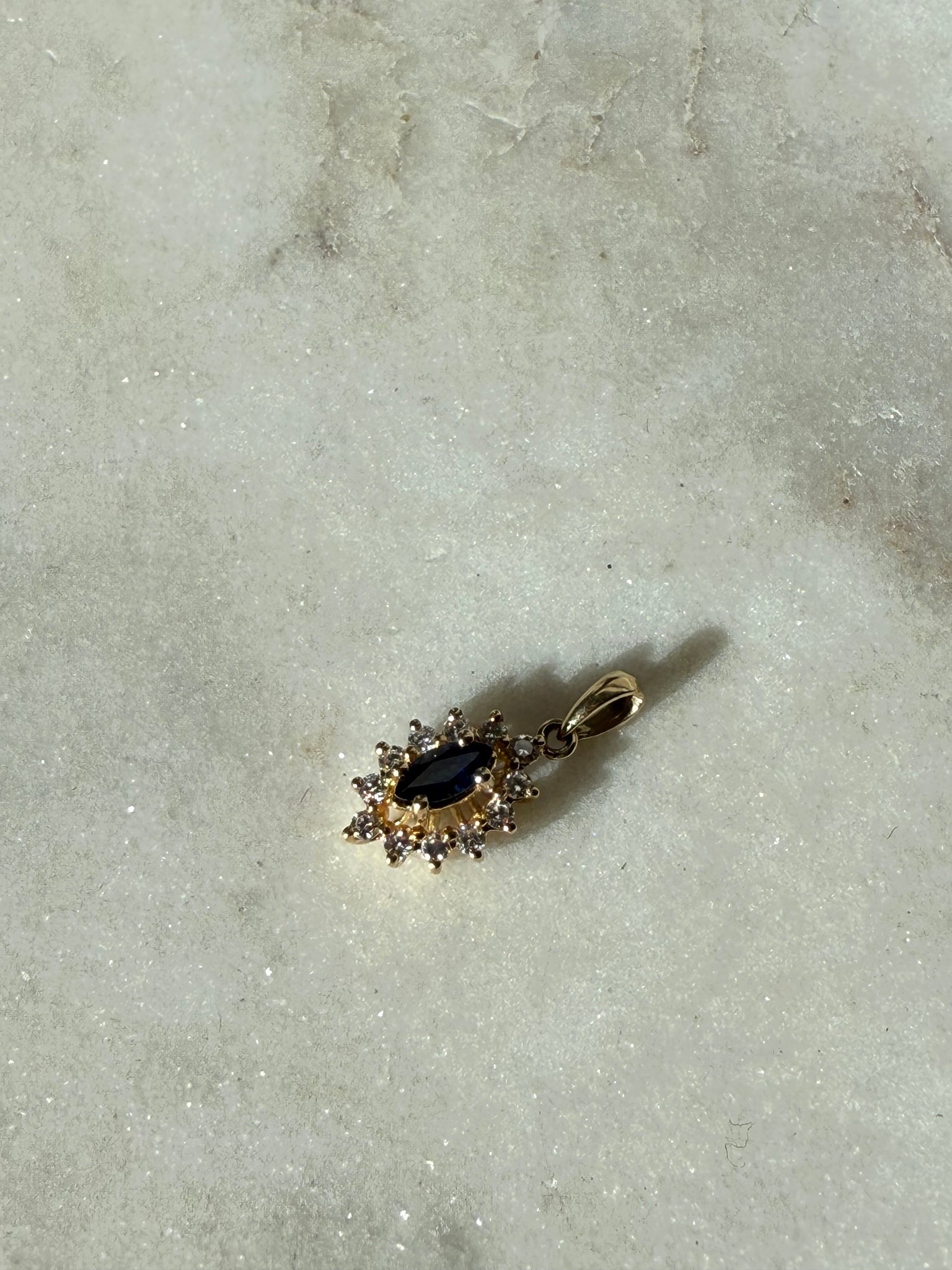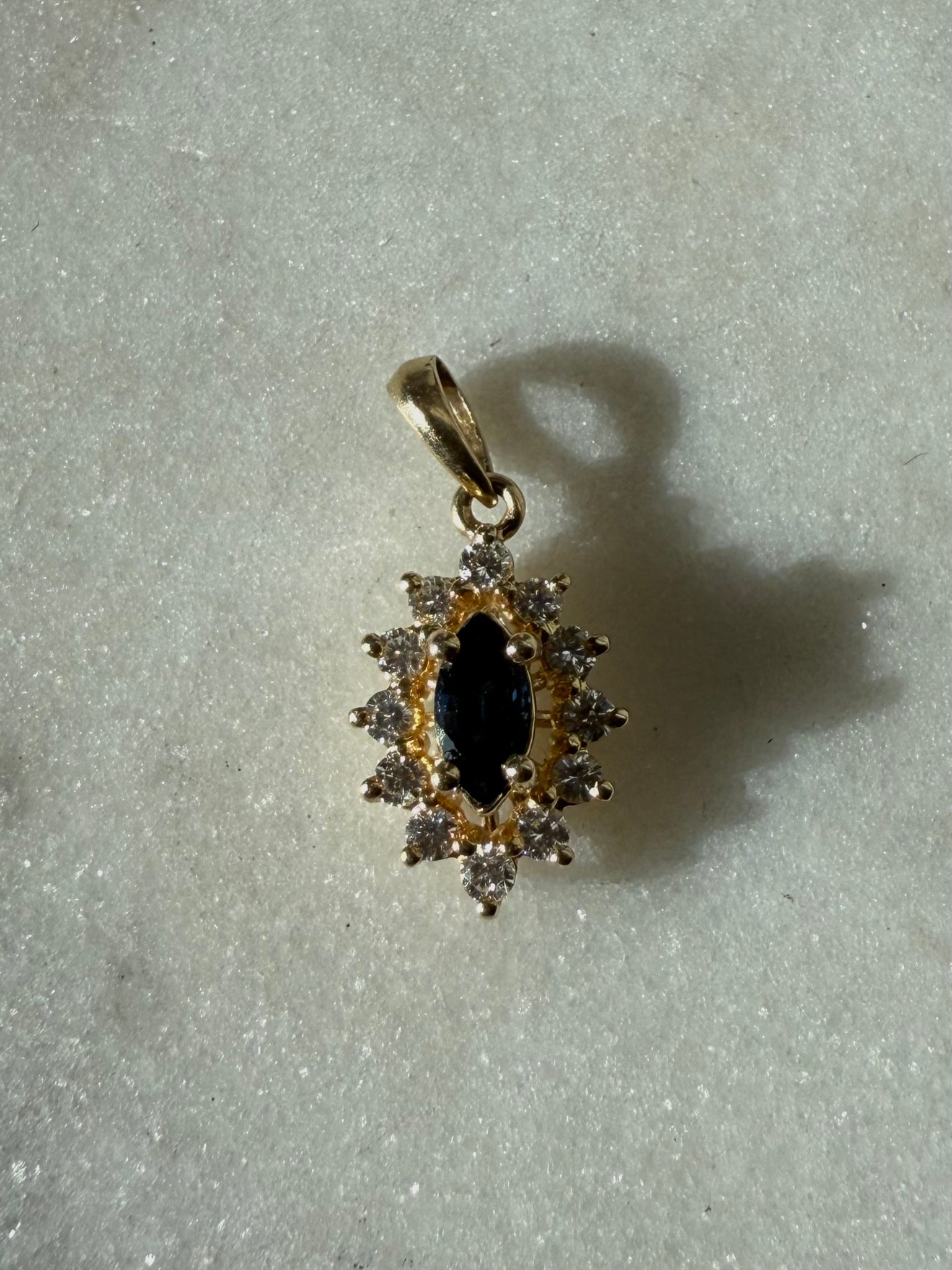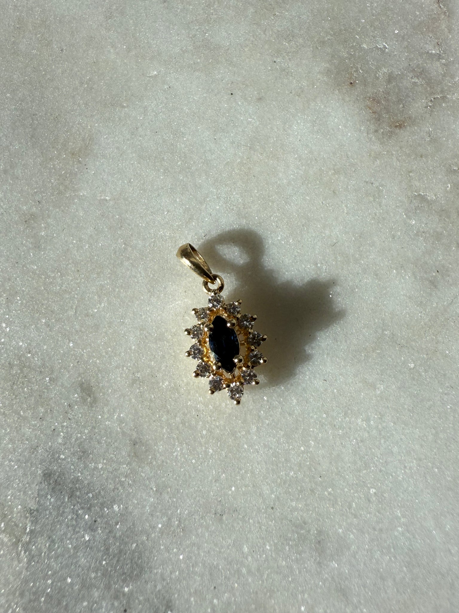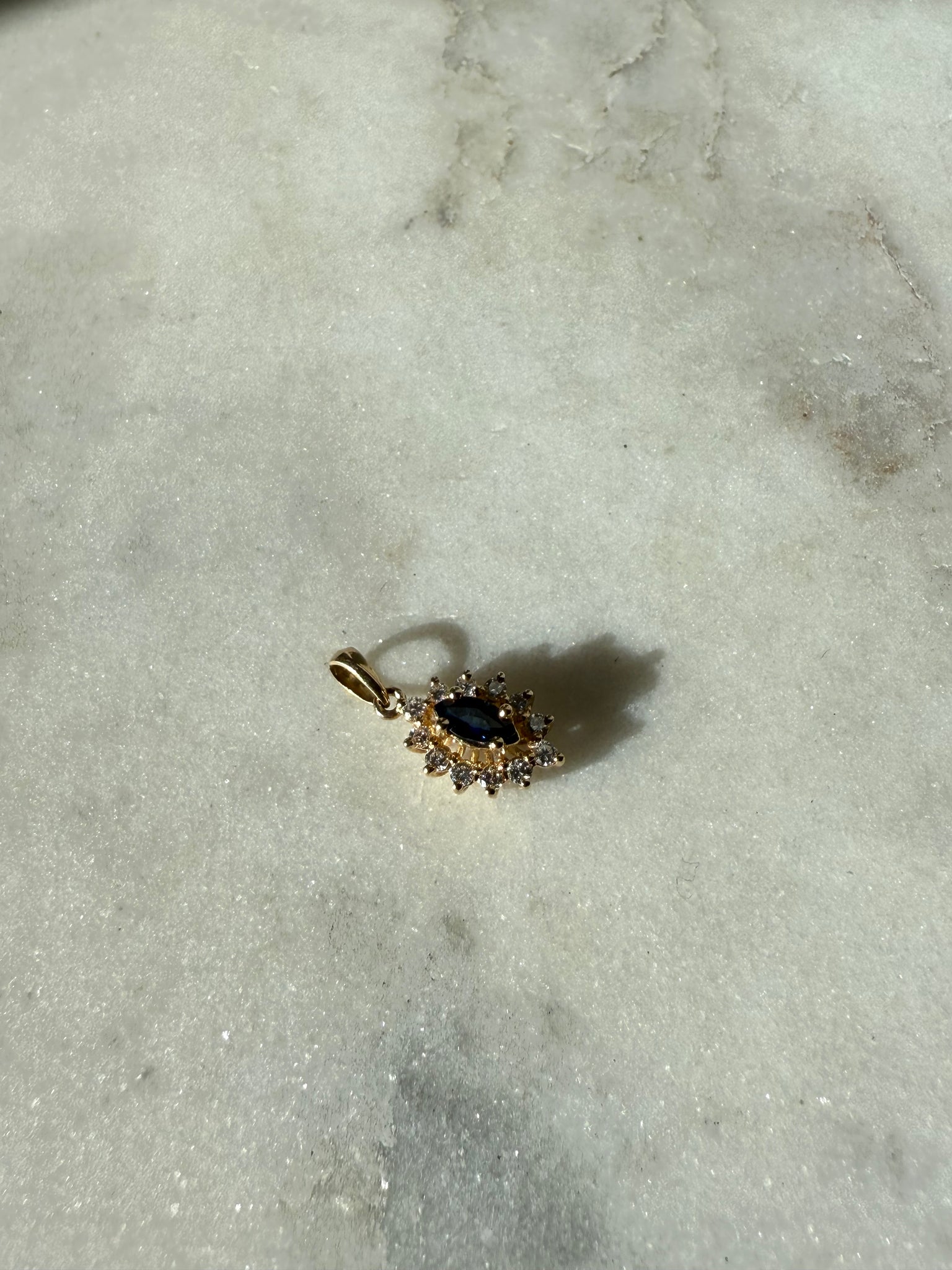 Vintage Blue Sapphire & Diamond 14k Gold Halo Charm