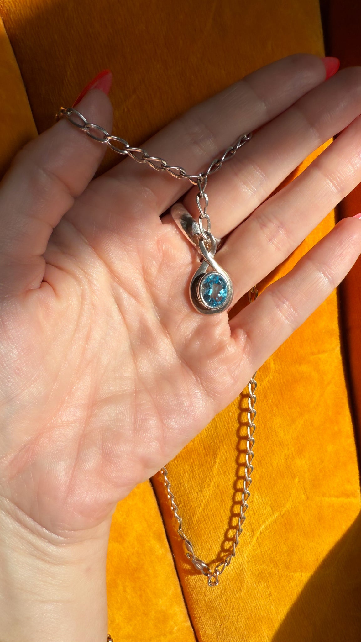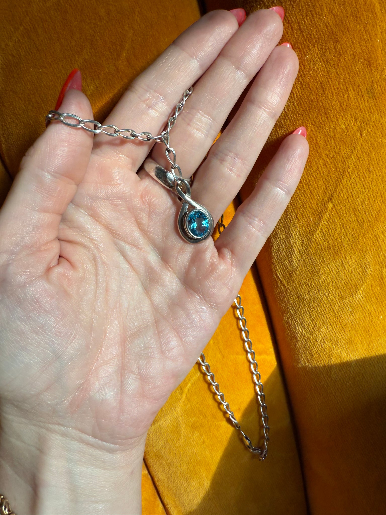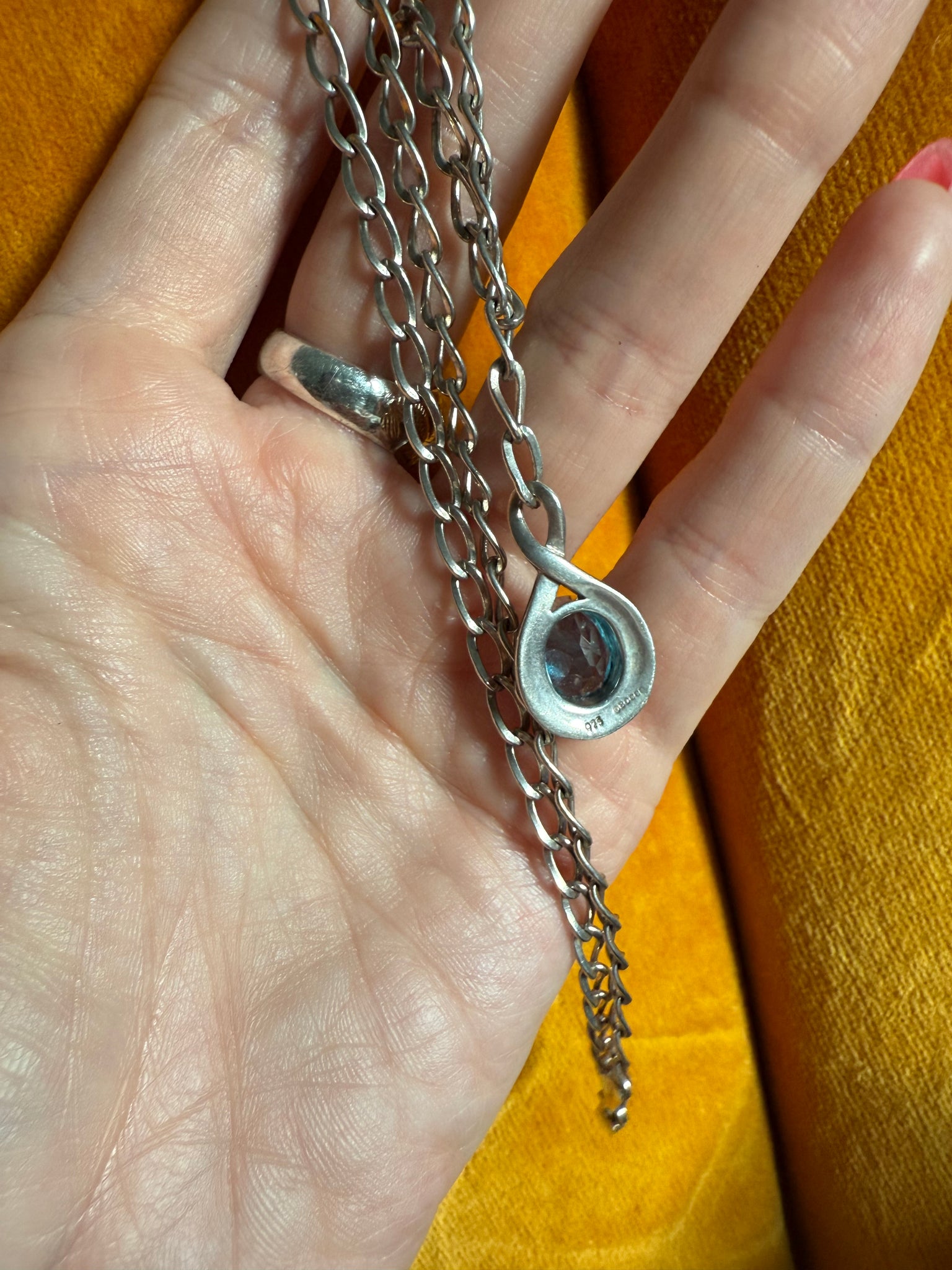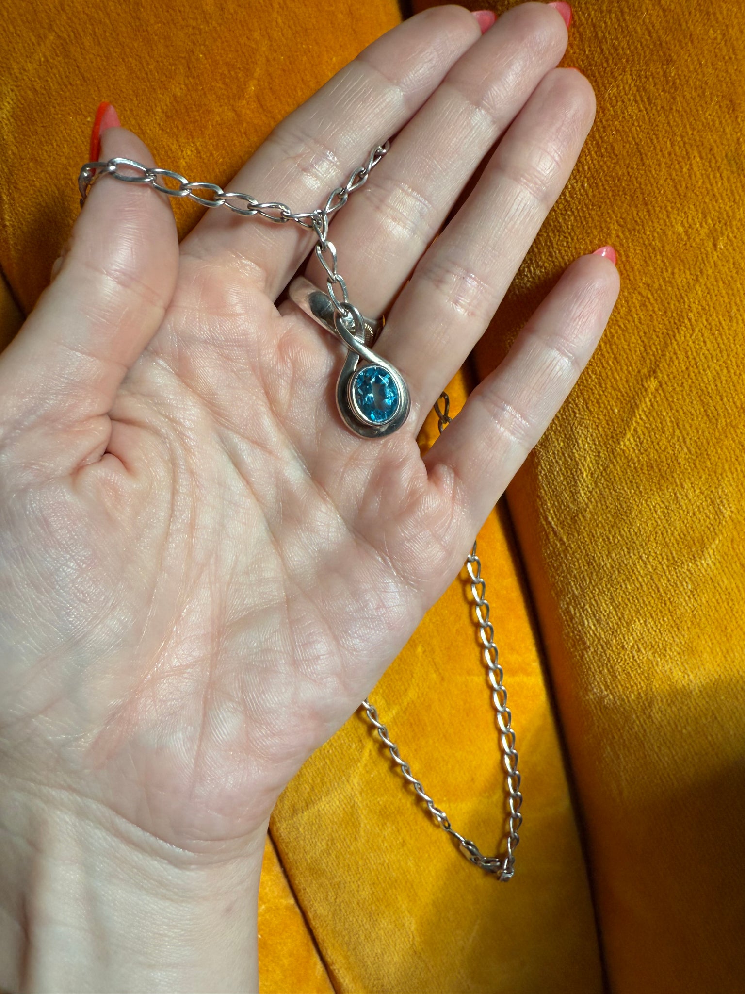 .925 Sterling silver and blue topaz • 14.1 grams • 4mm width chain • 14.5mm pendant • 18.5” length chain