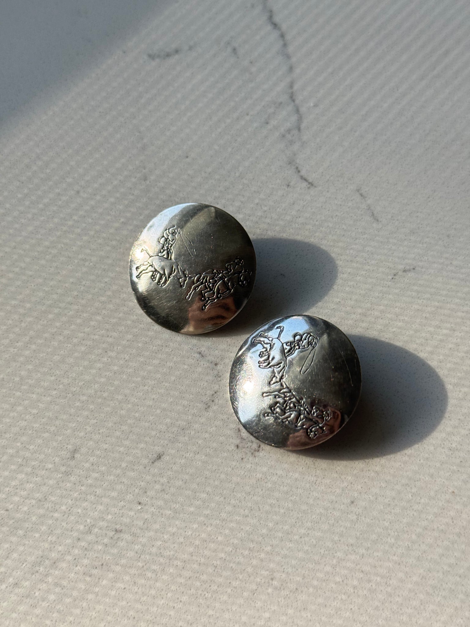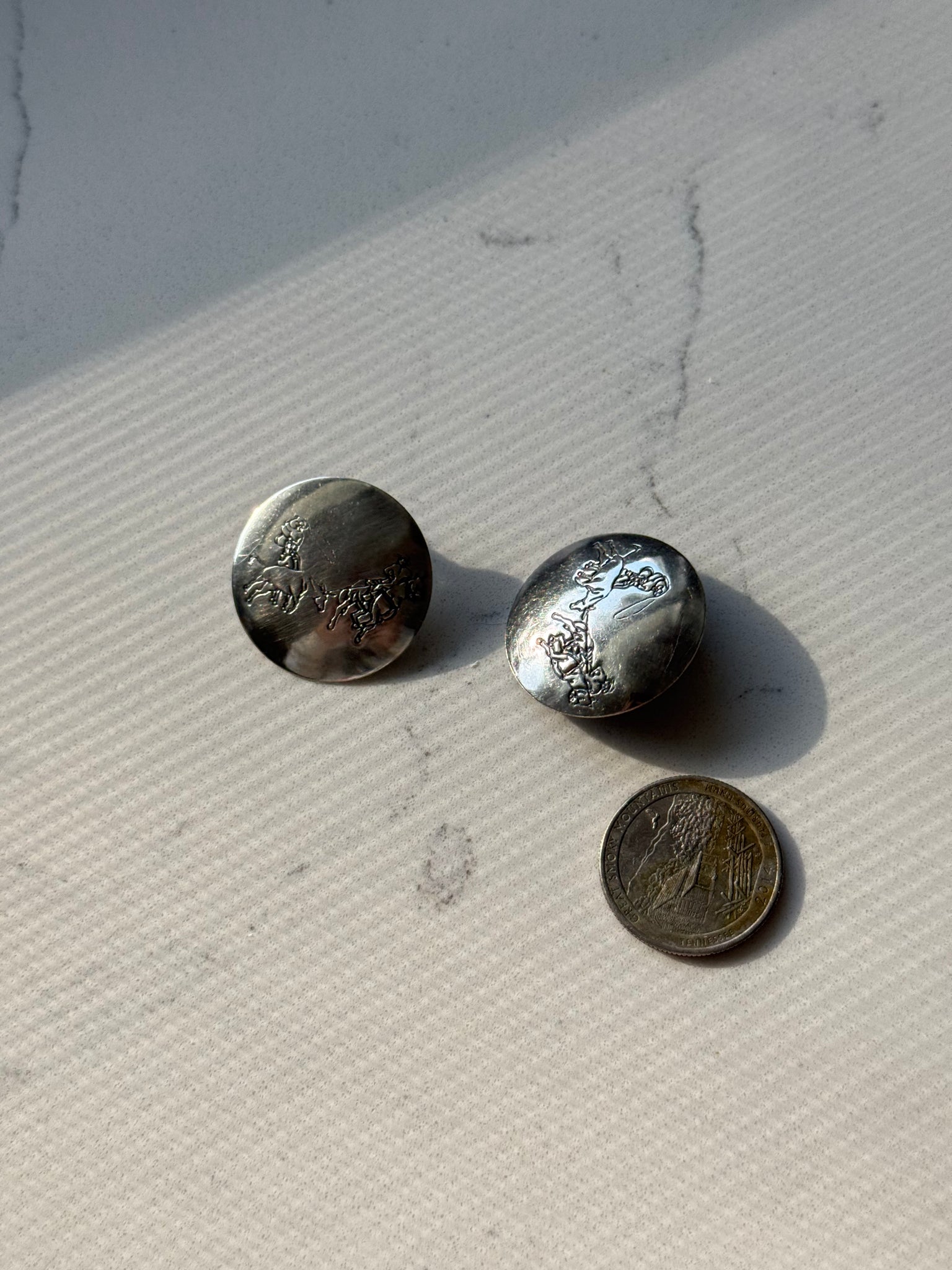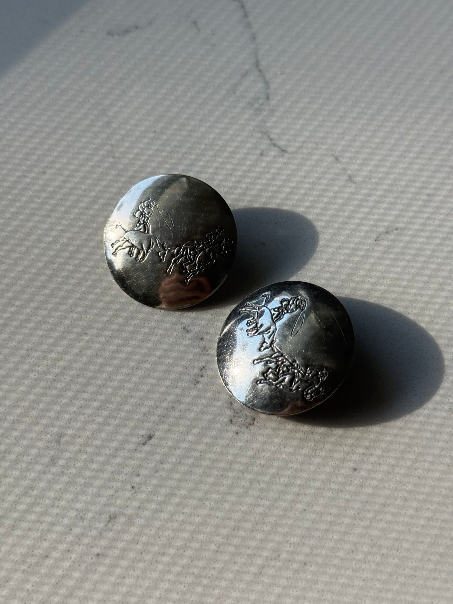 Vintage Bull Riding Sterling Silver Disc Earrings