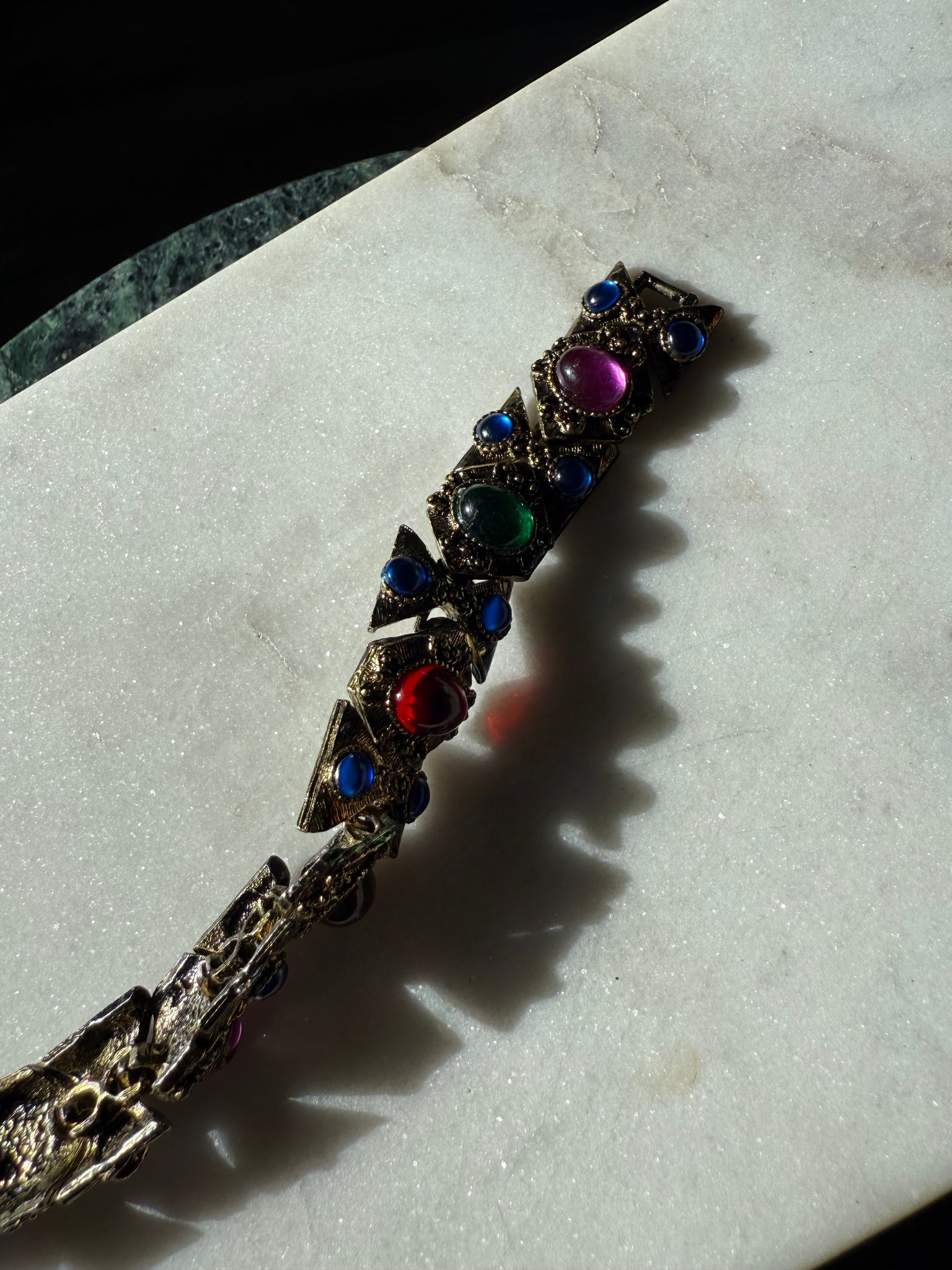 18mm width • measures almost 7.25”, best for 7” wrist and under • weighs 67 grams • goldtone worn off in some areas