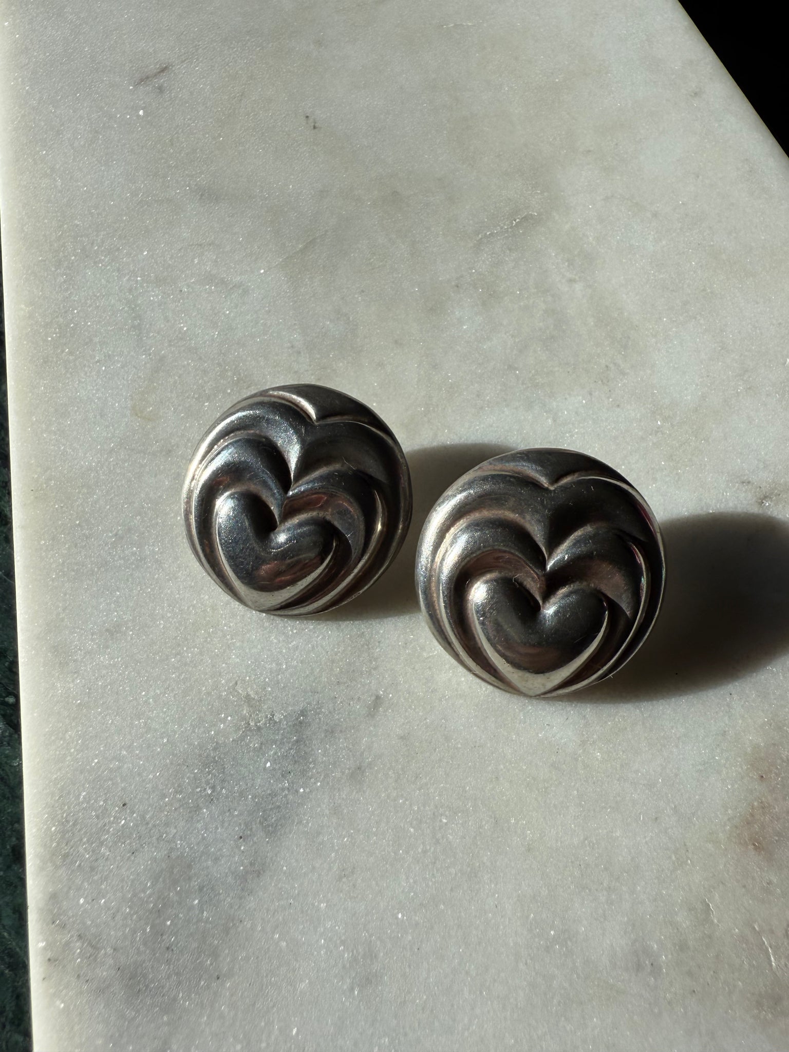 Vintage Chunky Ribbed Heart Post Back Earrings