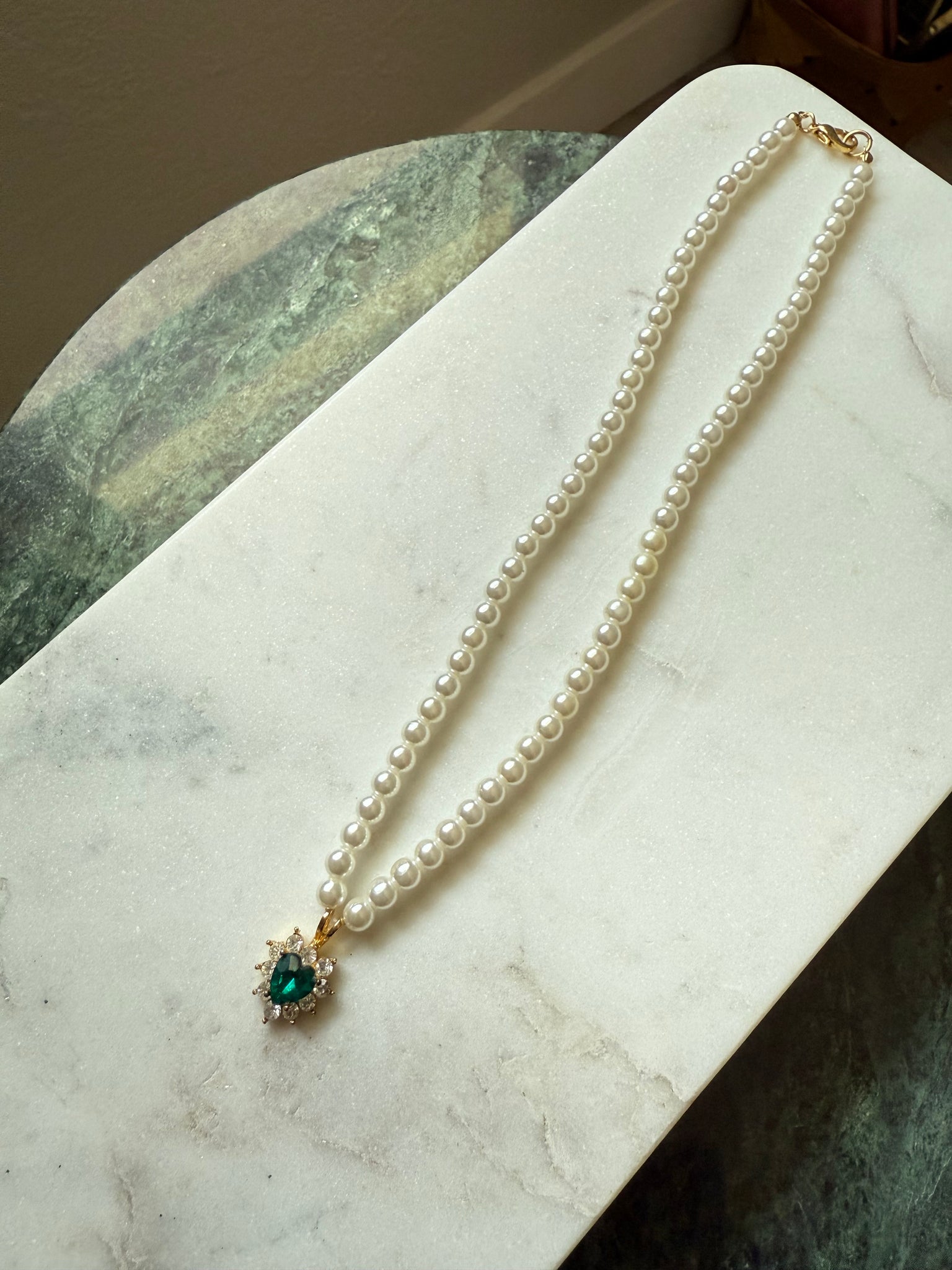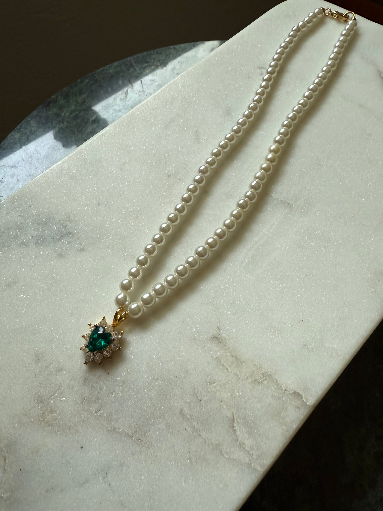 Vintage Costume Faux Pearl Heart Necklace 17.5”