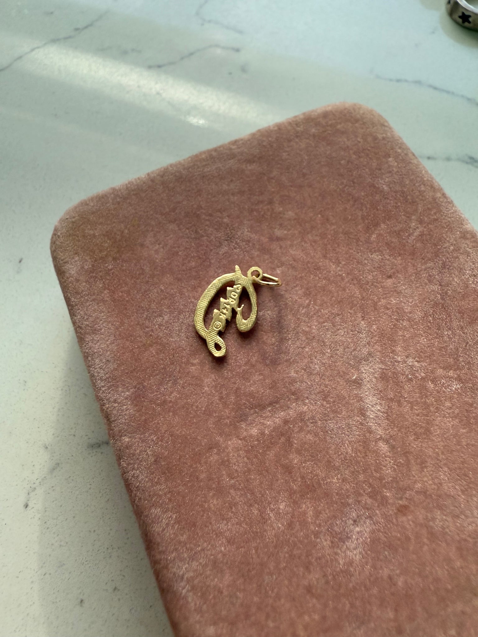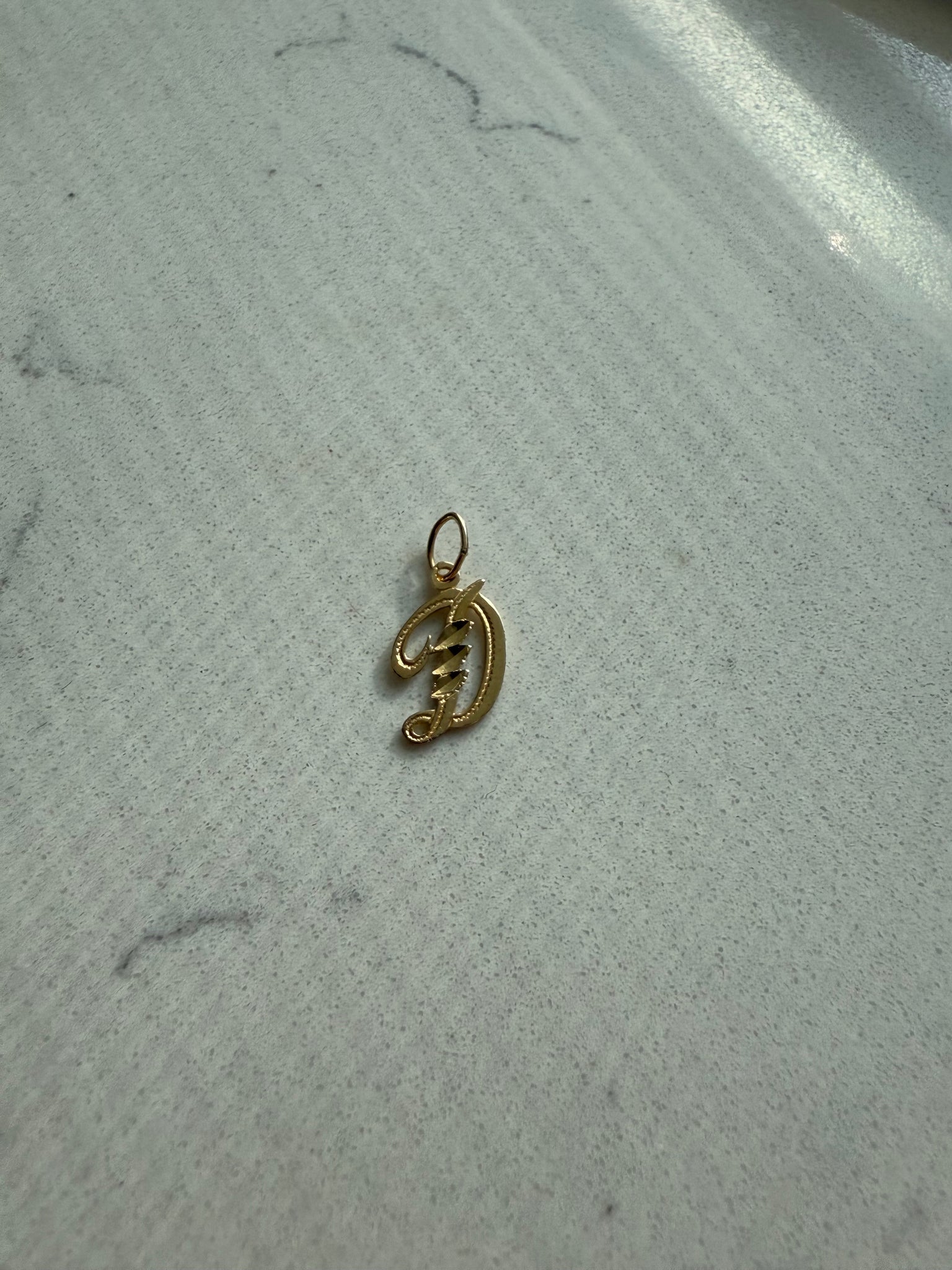 Vintage Cursive ‘D’ 14k Yellow Gold Charm