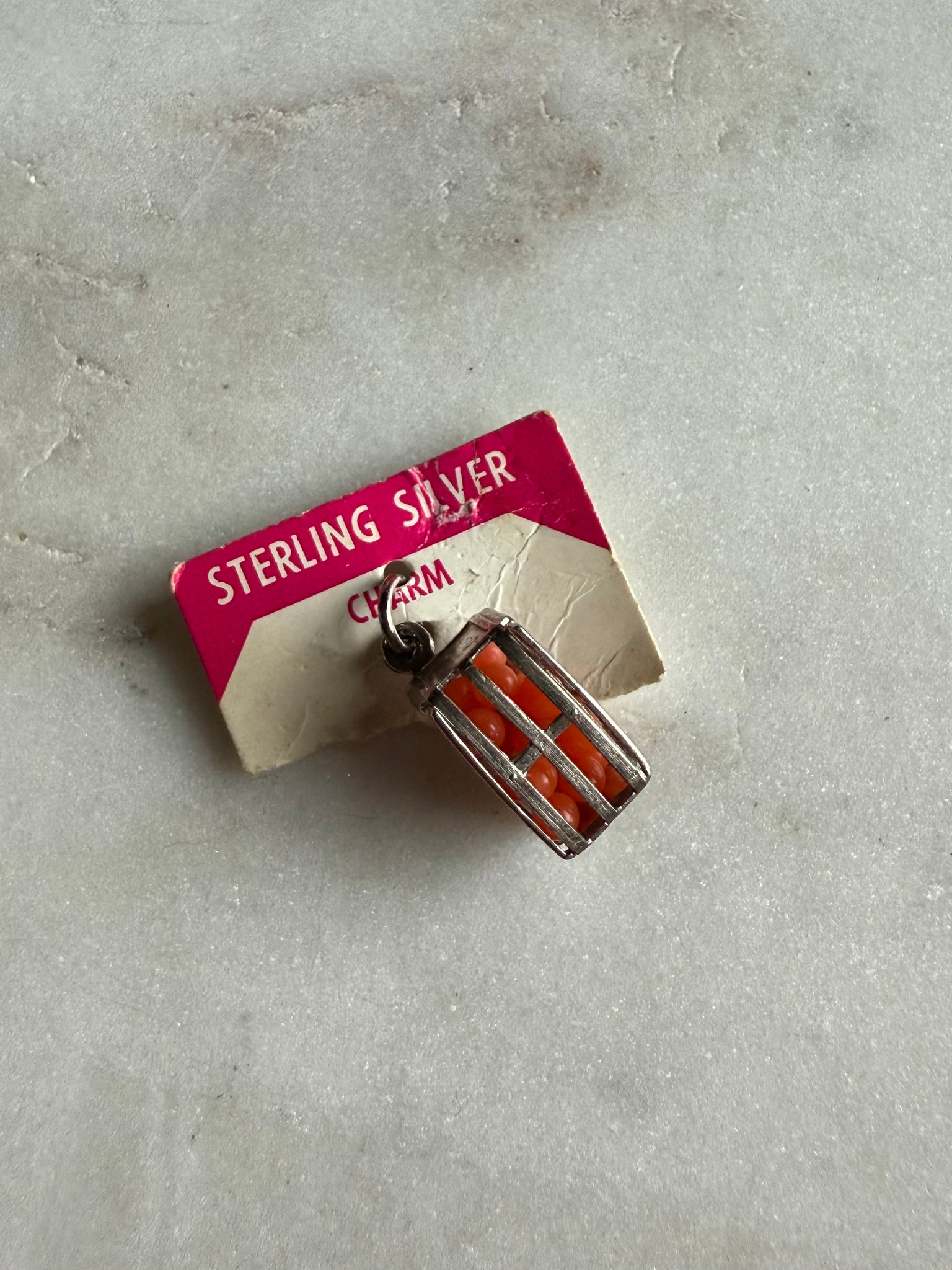 Vintage Deadstock Sterling Silver Orange Basket Charm