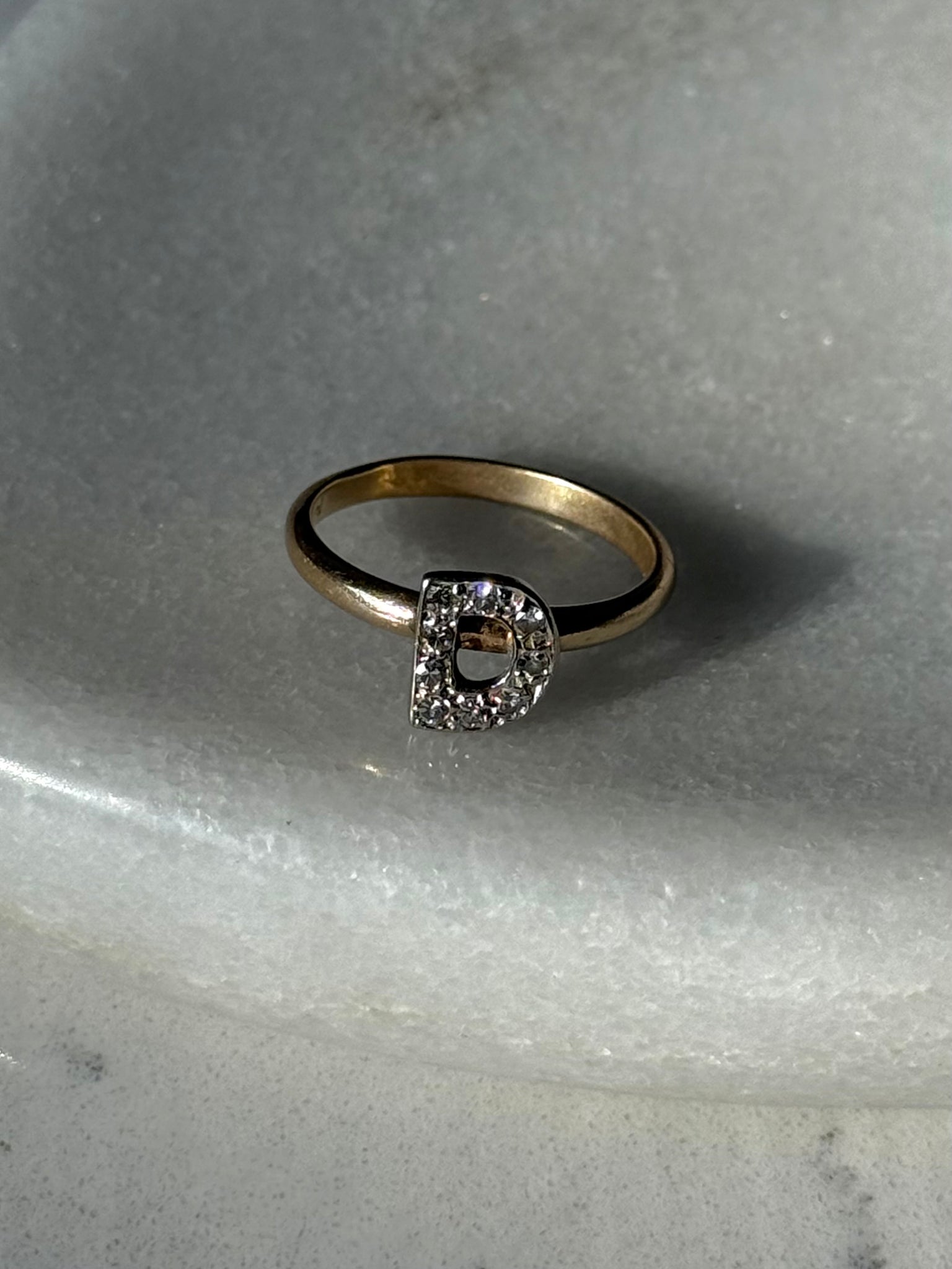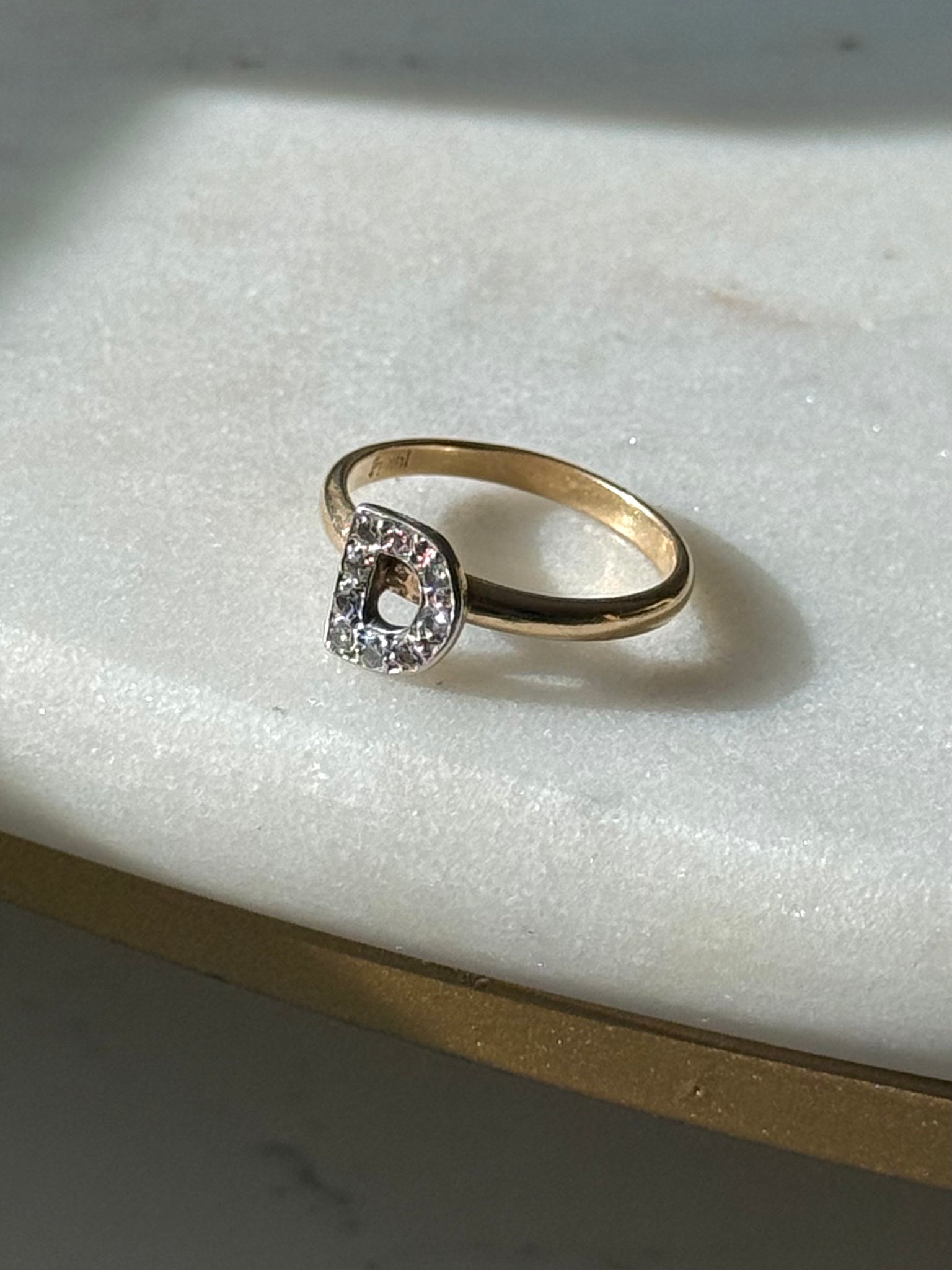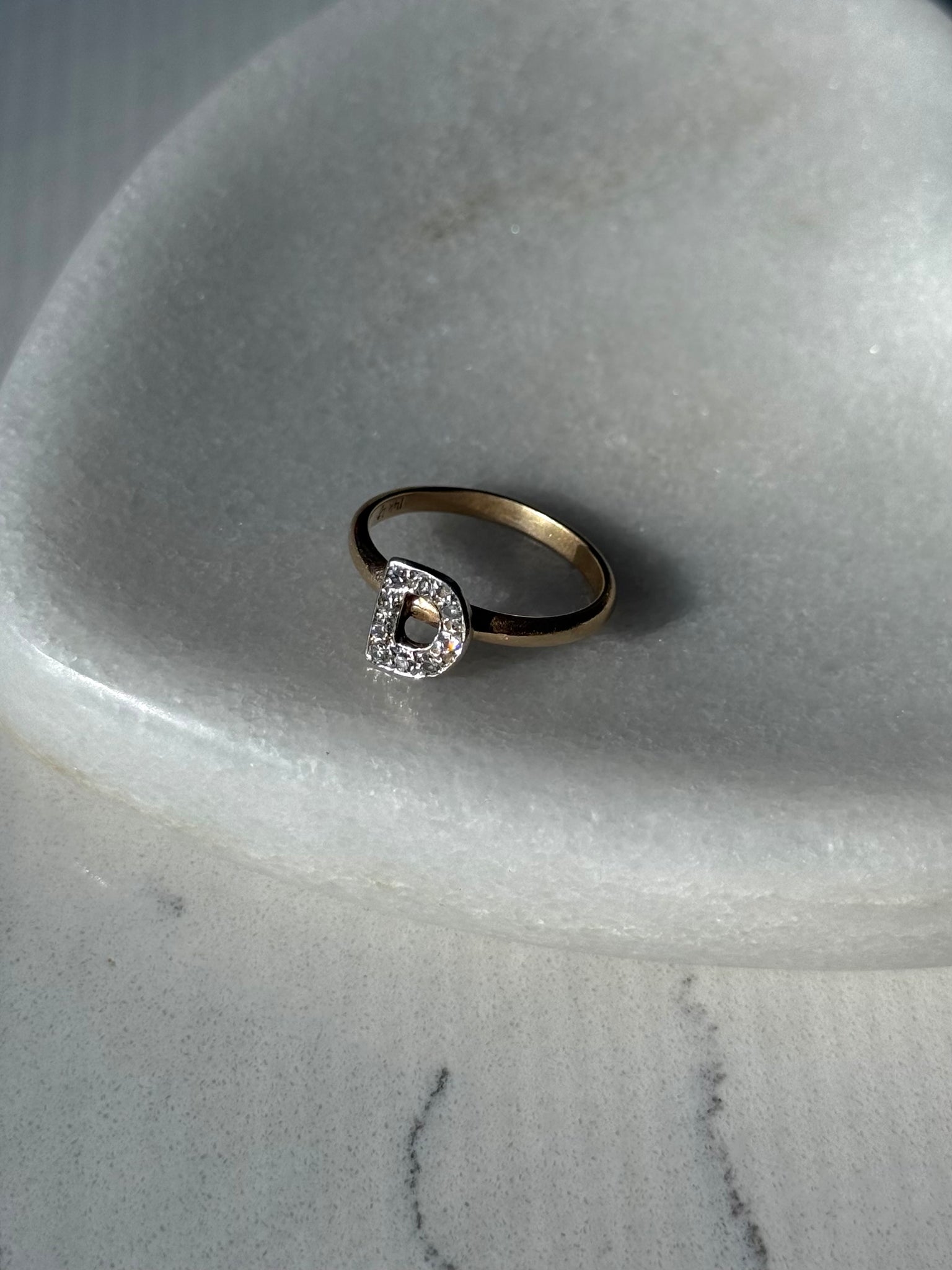 Vintage Diamond ‘D’ 14k Gold Ring Size 7