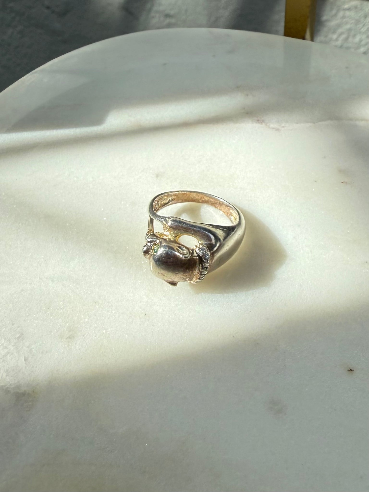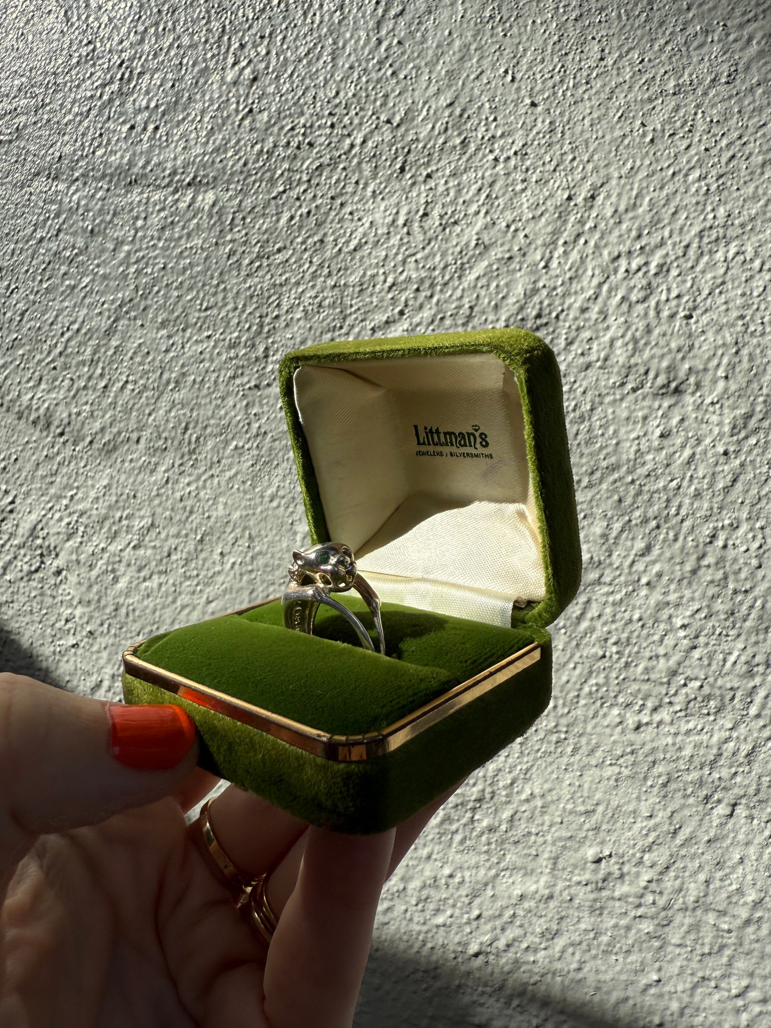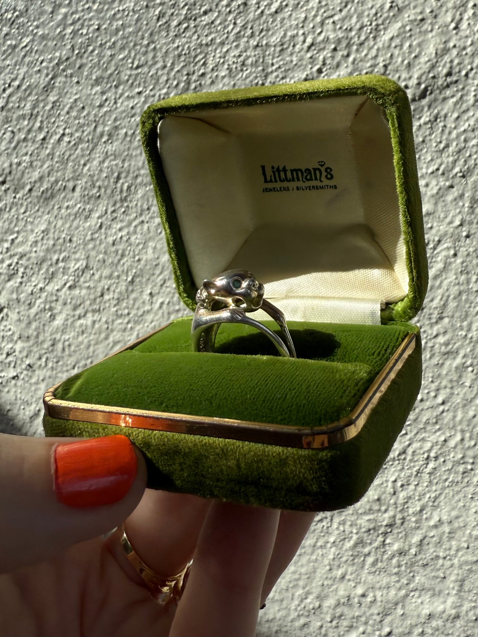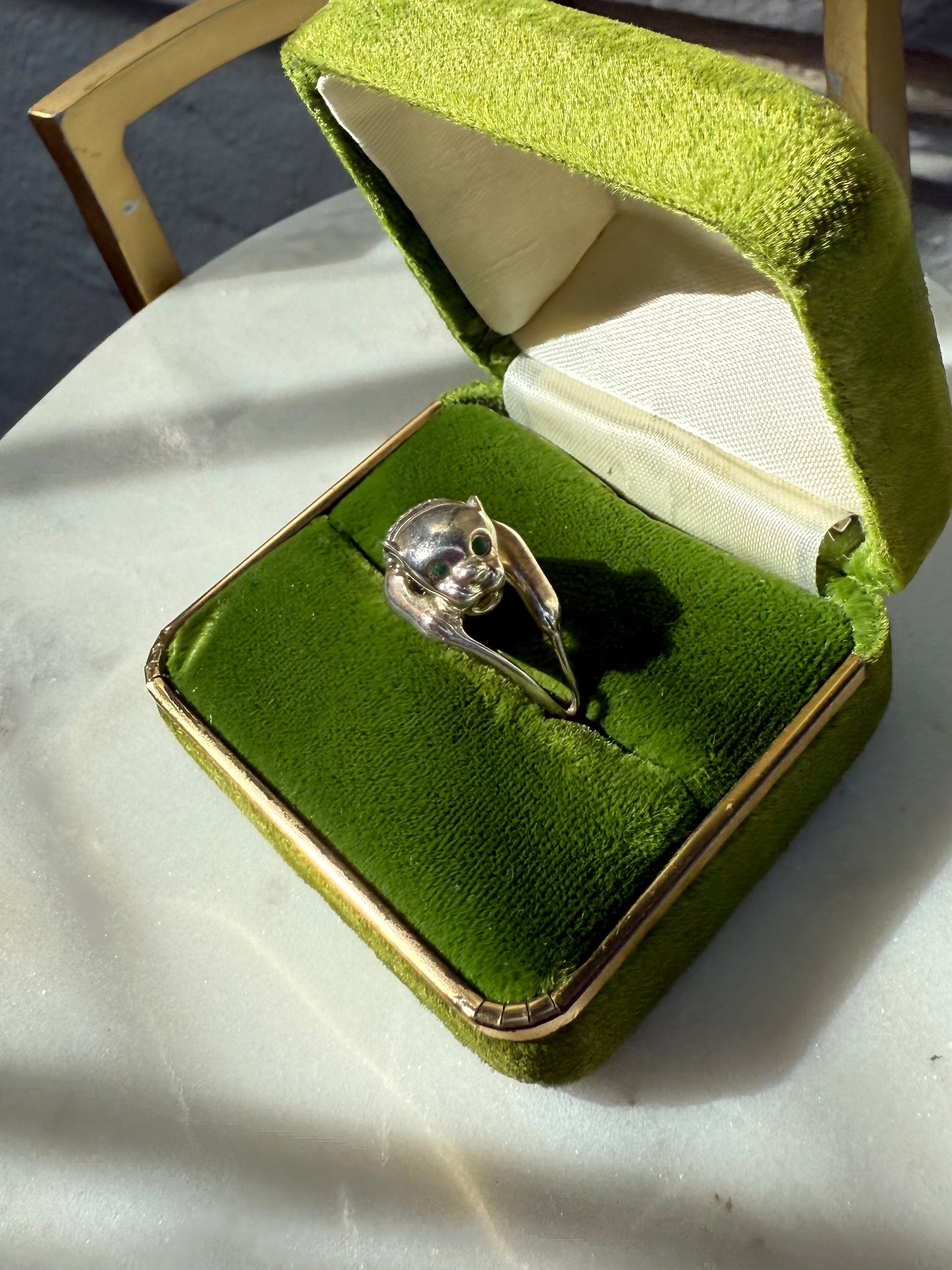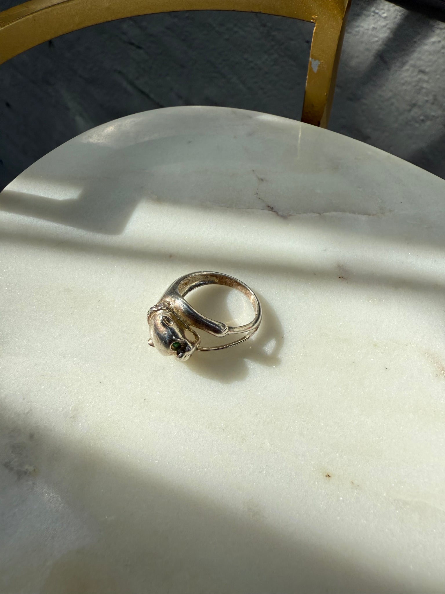 Vintage Emerald Eye Sterling Silver Panther Ring Size 6.75