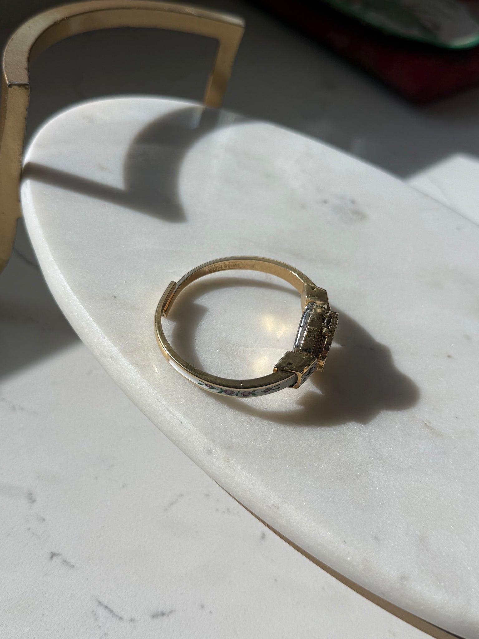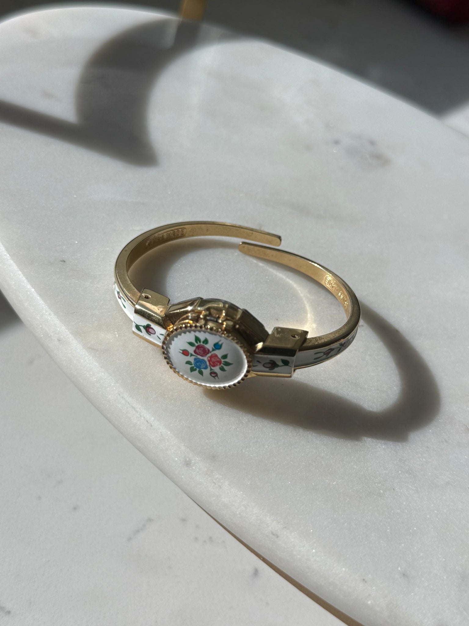 Gold plated costume wrist watch • Unsure if working, untested and would need a battery • best for around 6.25” wrist • 2” inner diameter