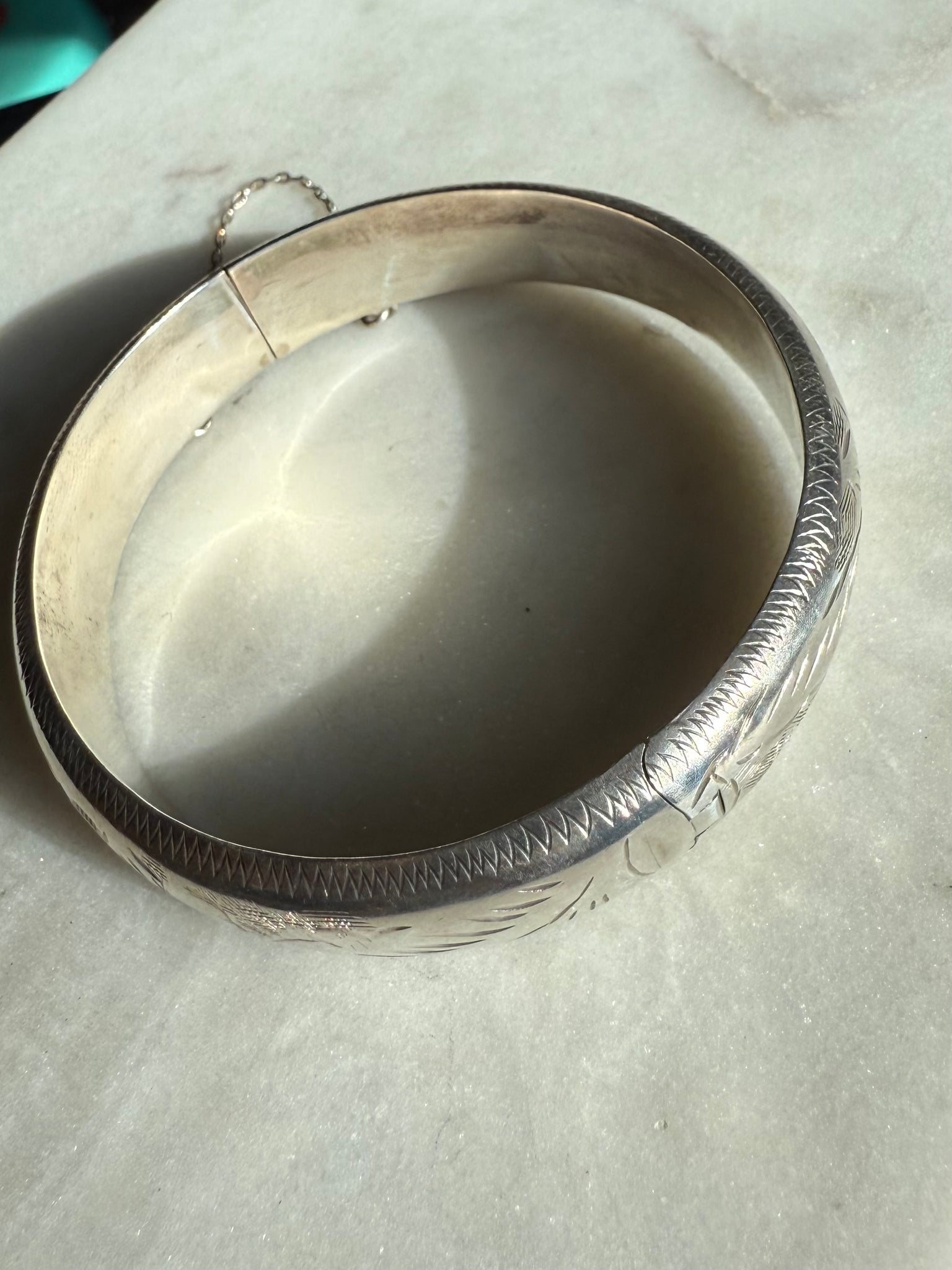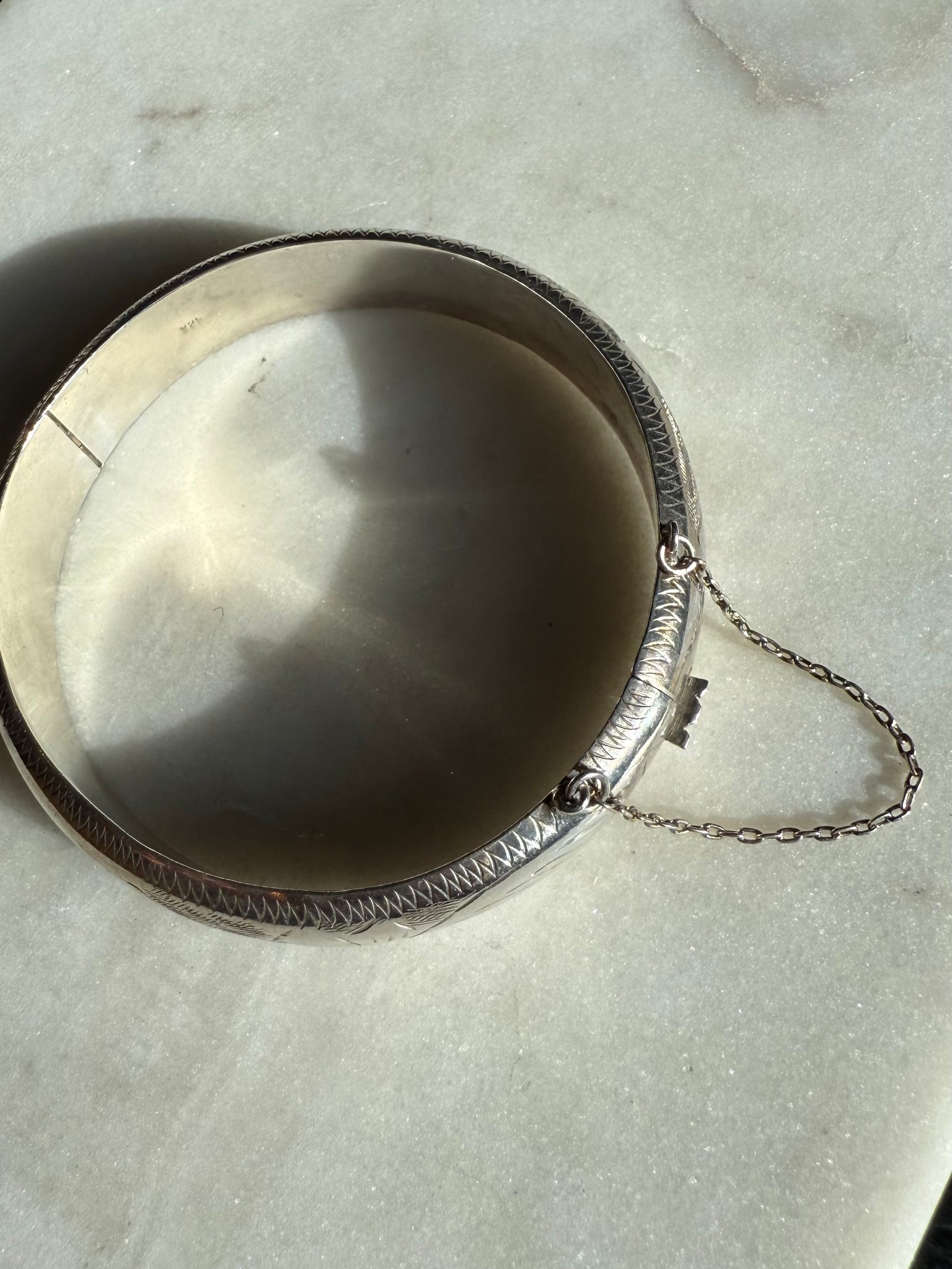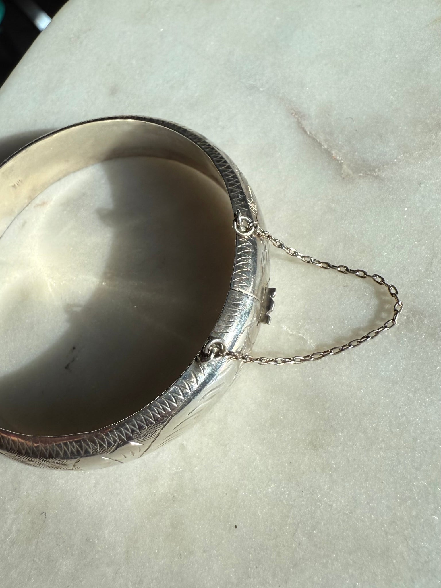 Vintage Etched Sterling Silver Bangle Bracelet