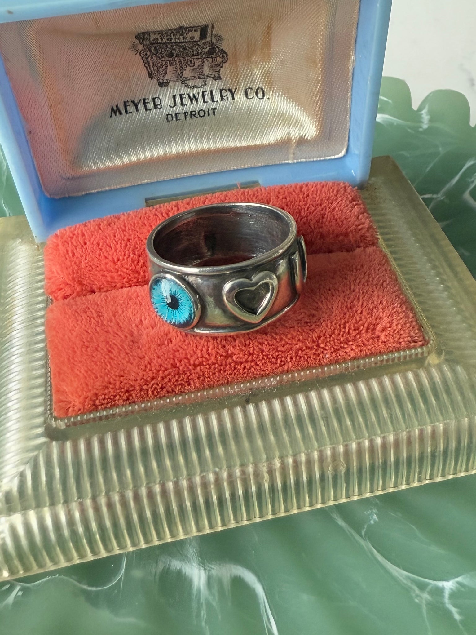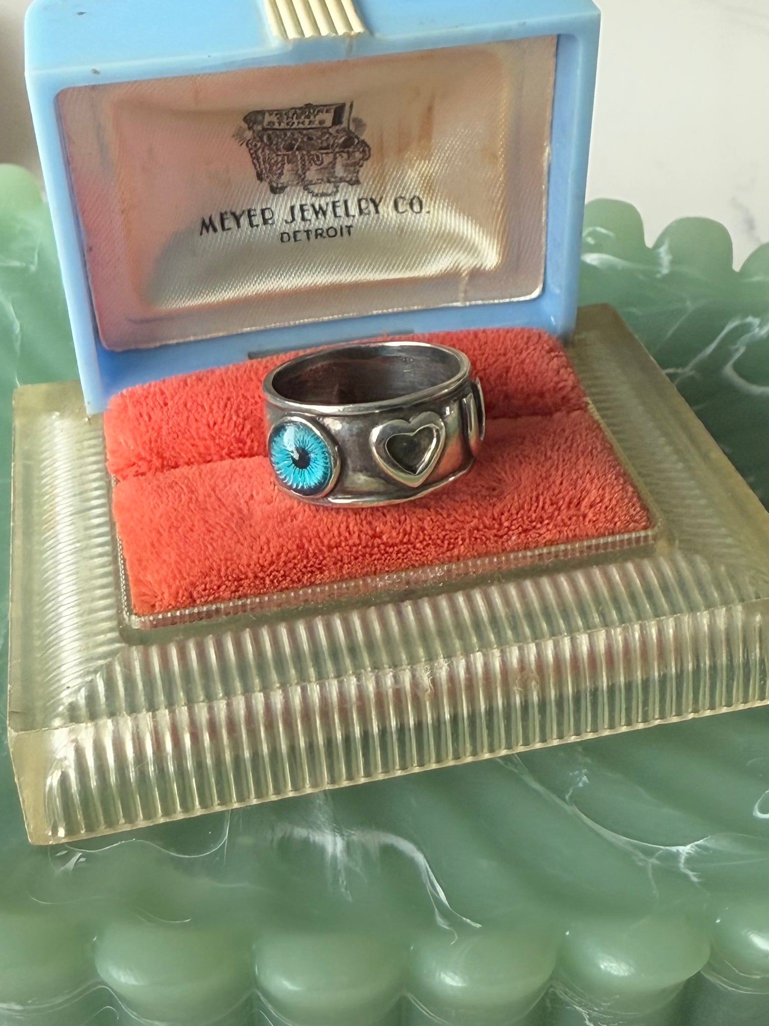 Vintage Eye Love You Sterling Silver Ring Size 7.25