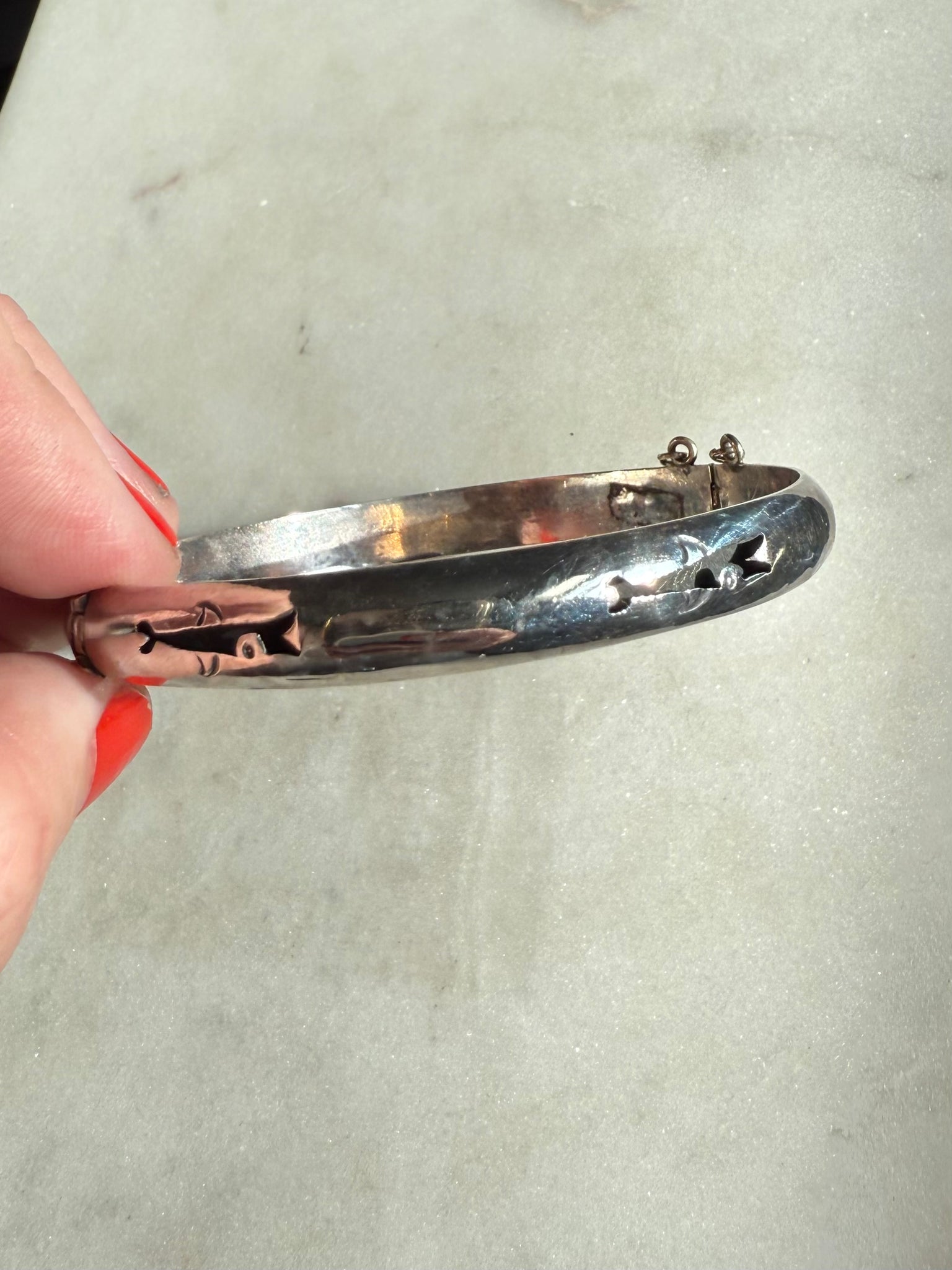 Vintage Fish Sterling Silver Bangle Bracelet