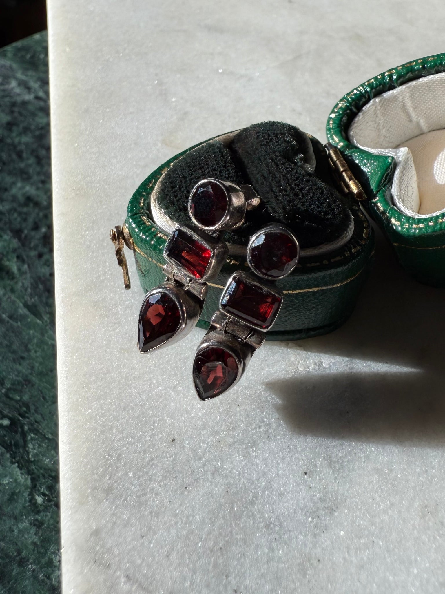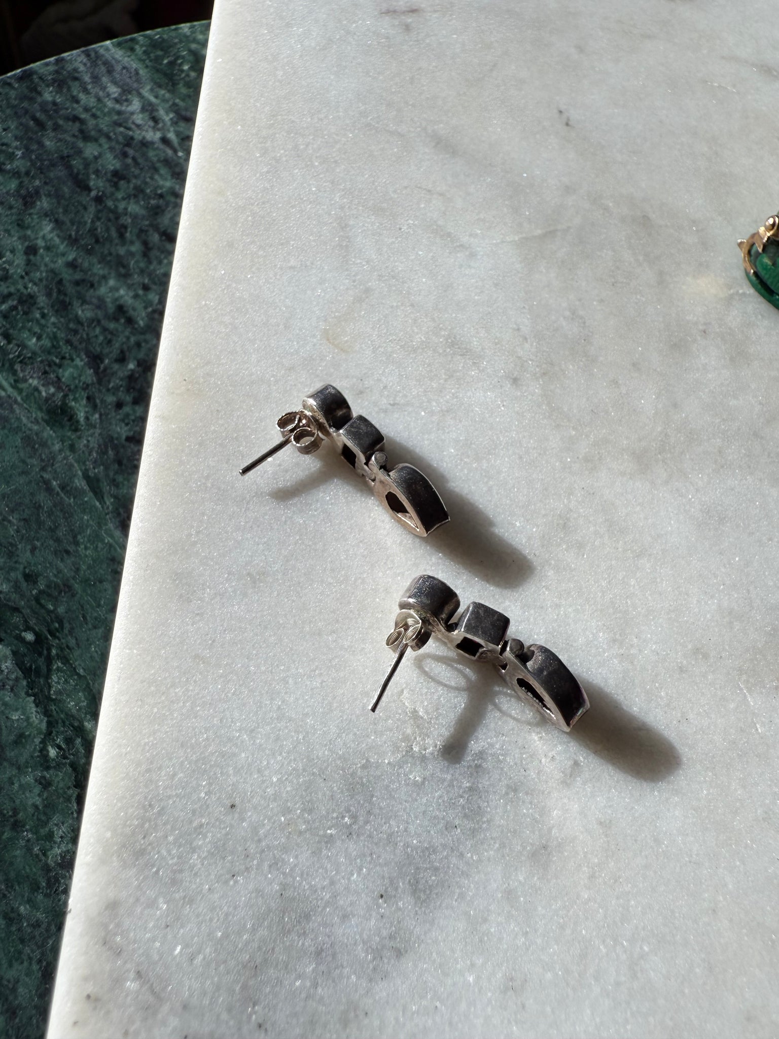 Push back earrings • .925 sterling silver with garnet stones • 4.2 grams • each earring measures .80” x .25”