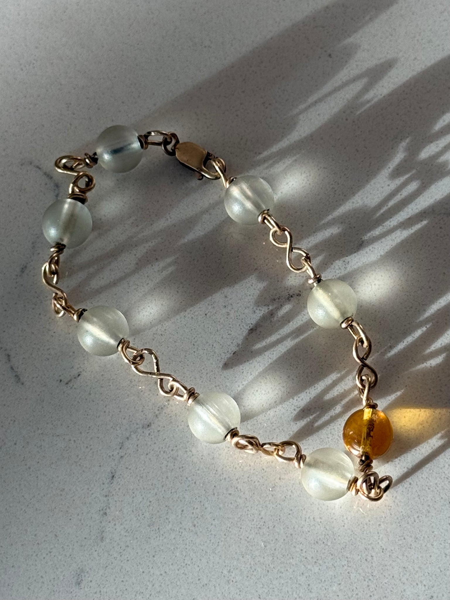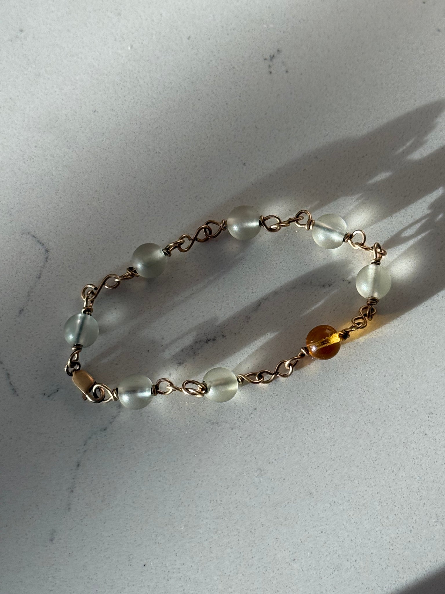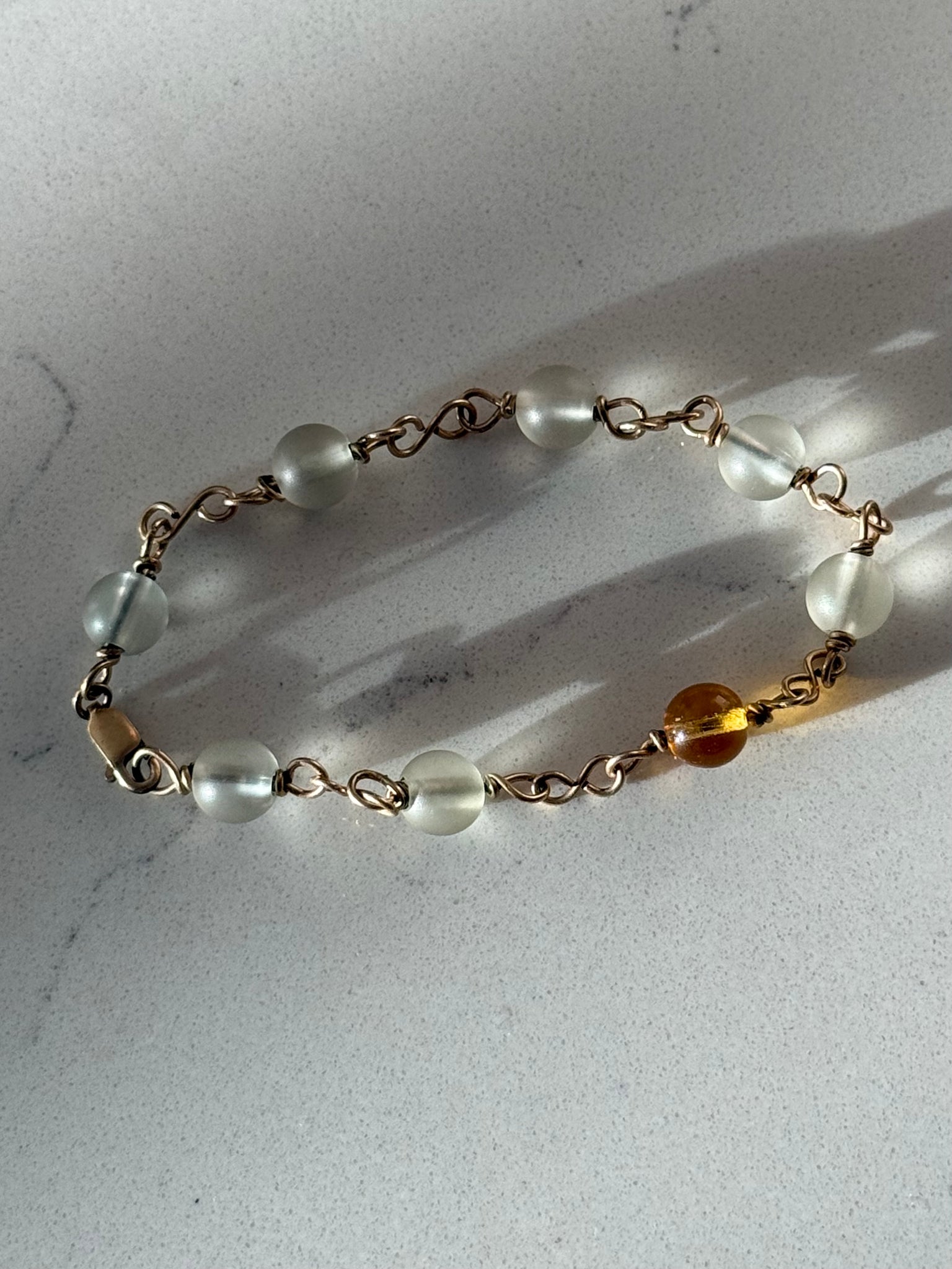 7.75” lying flat with measuring tape • 8 grams • 8mm width beads