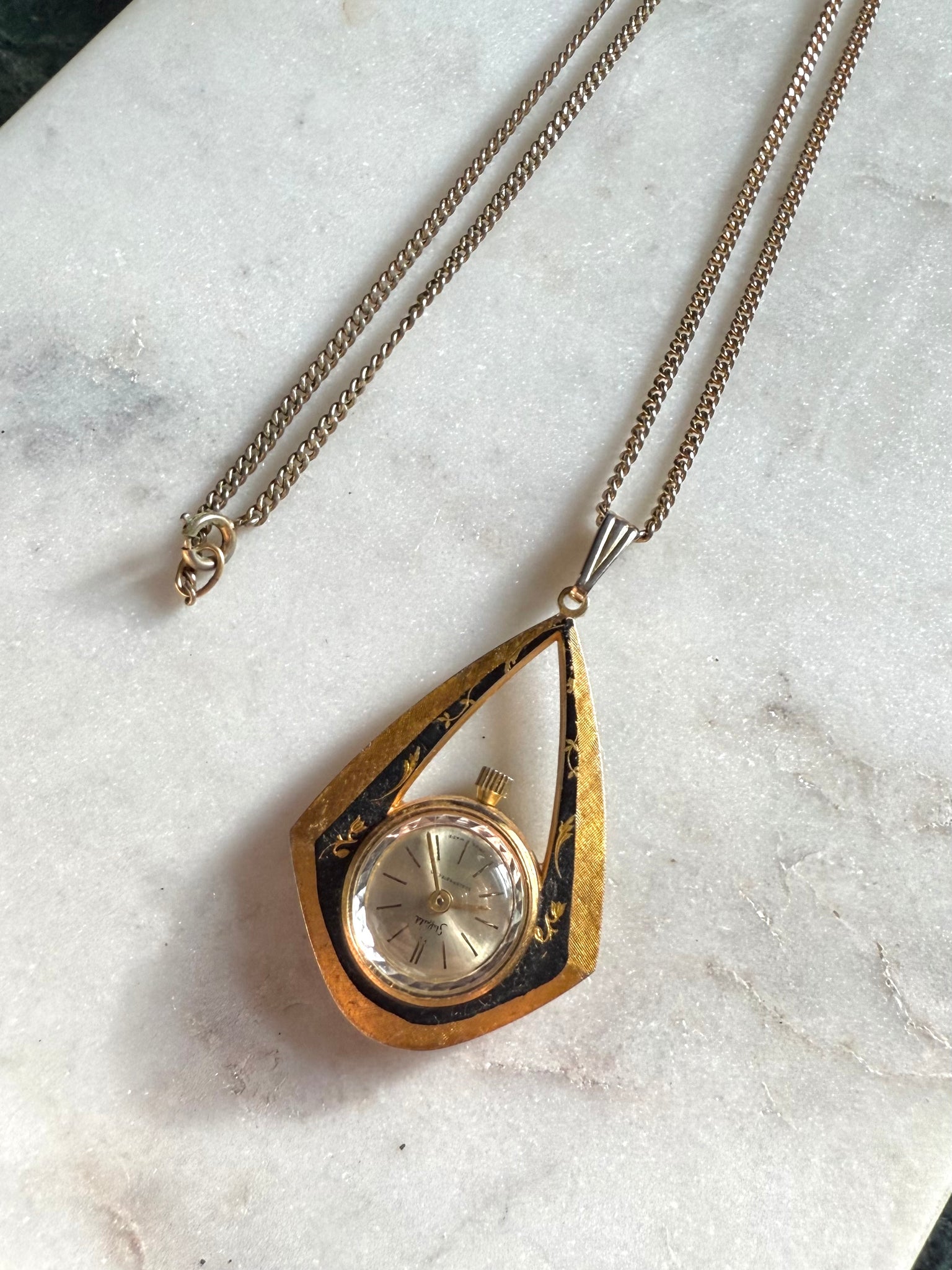*Watch is in NONWORKING condition* gold plated and true vintage. The chain is 25” length