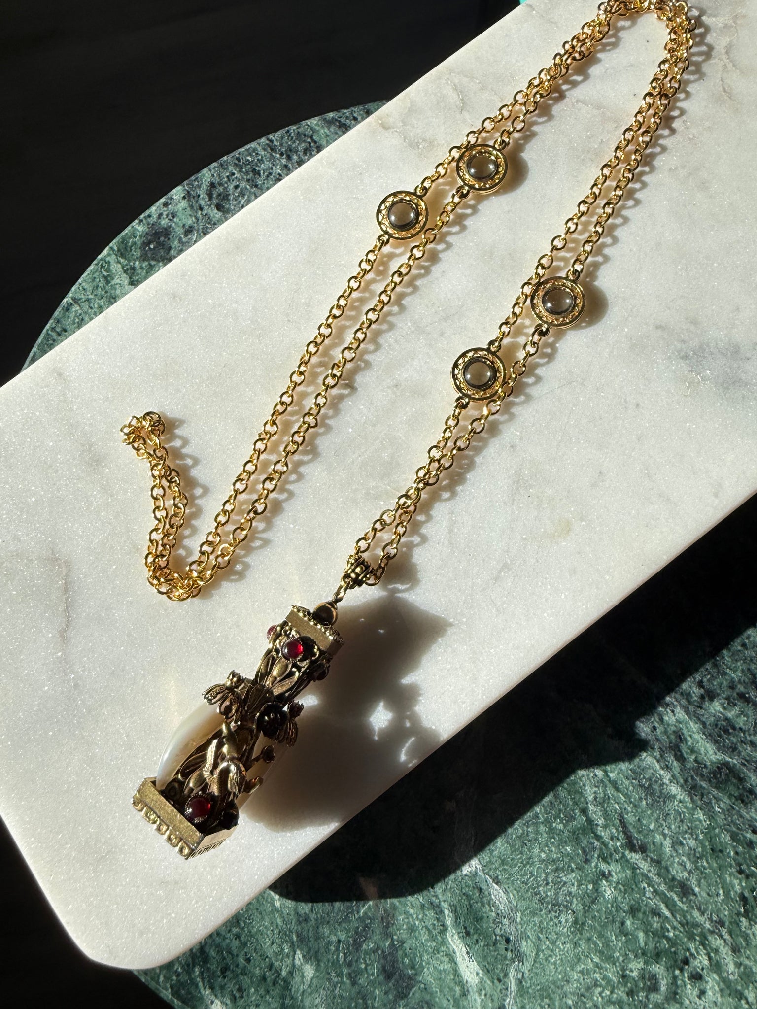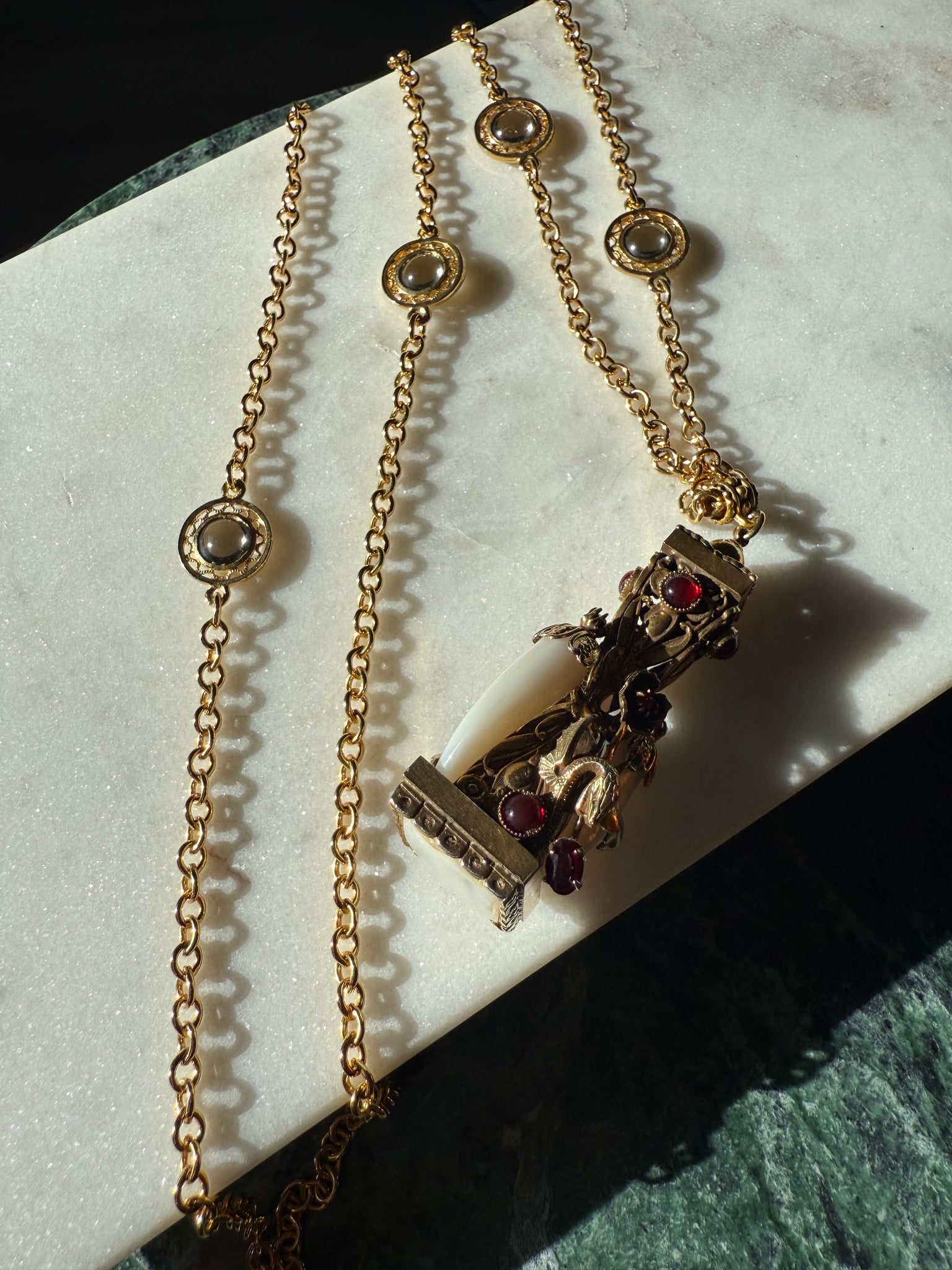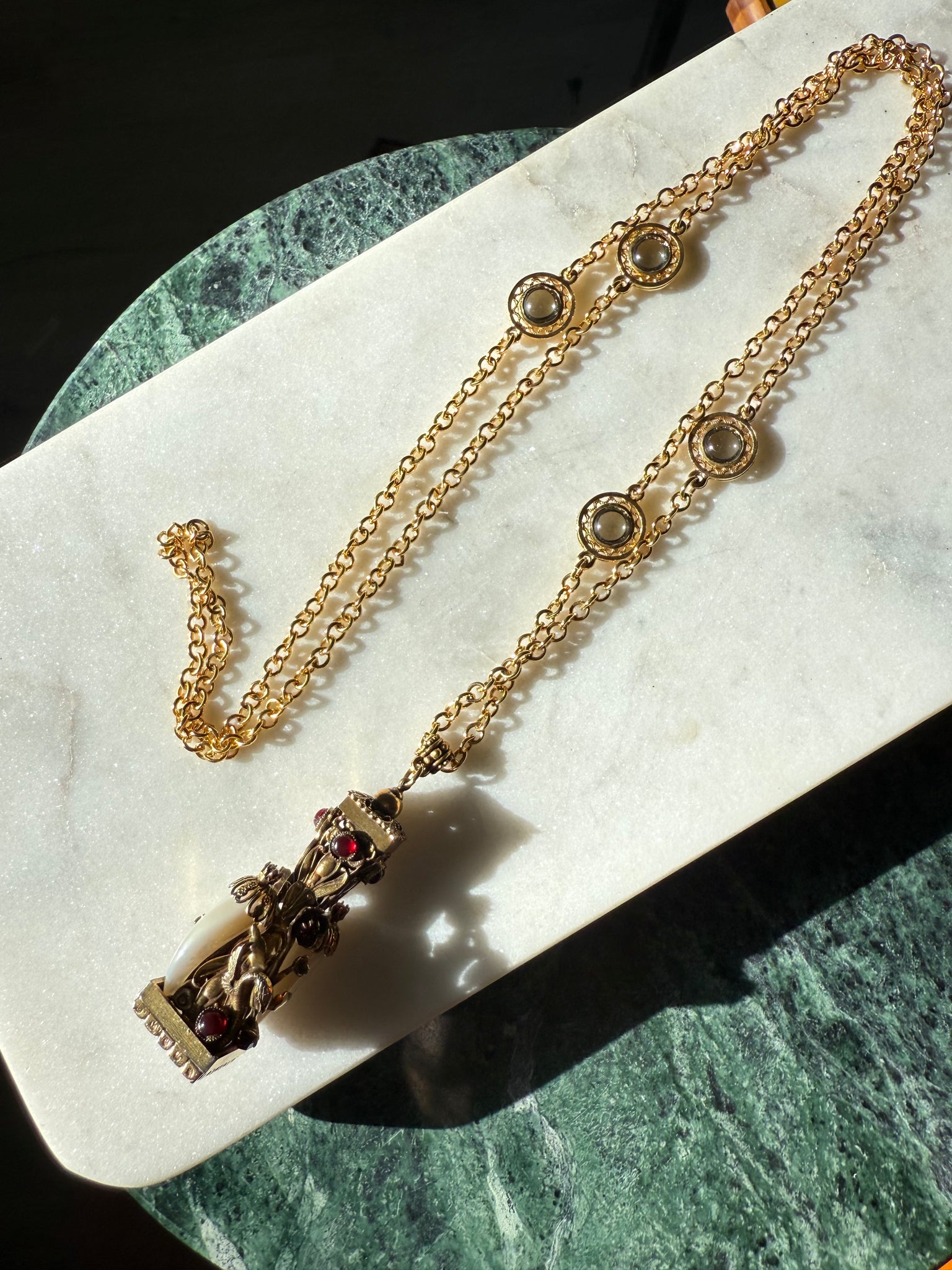 Vintage Gold Plated Snake Cabochon Fang Necklace