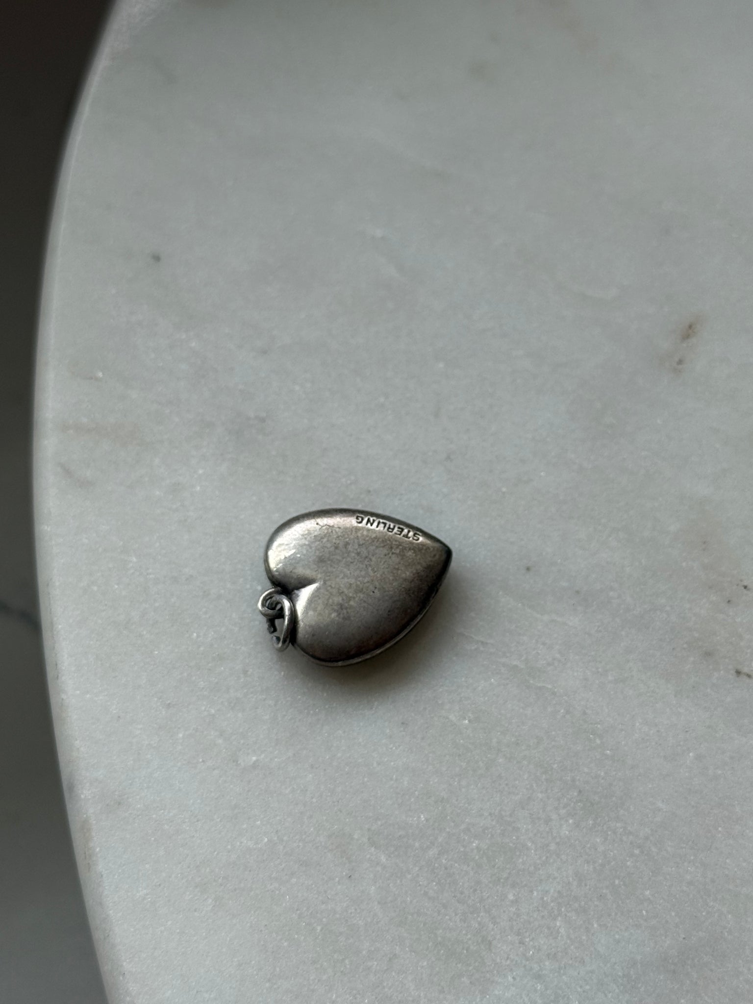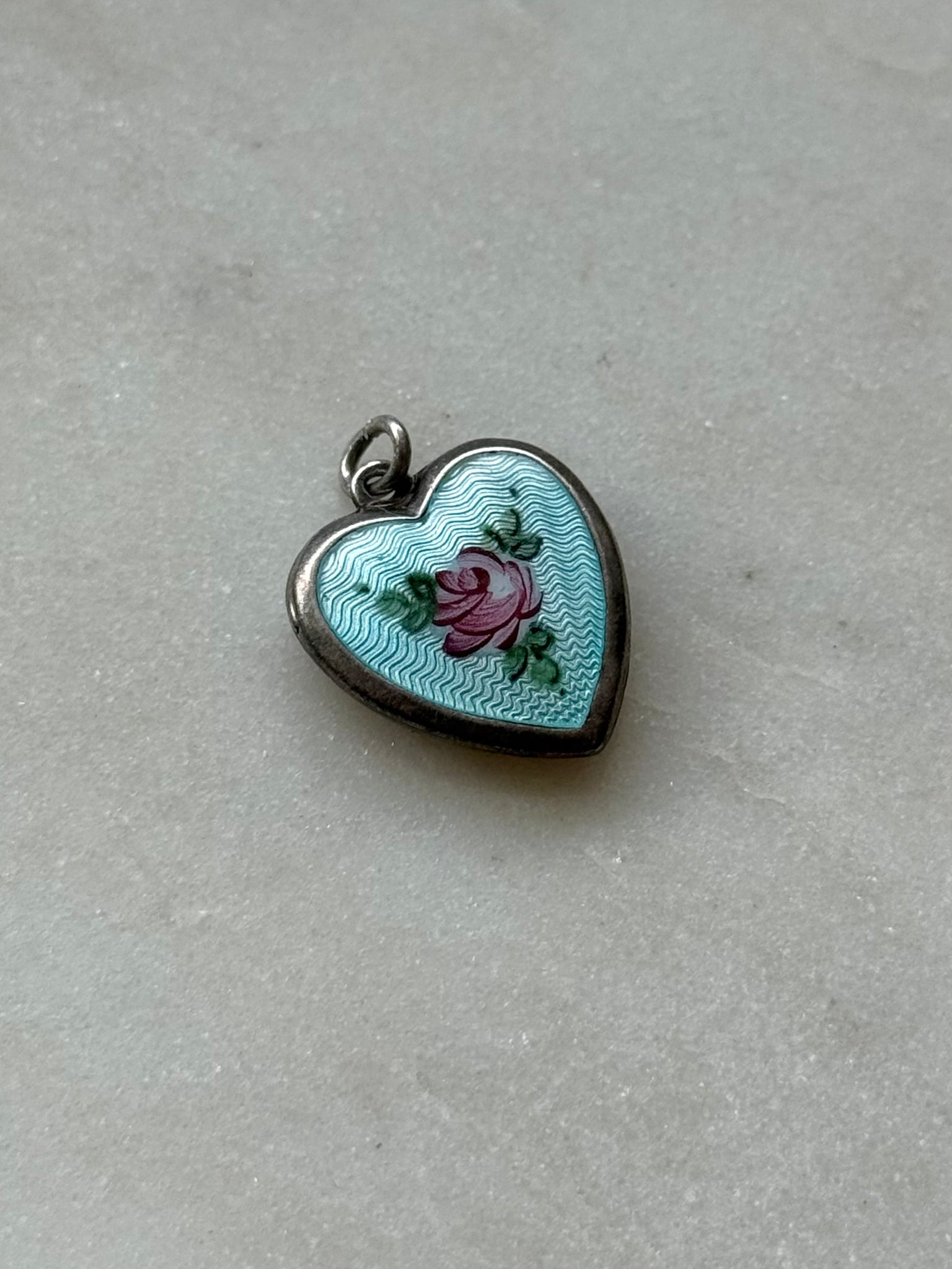 Vintage Guilloche Enamel Sterling Heart Charm
