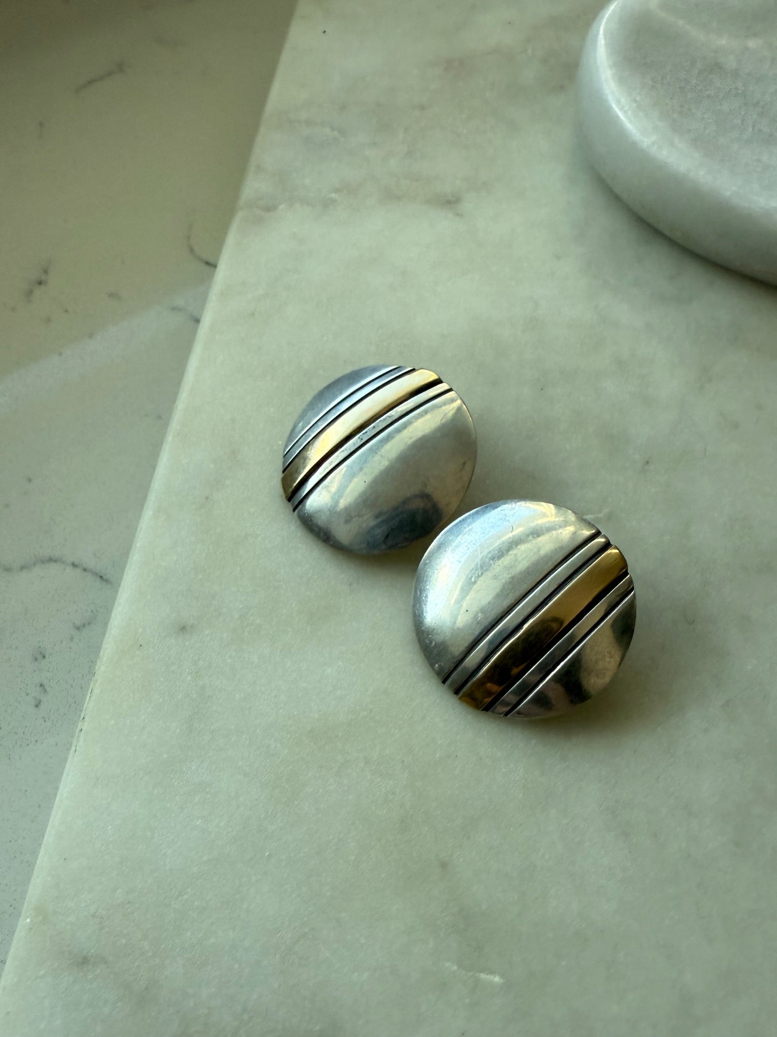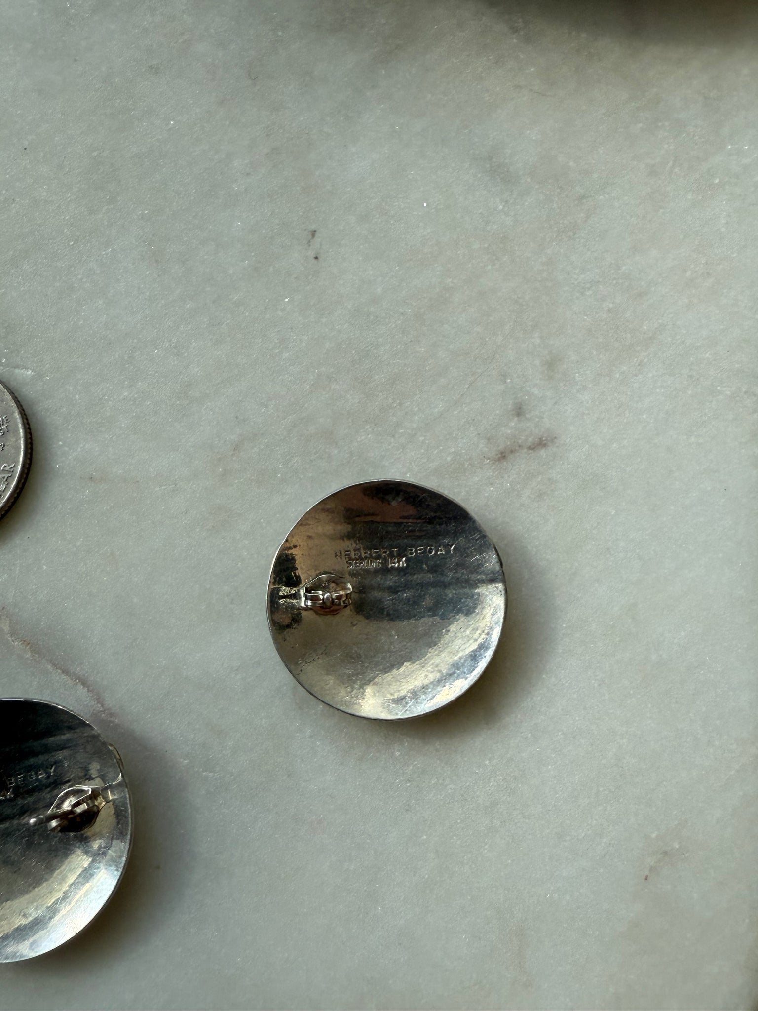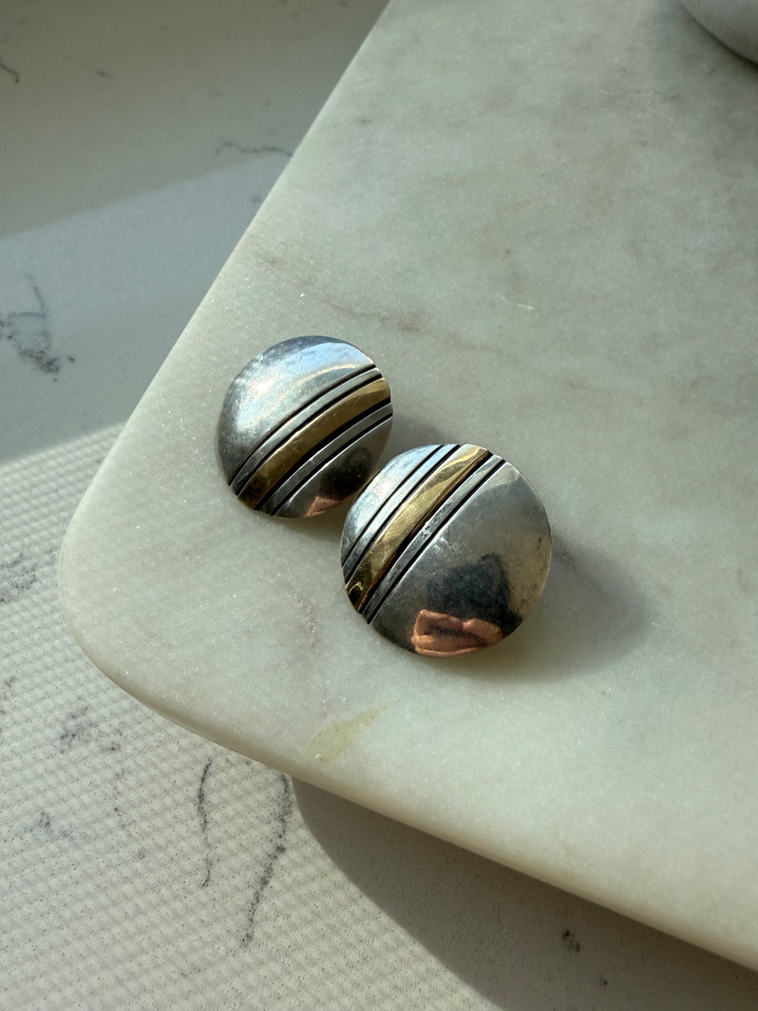 Vintage Herbert Begay Sterling & 14k Gold Disc Earrings