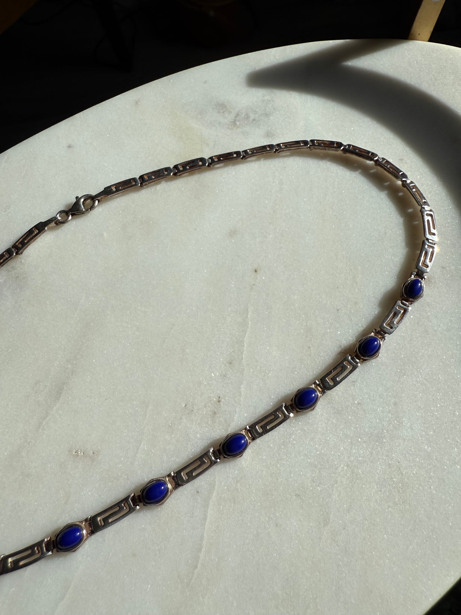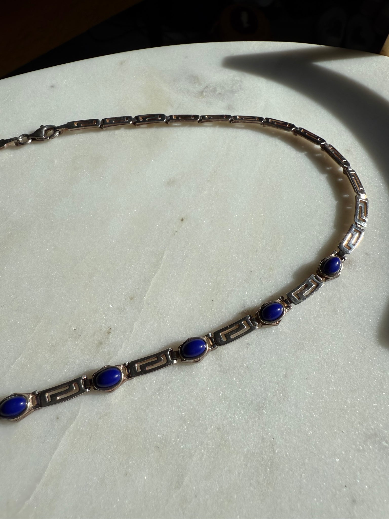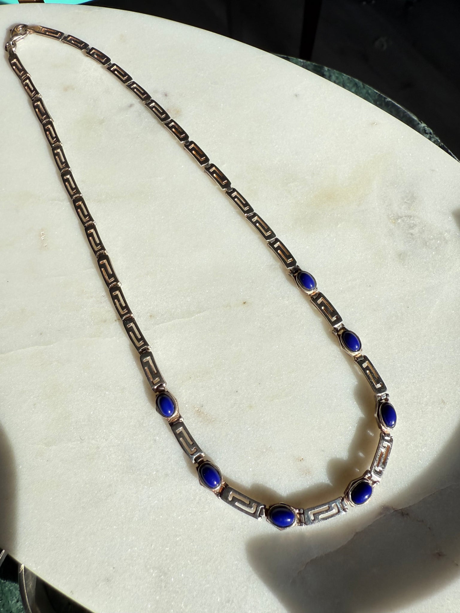 Vintage Lapis Greek Key Sterling Silver Necklace 17”