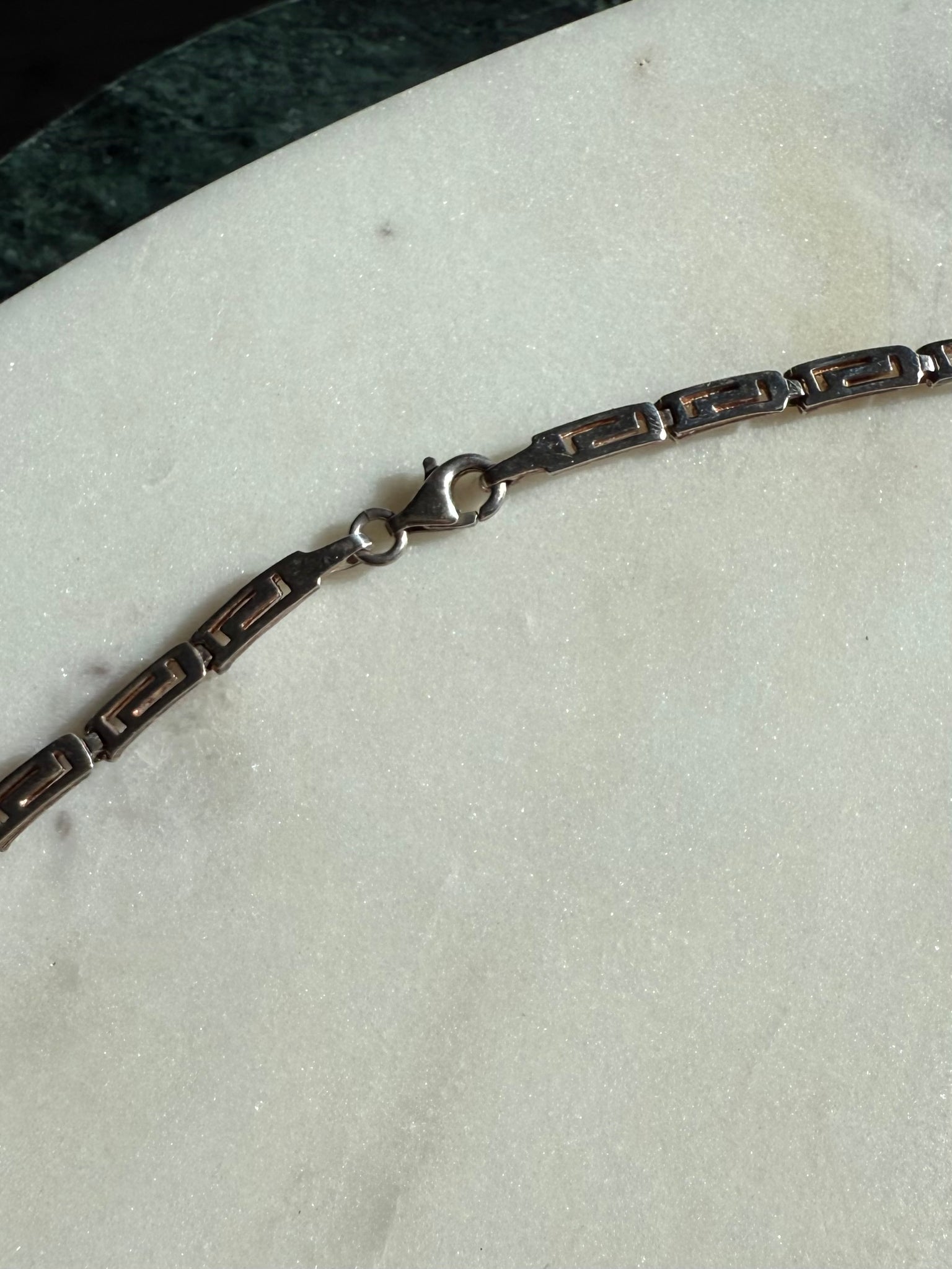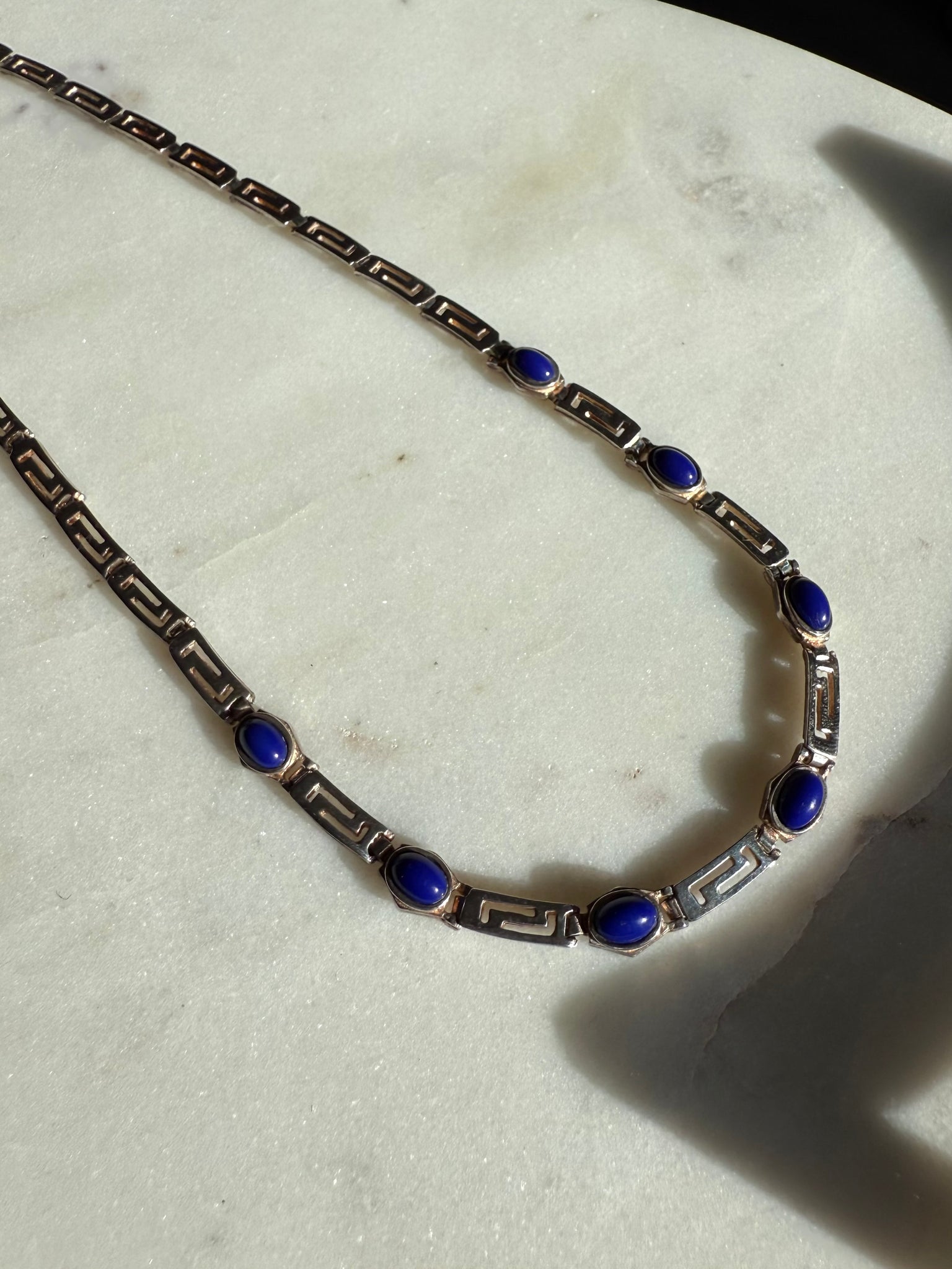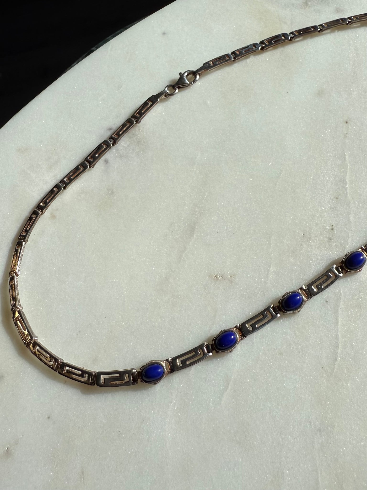 Vintage Lapis Greek Key Sterling Silver Necklace 17”