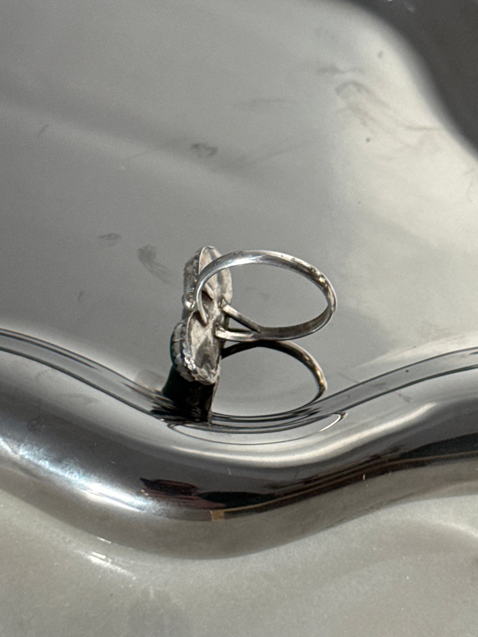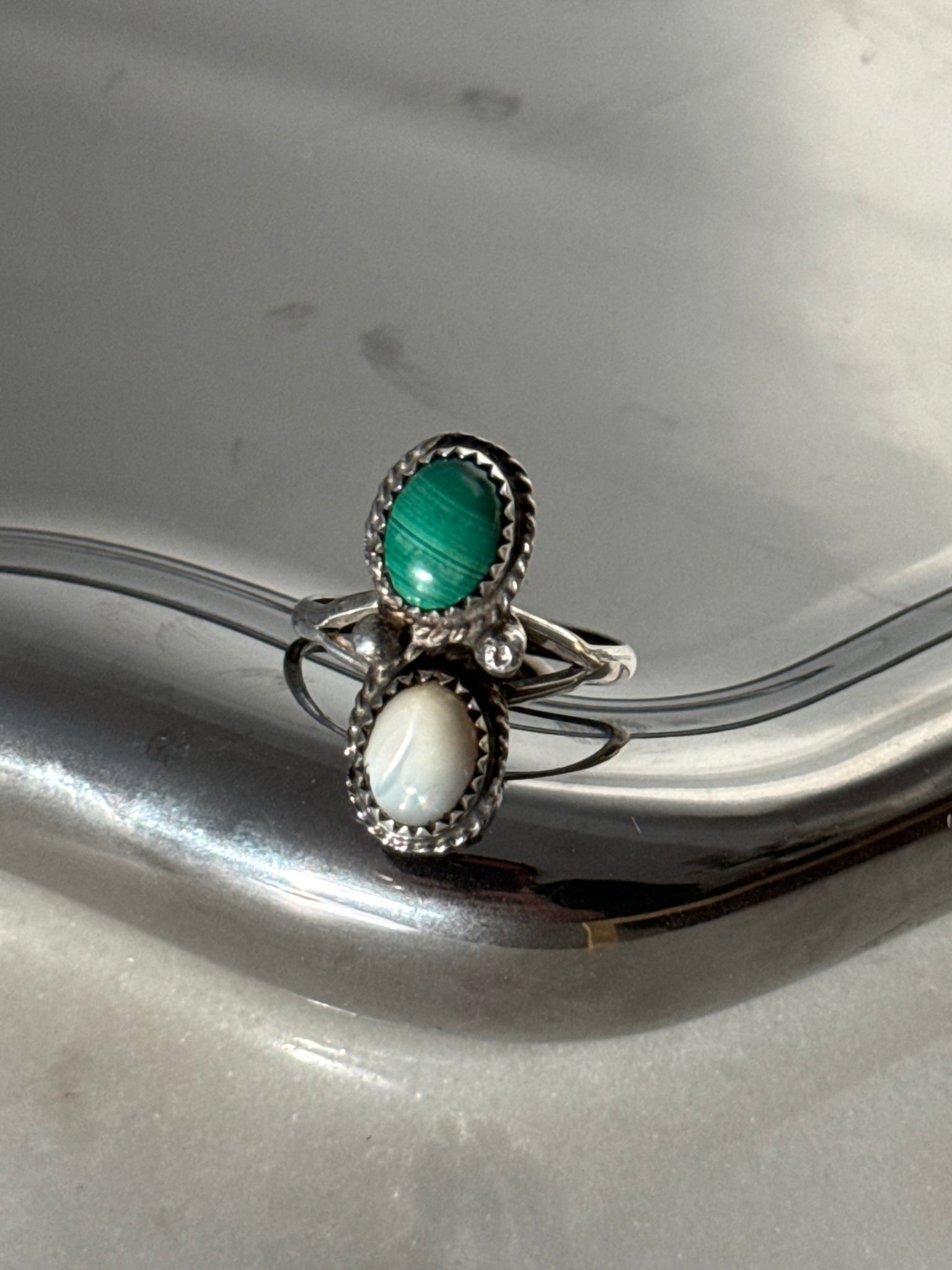 Vintage Malachite & Mother of Pearl Sterling Silver Ring Size 5.75