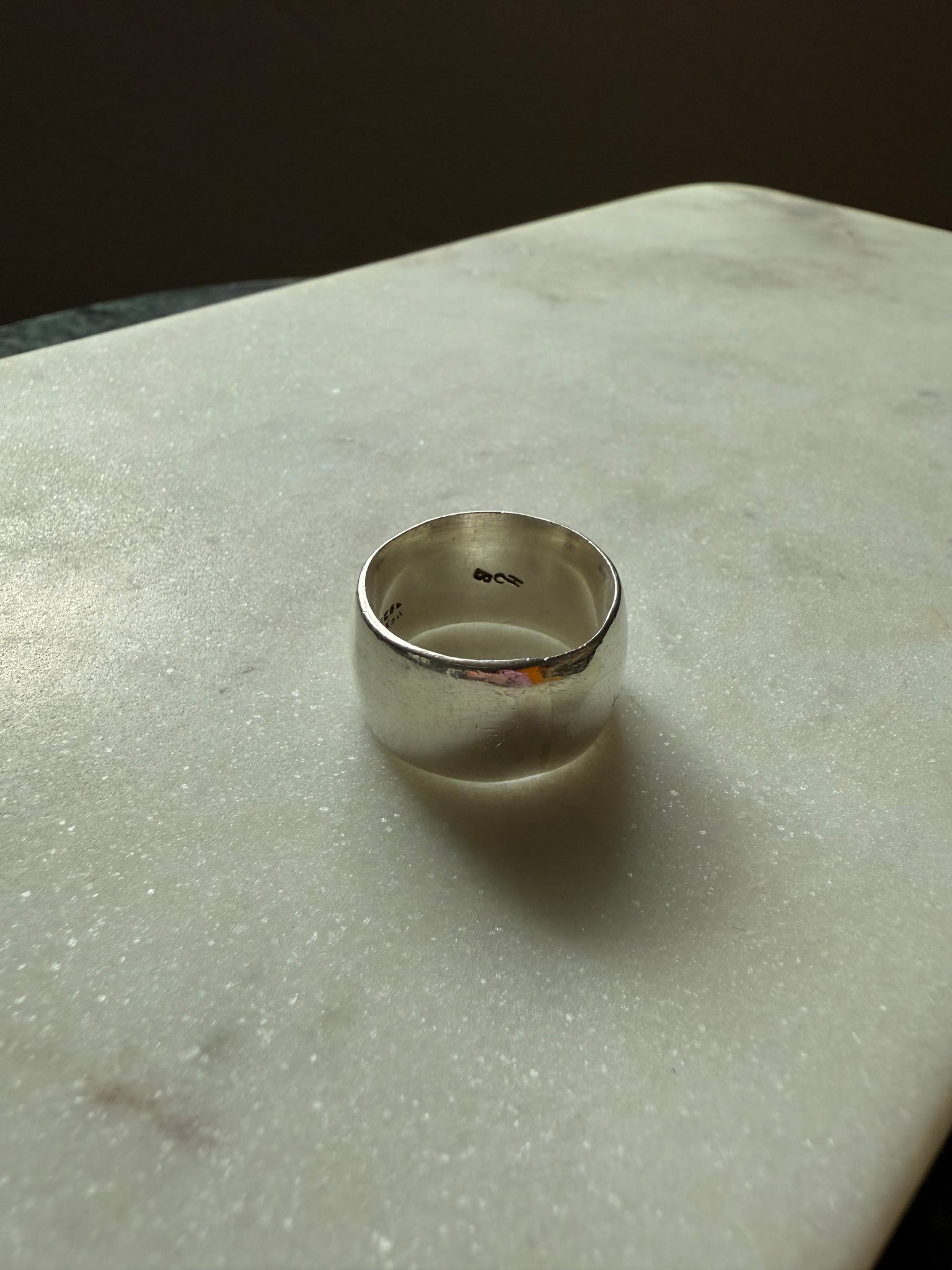 14.3 grams • ring size 10.5 on the mandrel but due to width it’s better for around size 10 • solid .925 Mexico Sterling Silver