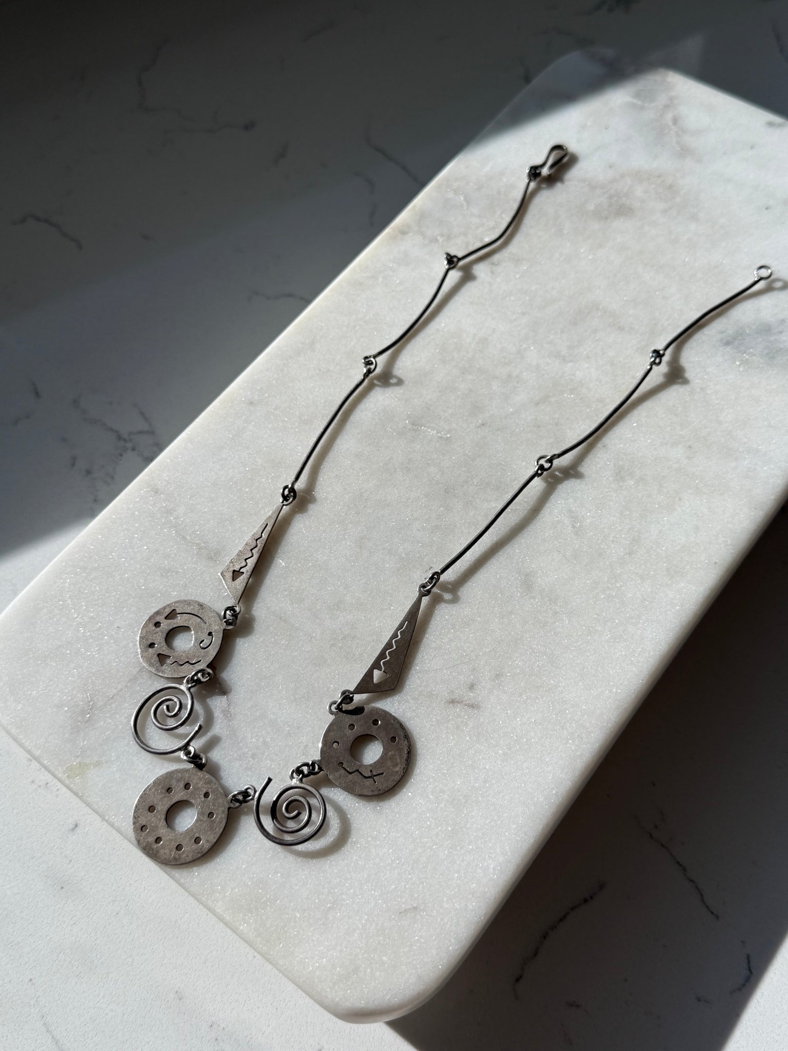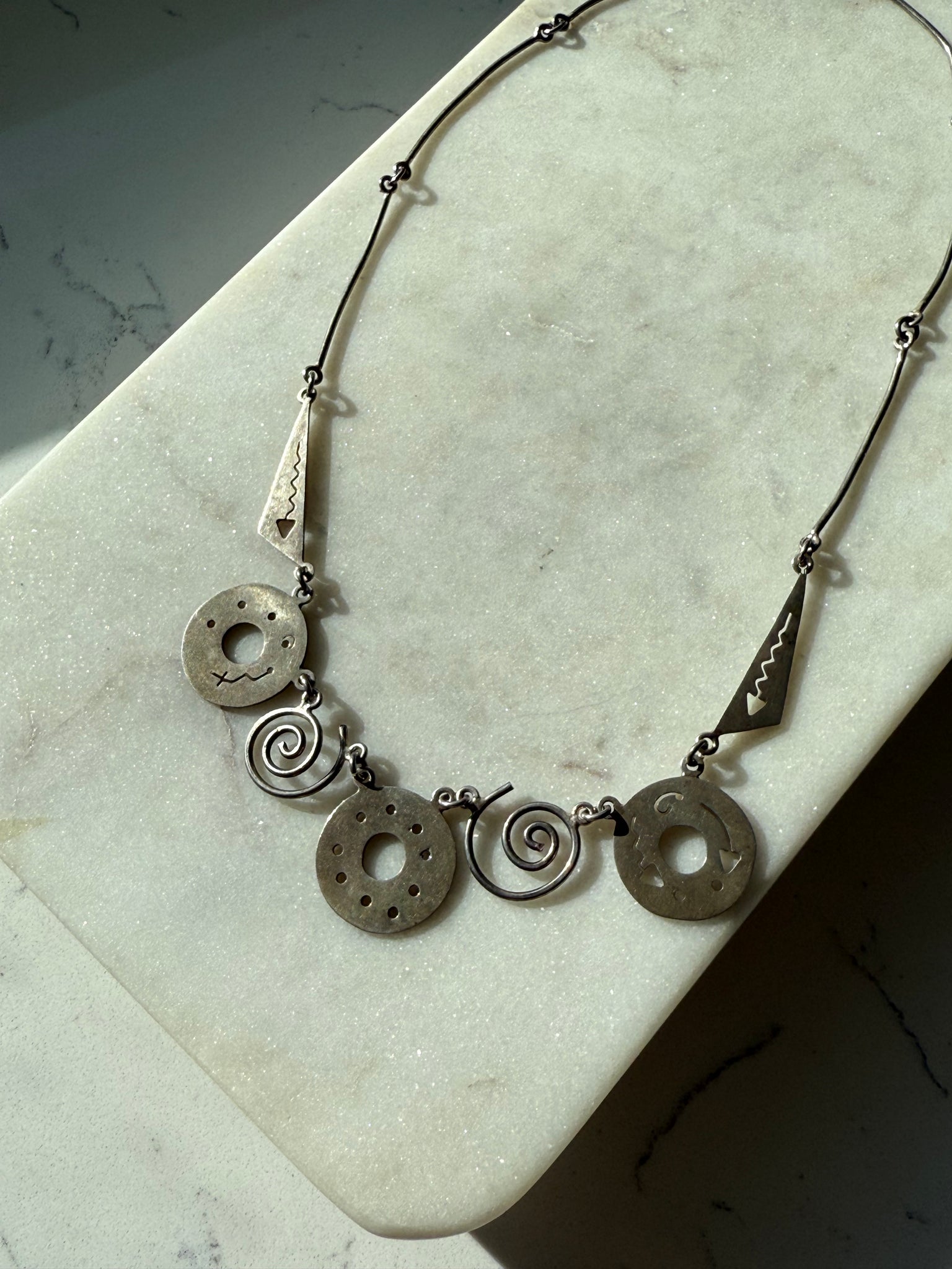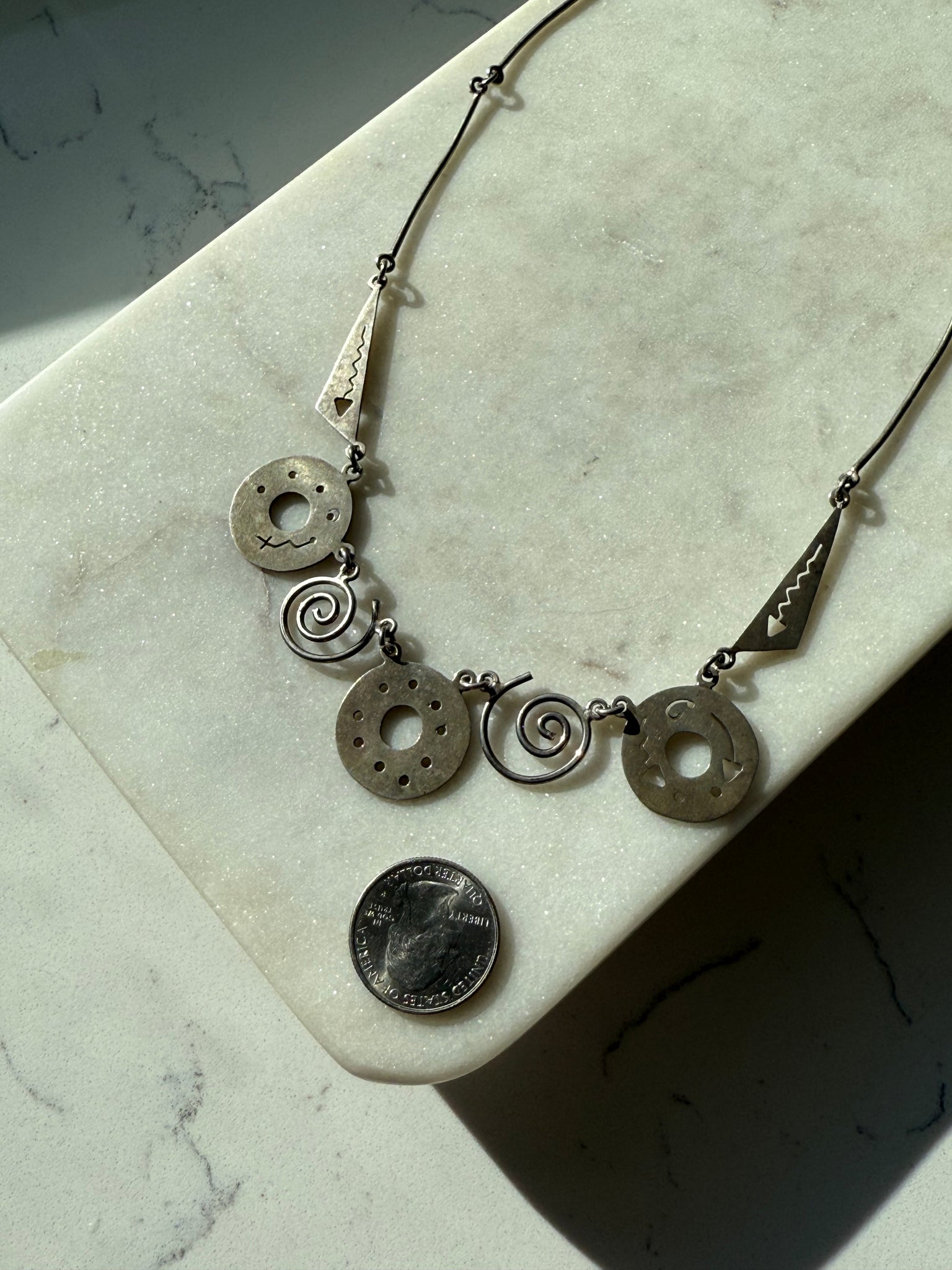 Vintage Modernist Spiral Sterling Silver Necklace 19”