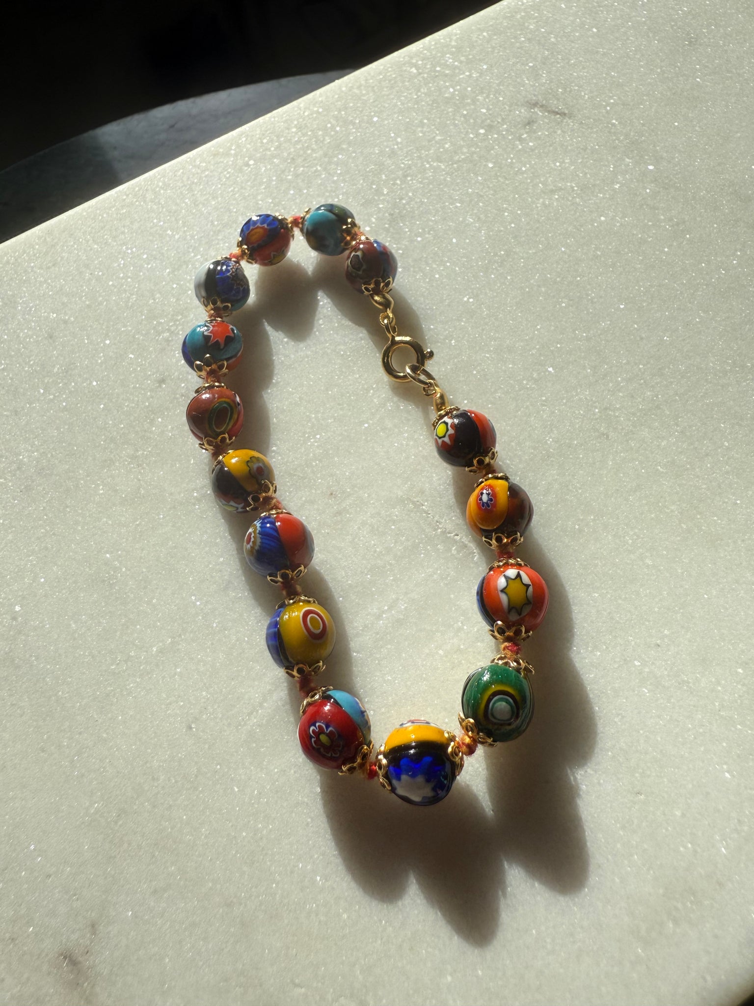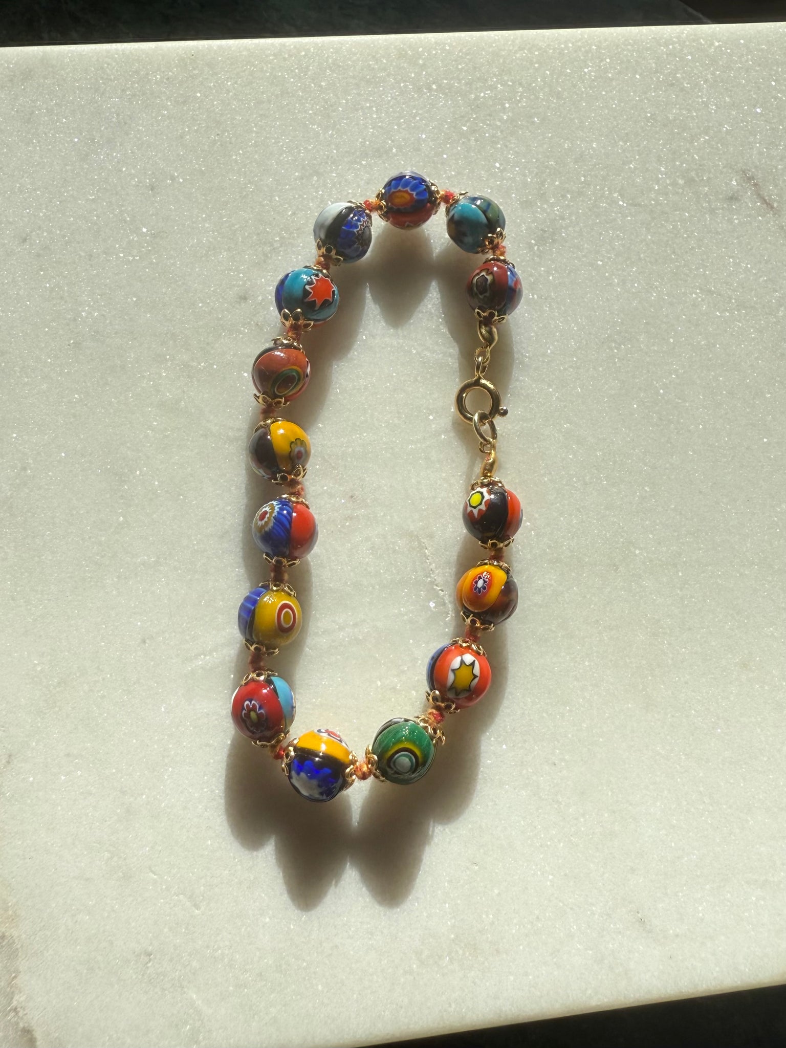 Vintage Murano Millefiori Bead Gold Plated Bracelet 7.75”