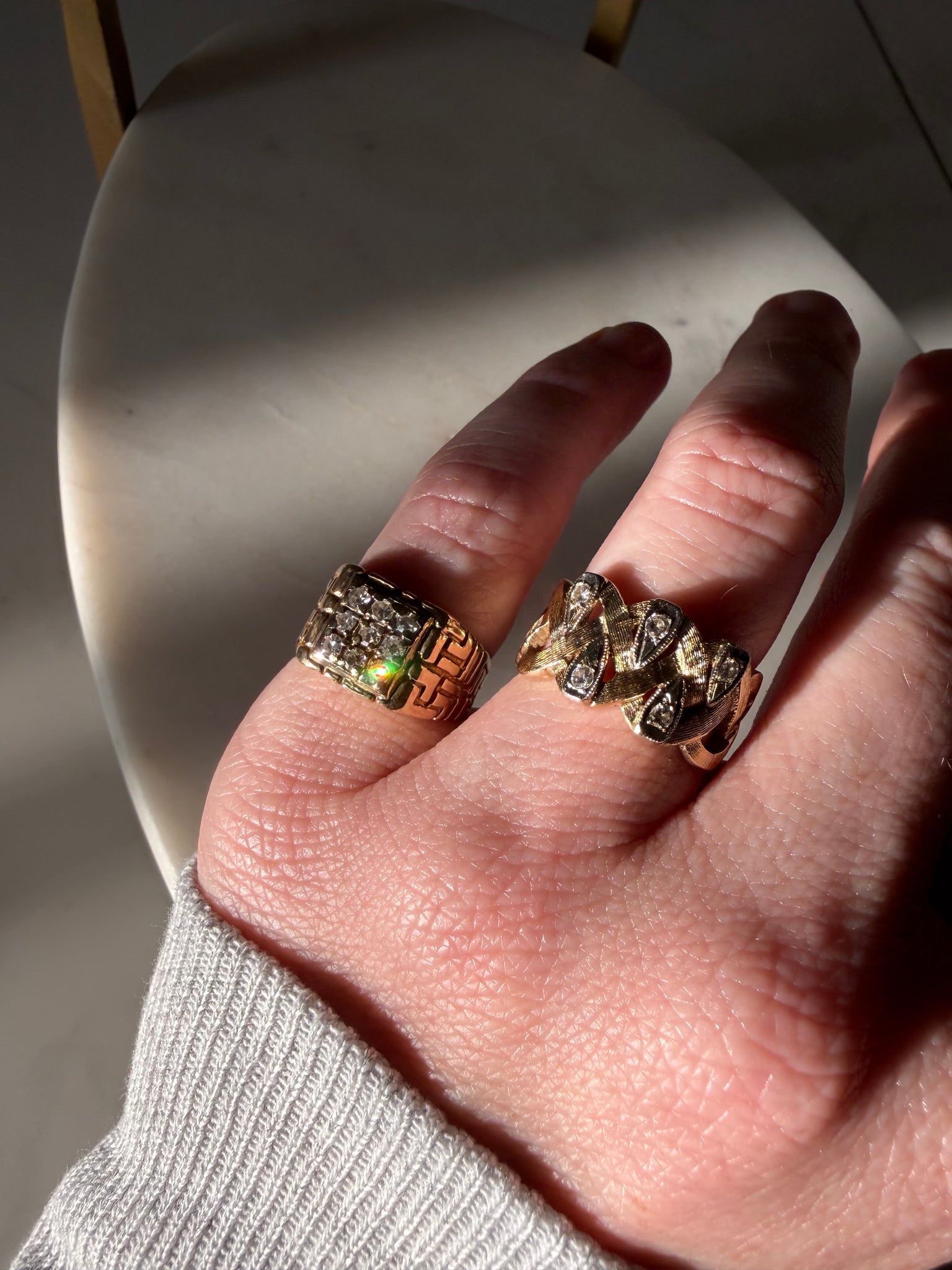 Vintage Natural Diamond Square 14k Gold Ring Size 4.75