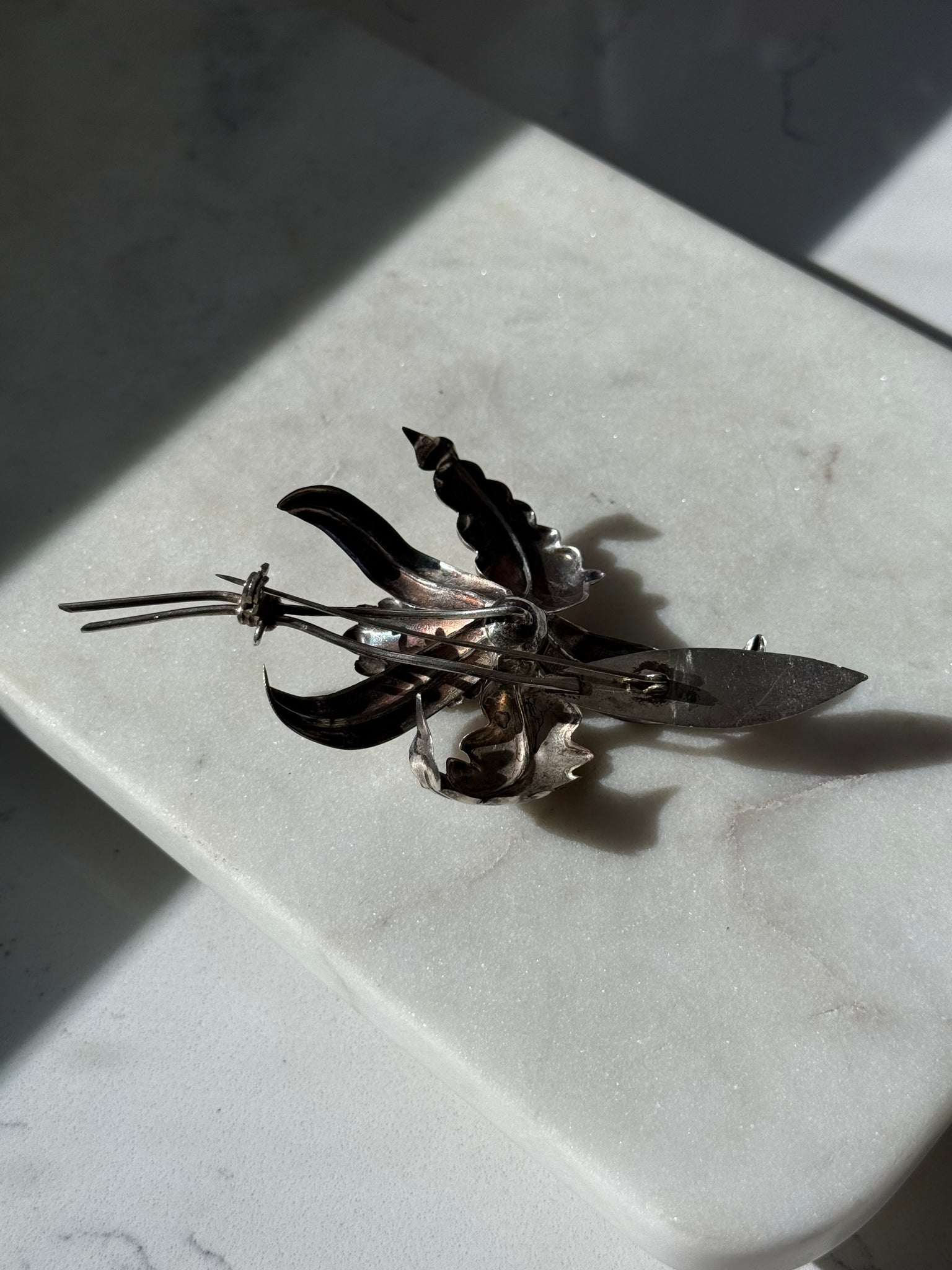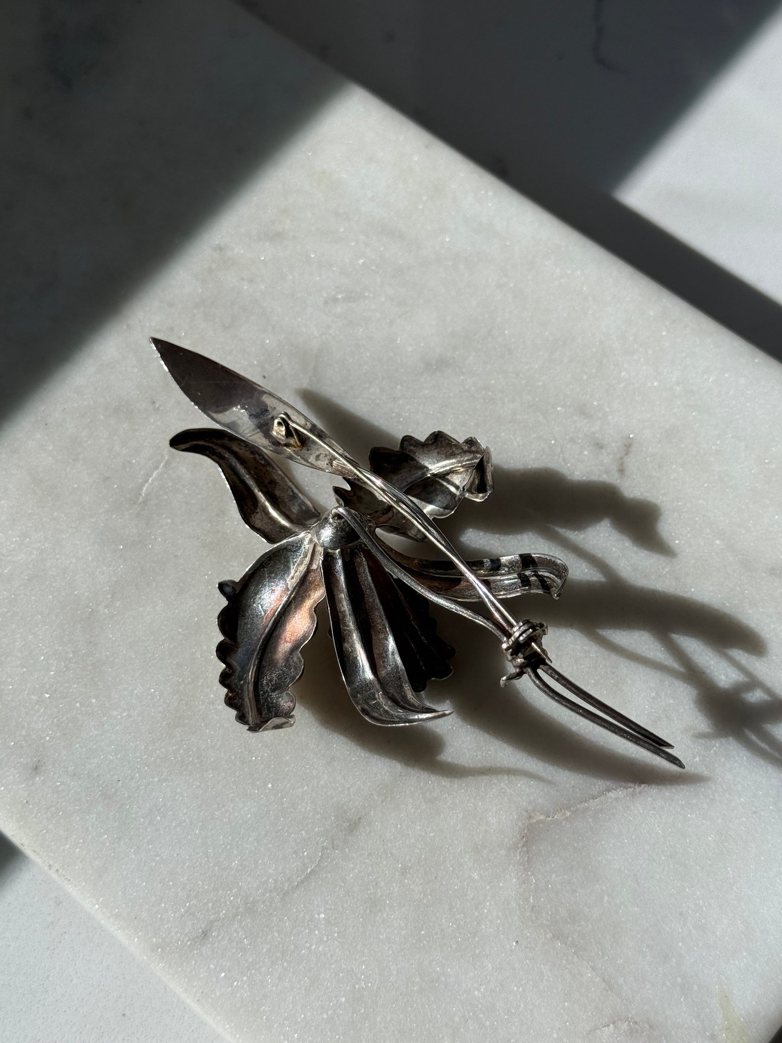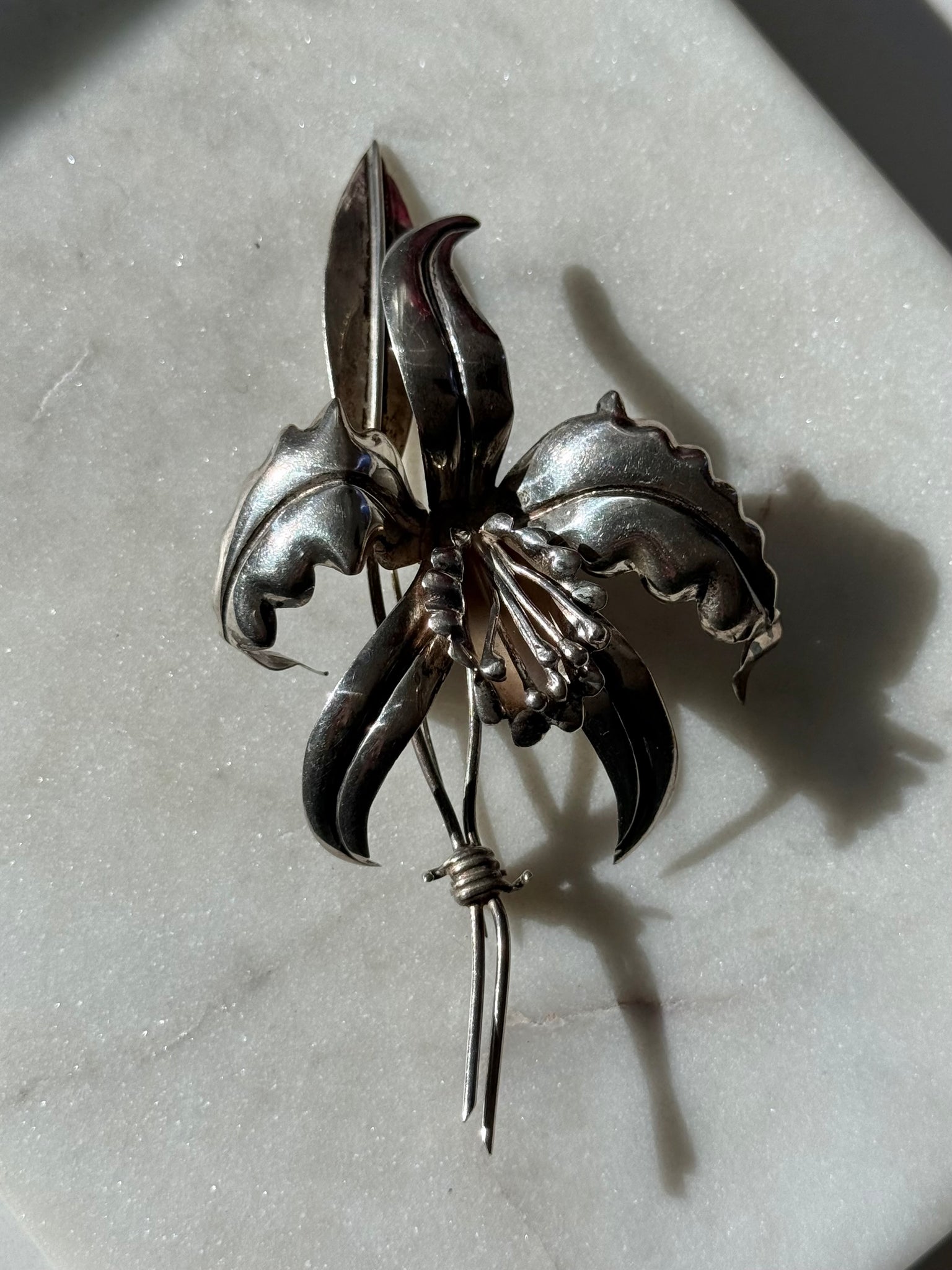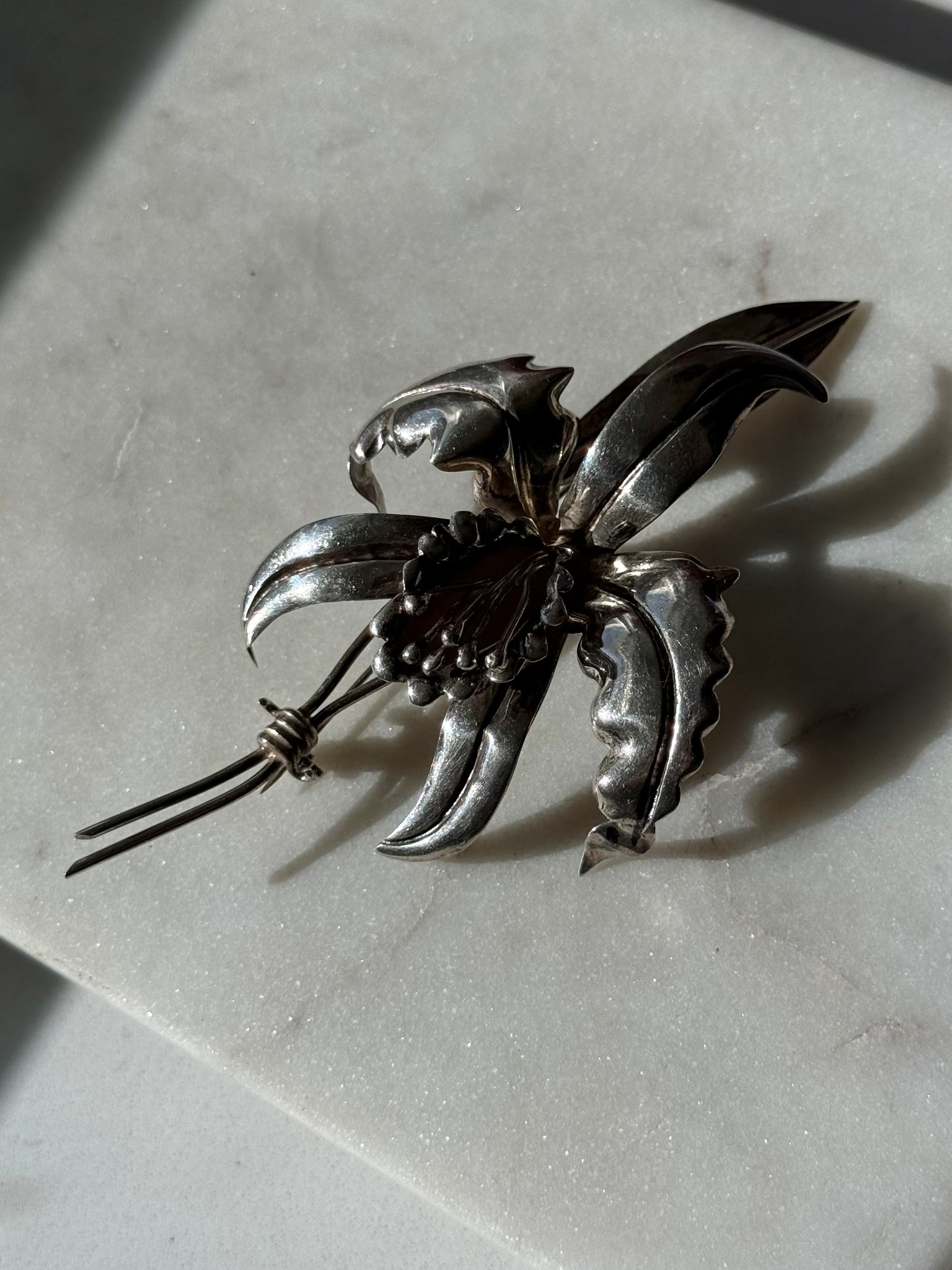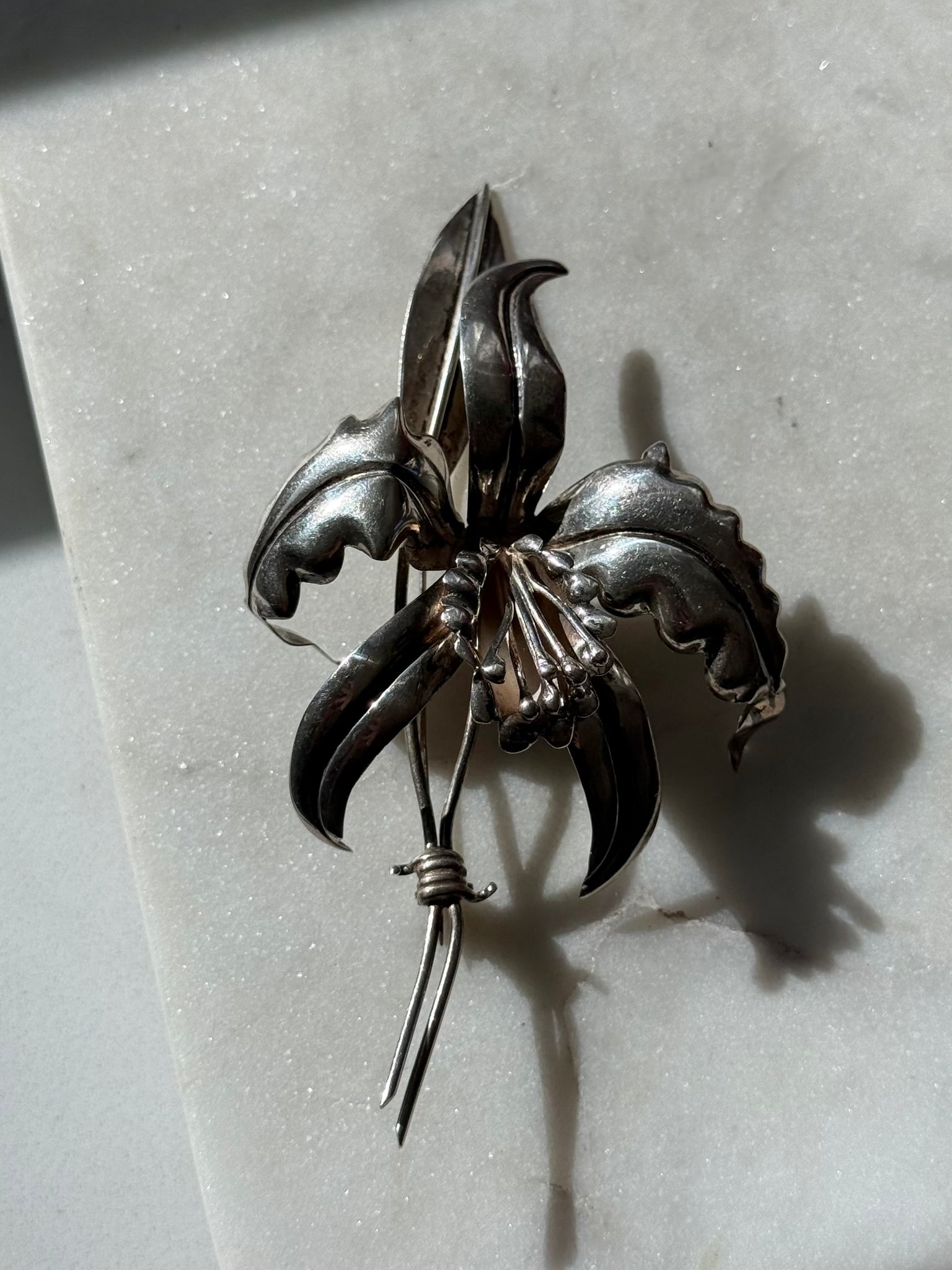 Mexican Vintage Orchid Flower Sterling Silver Brooch
