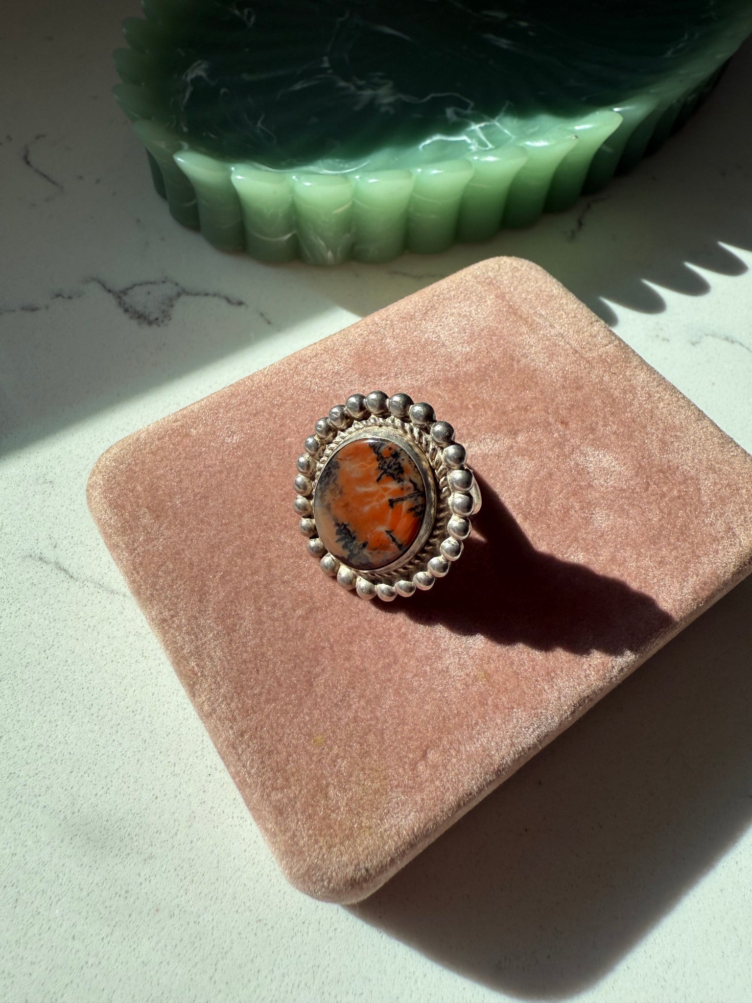 Vintage Petrified Wood Sterling Silver Ring Size 7