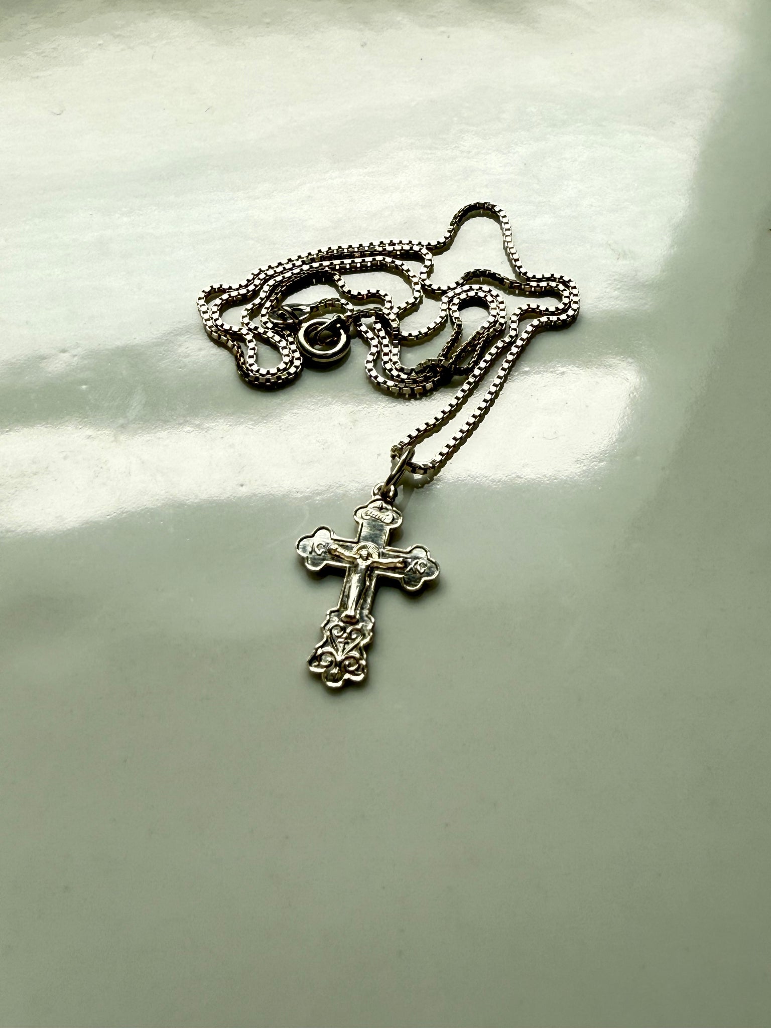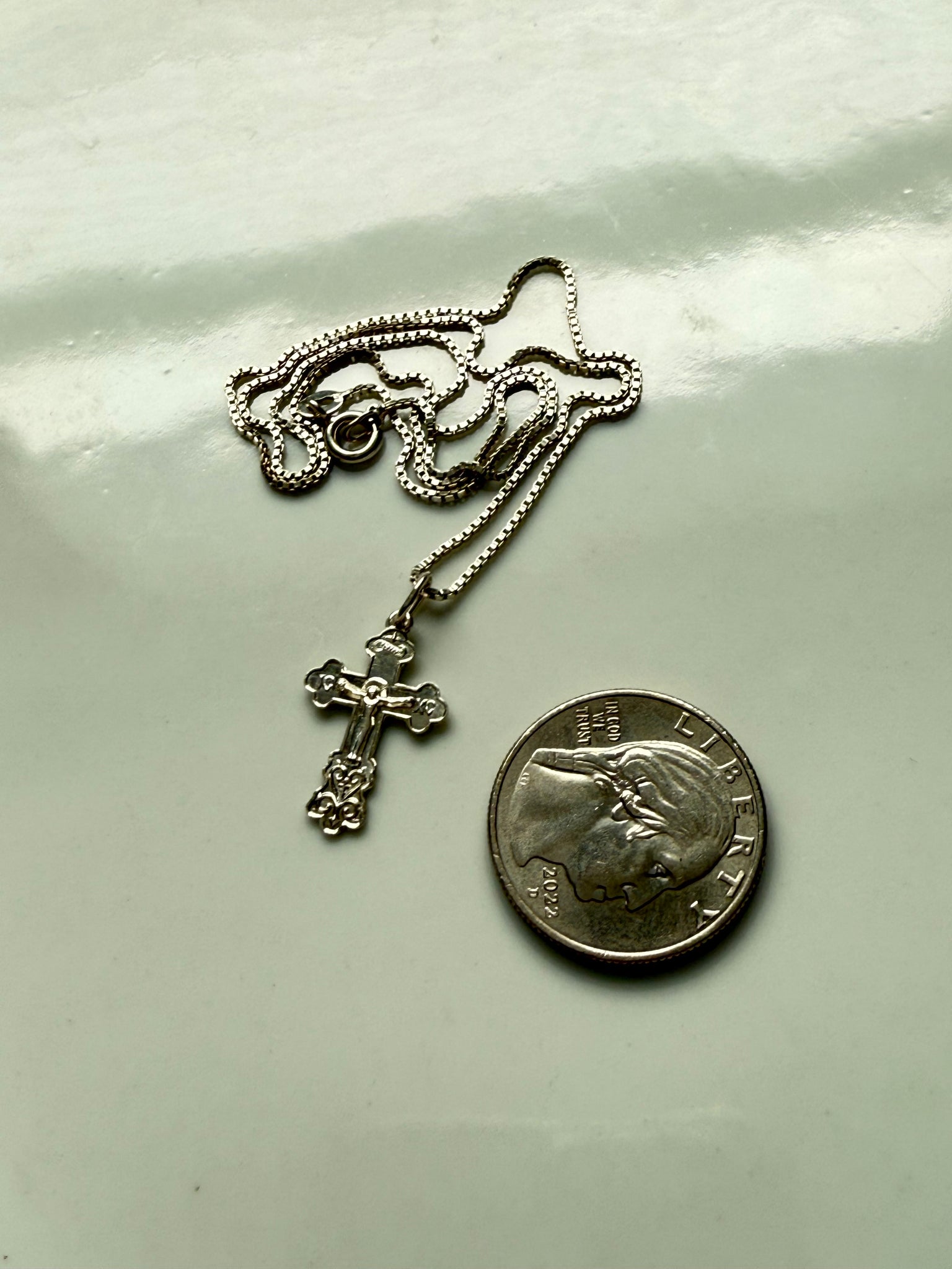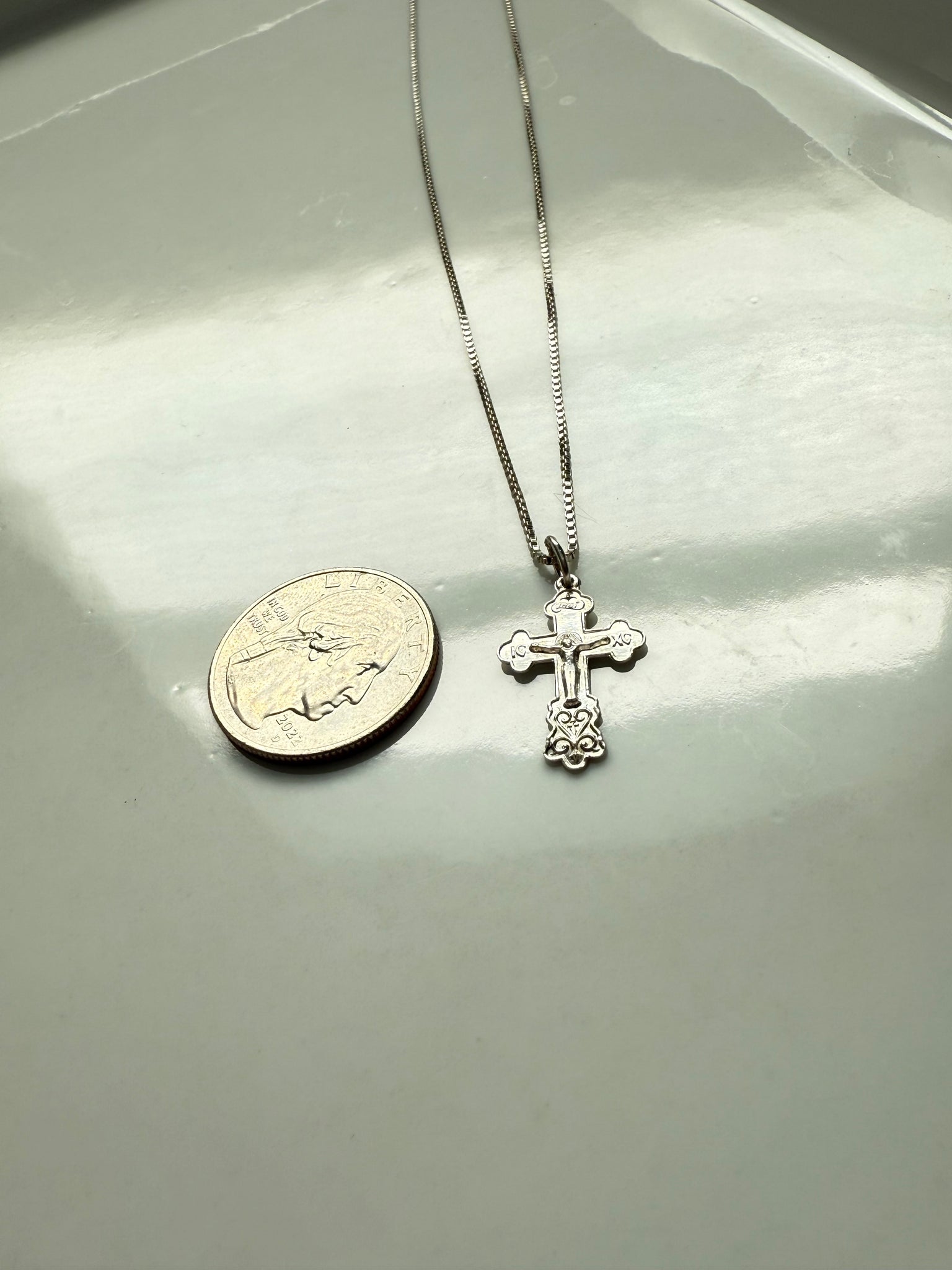 3.3 grams • .925 Sterling silver • 18” length box chain • 22mm x 14mm cross pendant