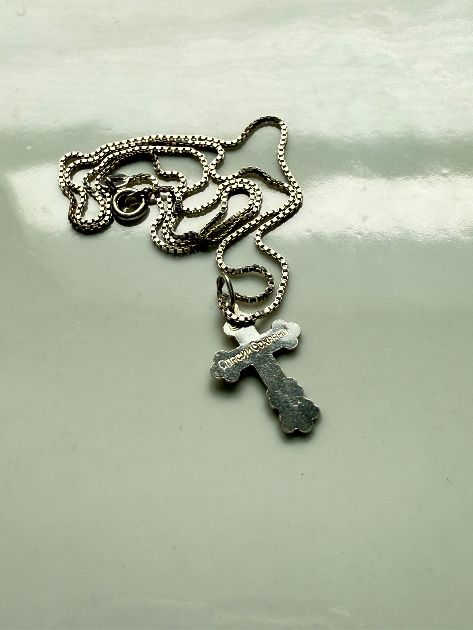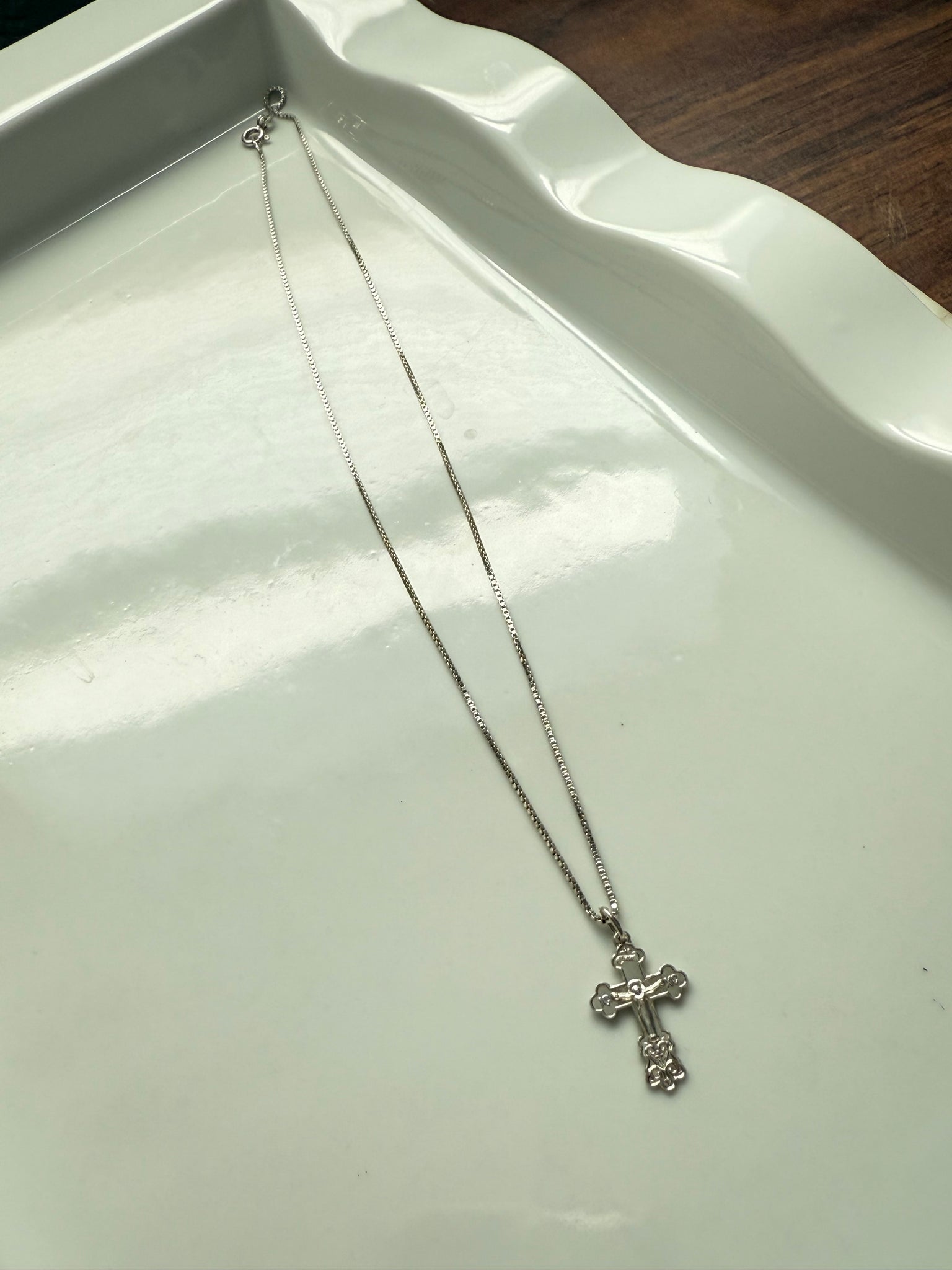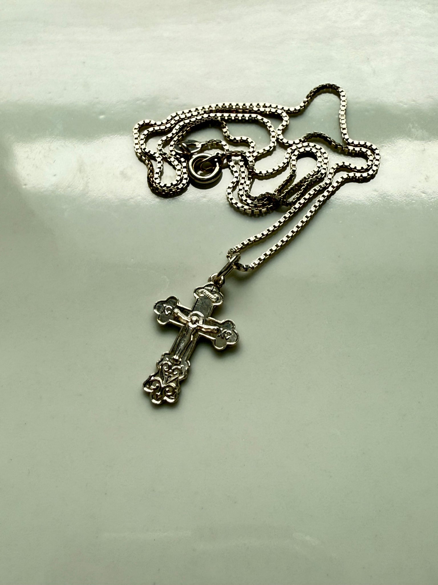 3.3 grams • .925 Sterling silver • 18” length box chain • 22mm x 14mm cross pendant