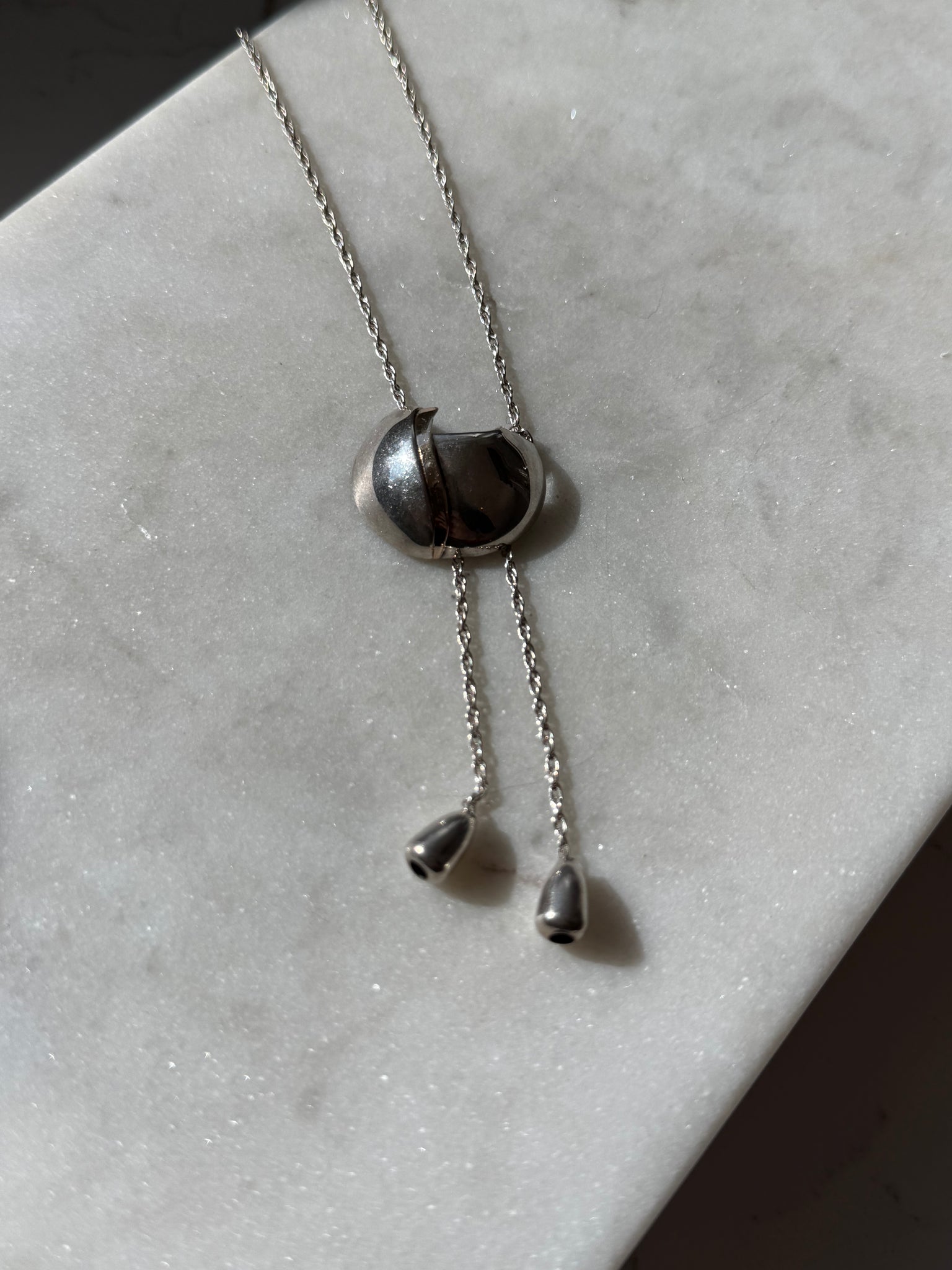 .925 Sterling with some goldtone on the front part, can adjust to multiple lengths up to 22” • 7.9 grams