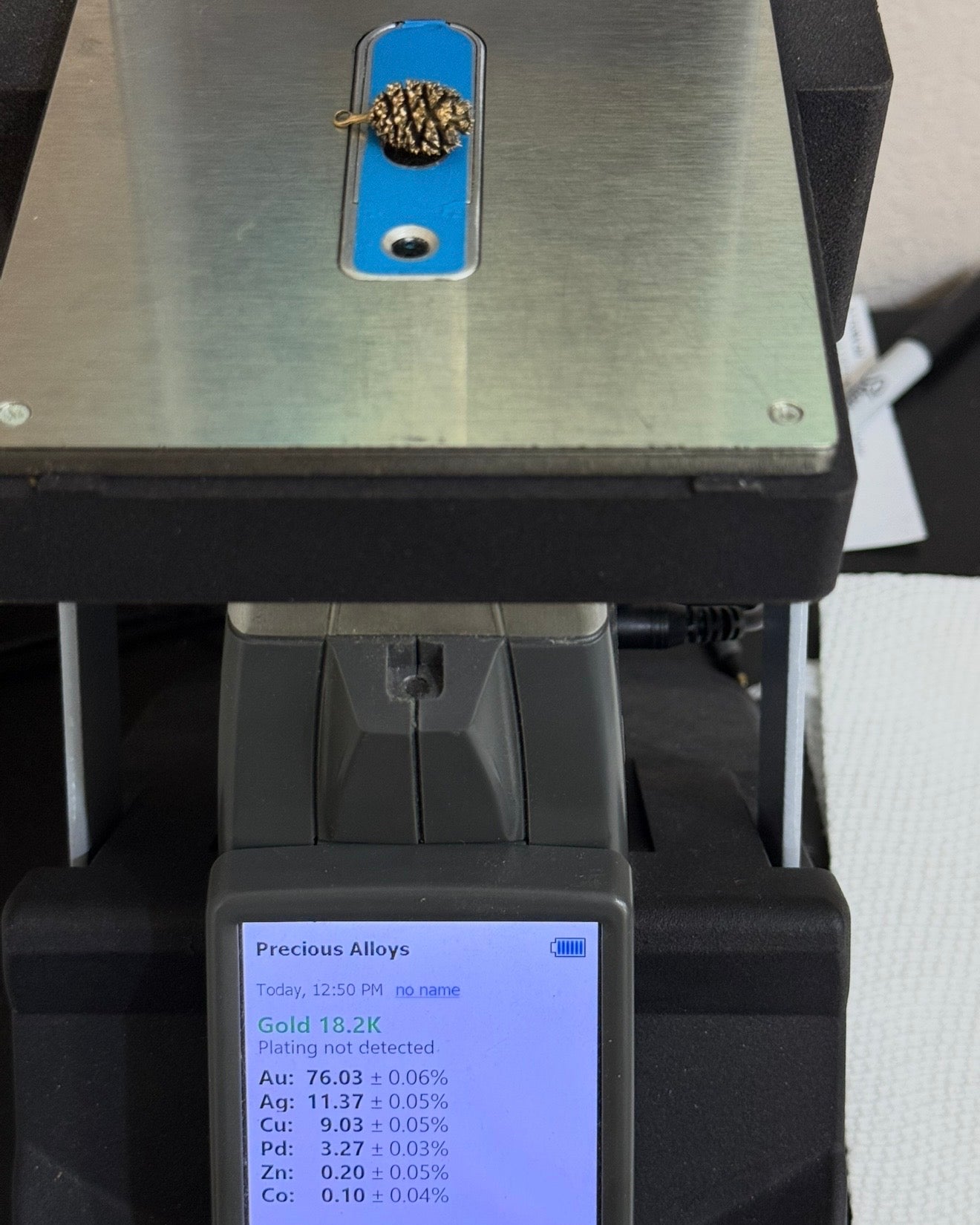 Solid 18k gold, check photos for the machine testing • 4.1 grams • 1mm bale • .58” x .35”
