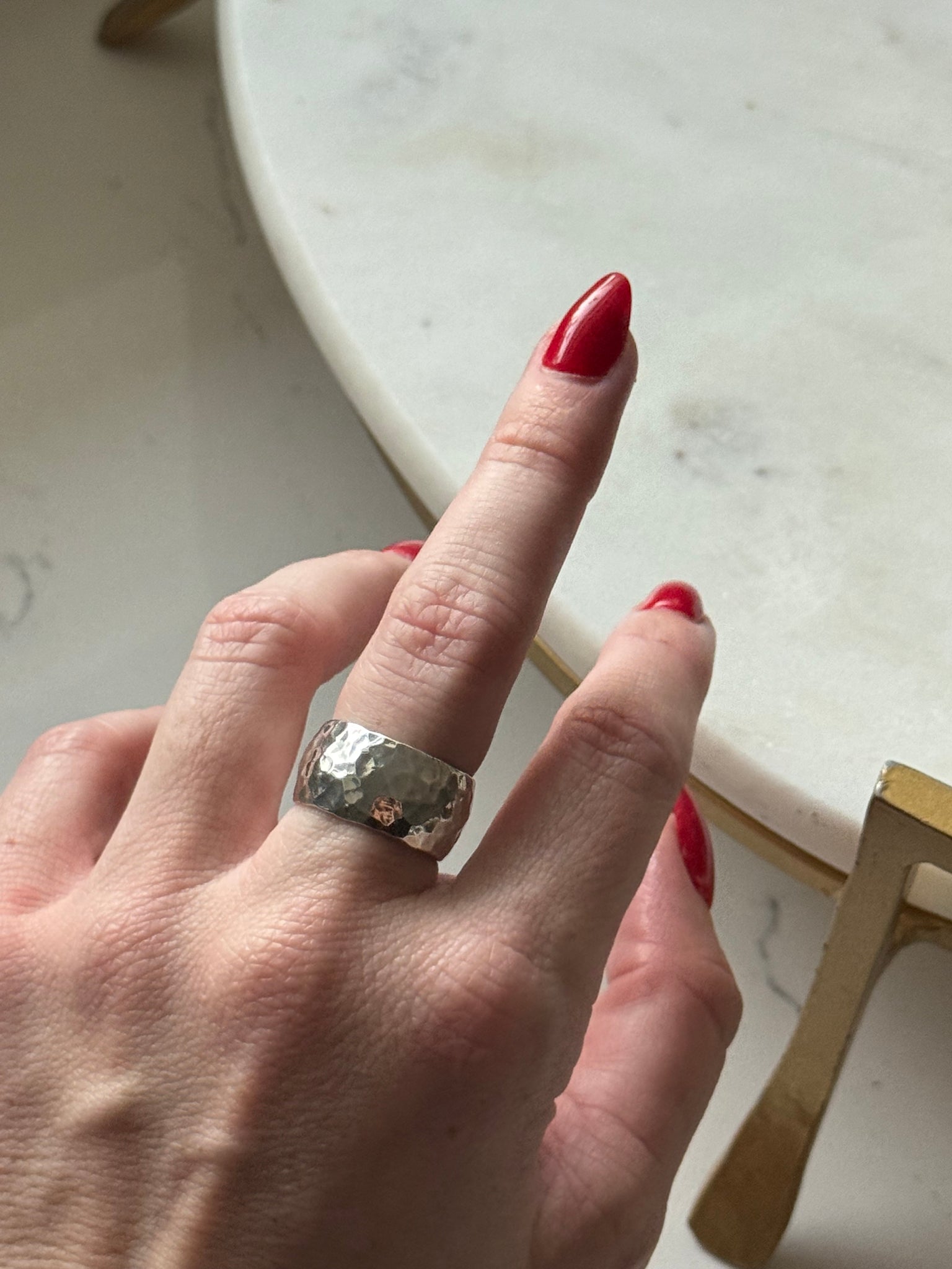 .925 Sterling silver solid, chunky and thick width • 10.4 grams • 11mm wide • ring size 7.25 on mandrel