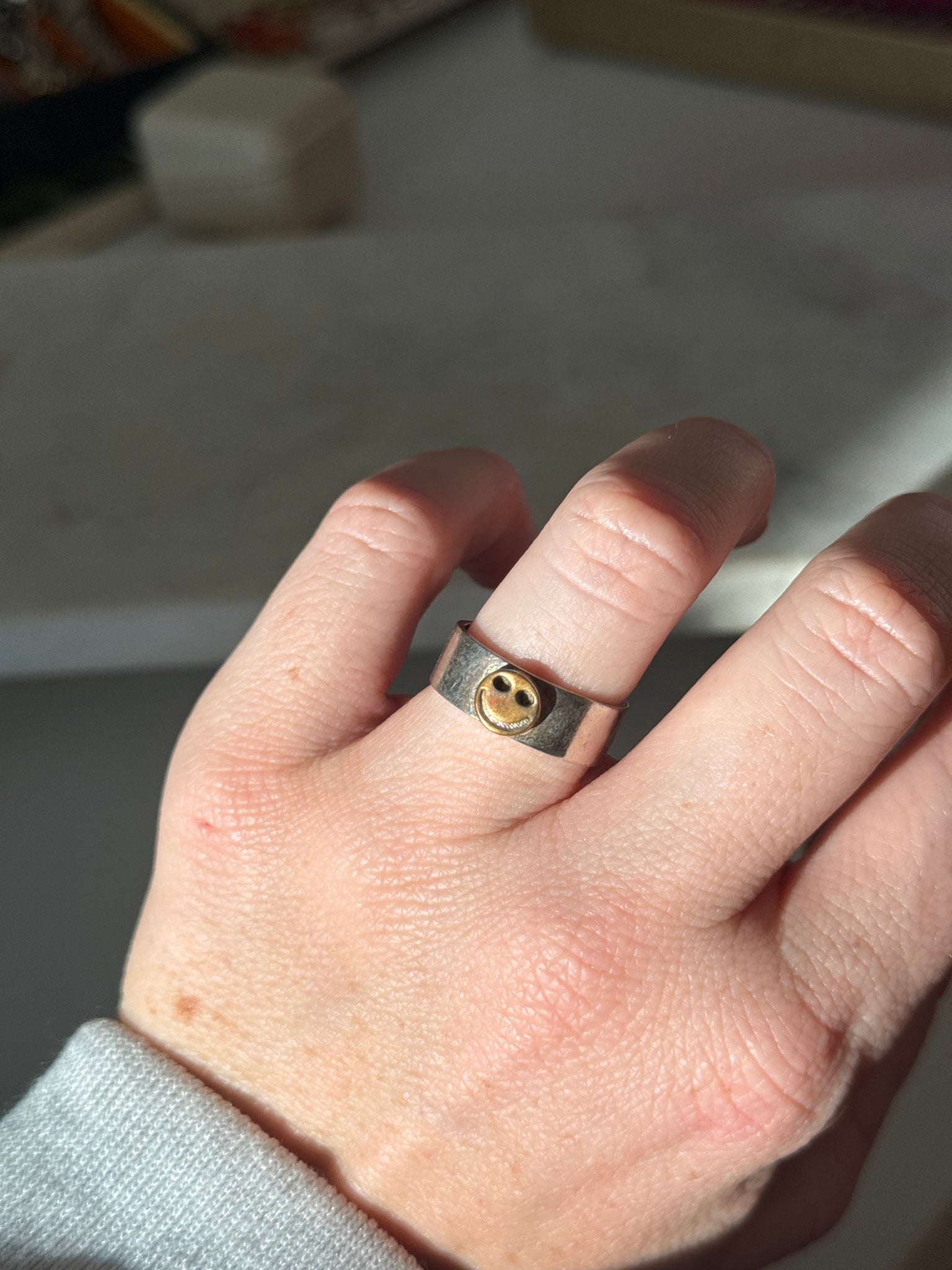 .925 Sterling with a brass smiley face • 4.5 grams • ring size 8.25