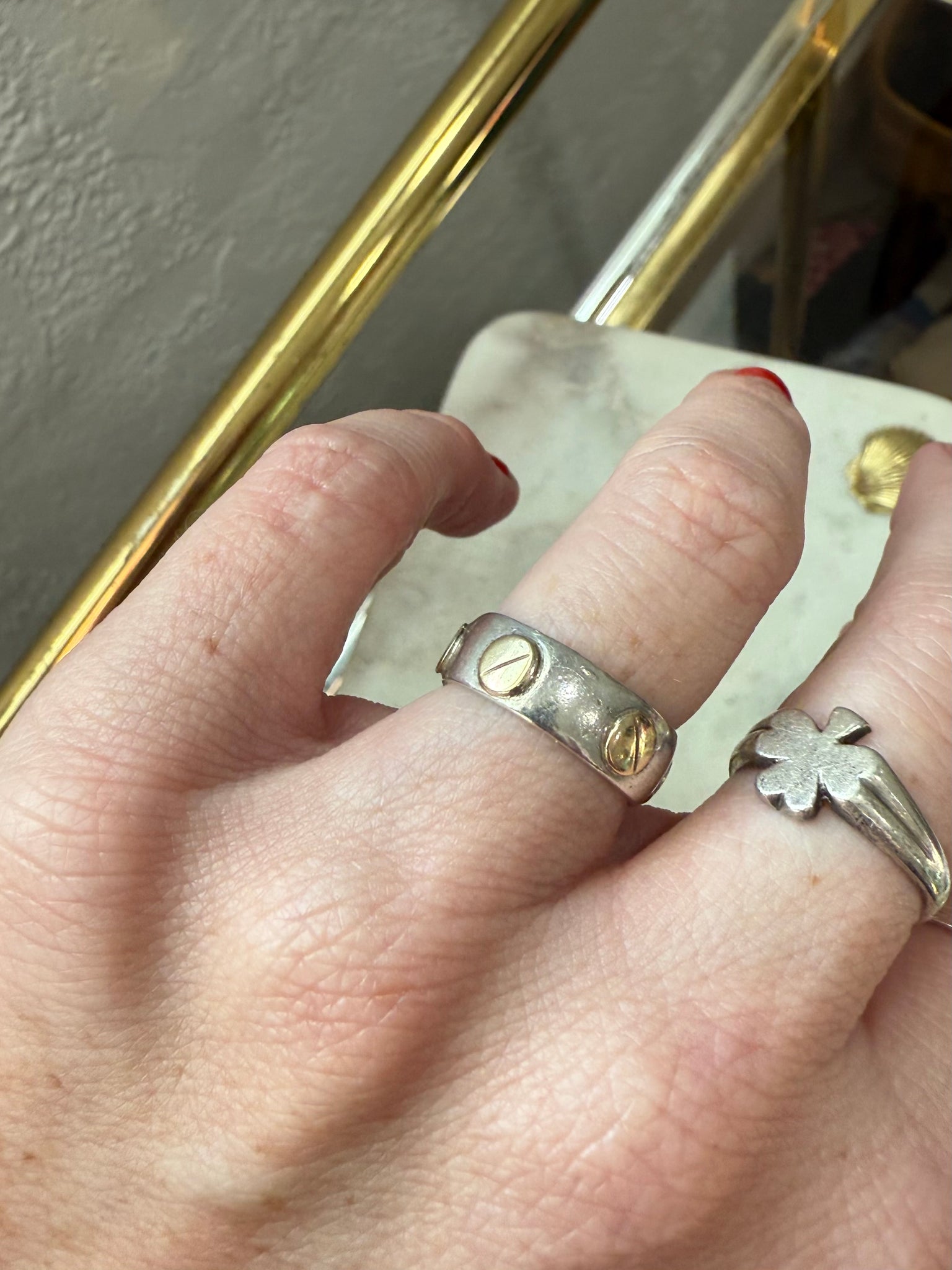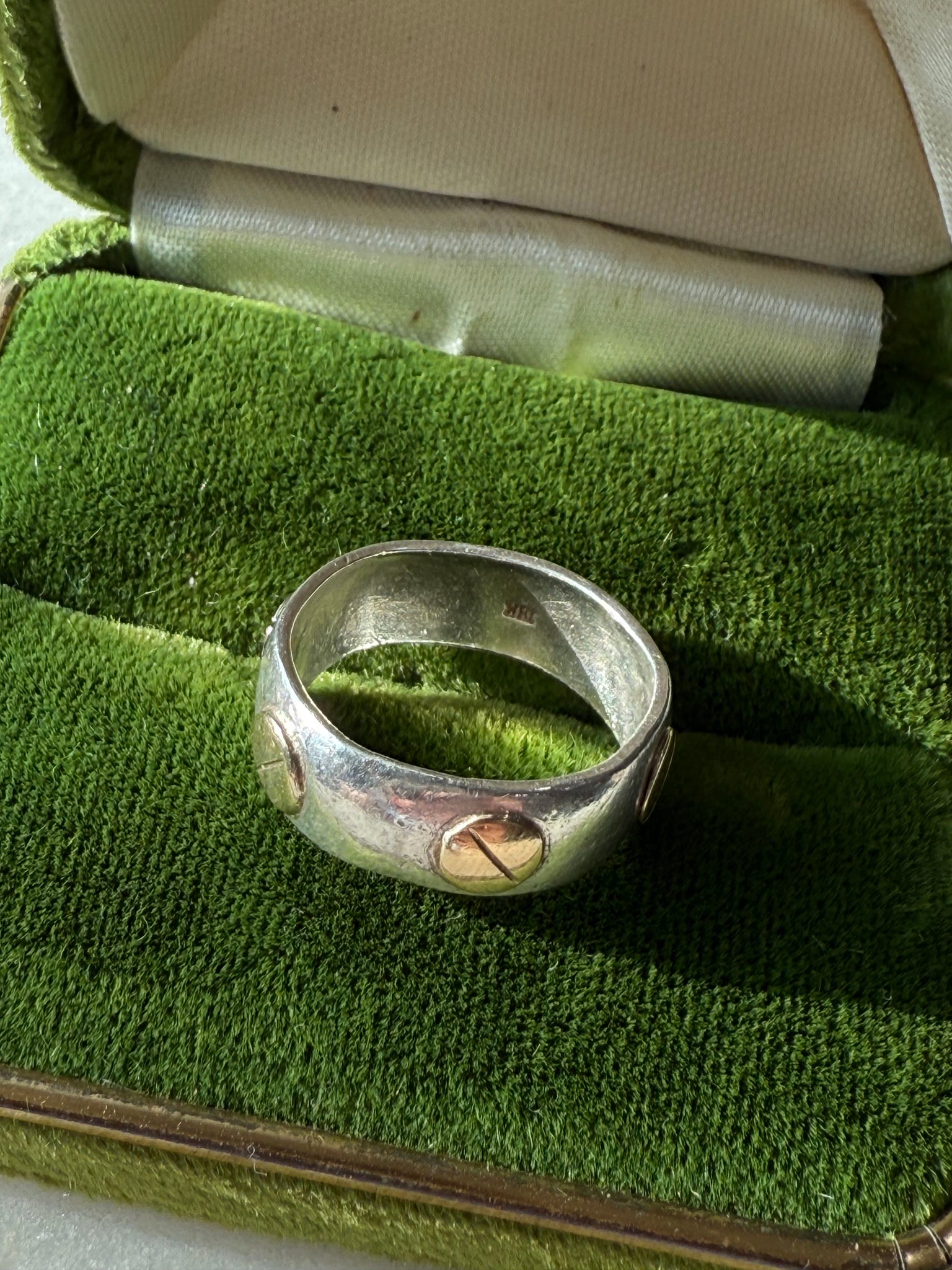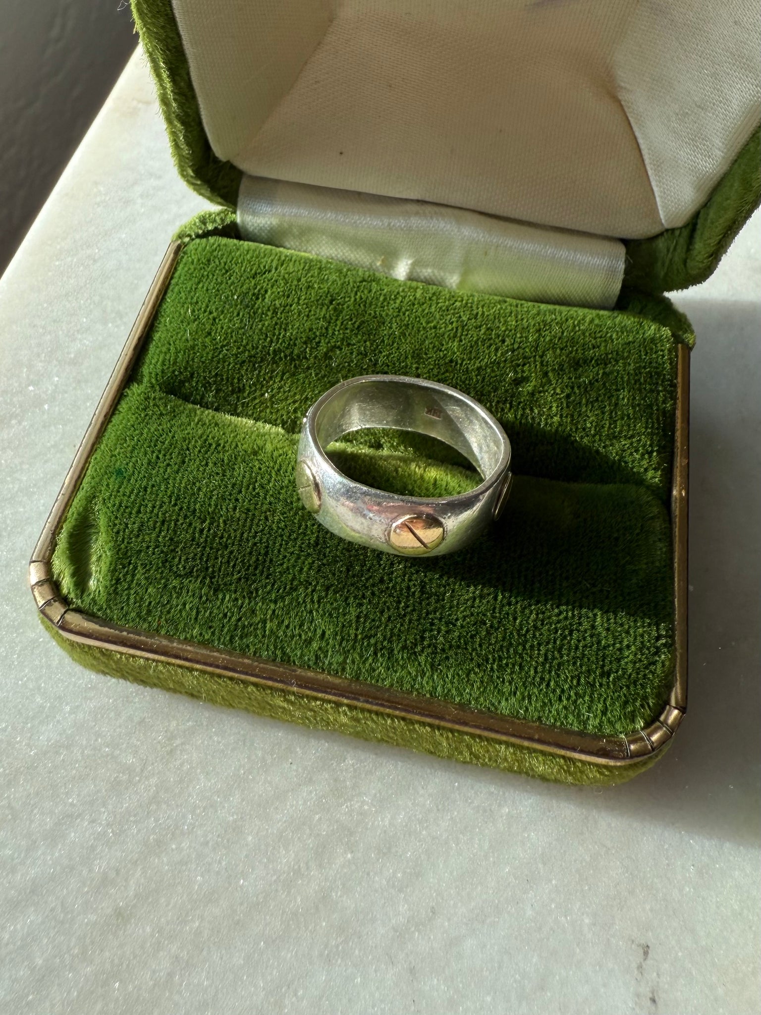 3.7 grams • ring size 6 • .925 Sterling Silver with 18k yellow gold pieces