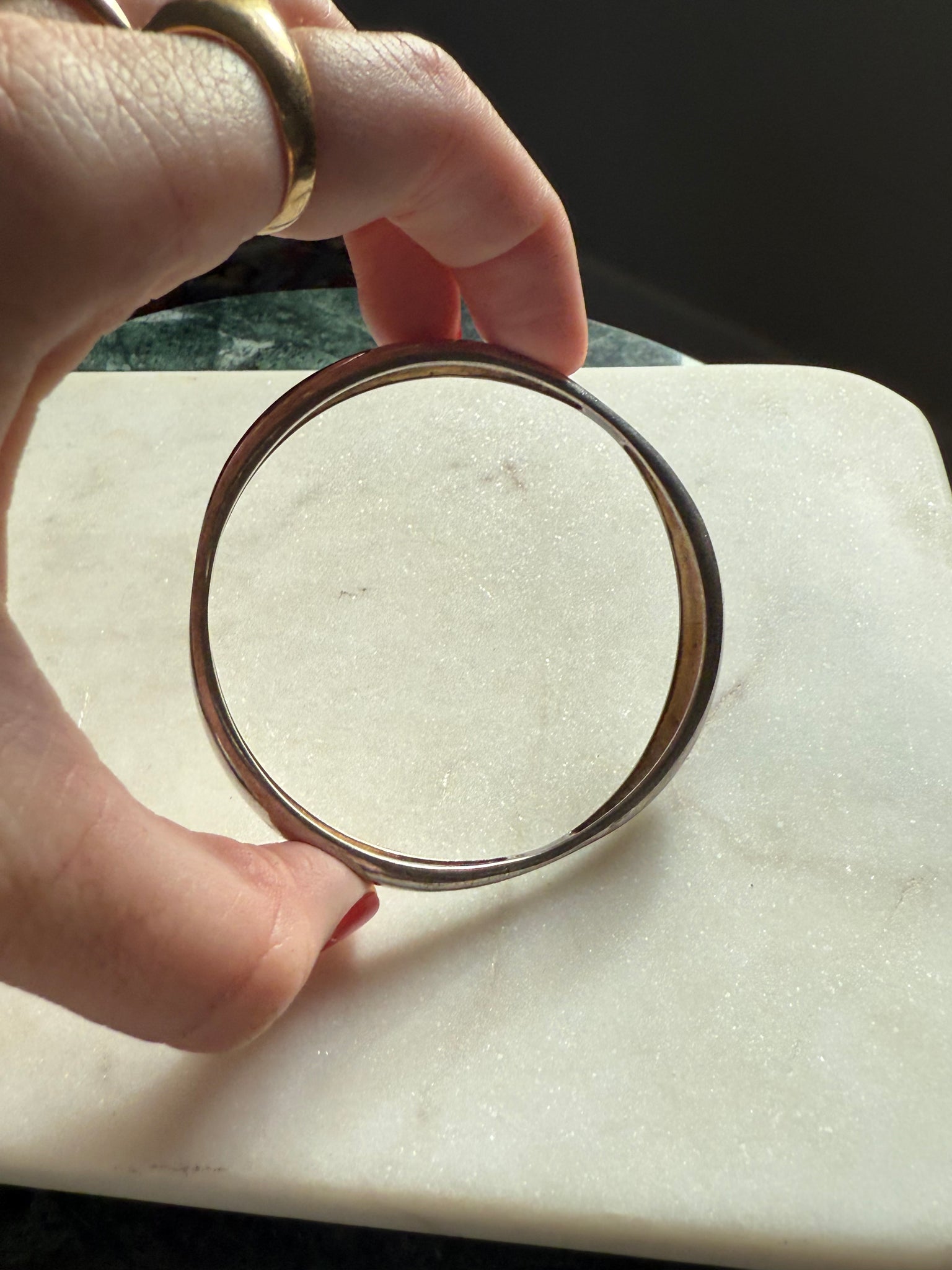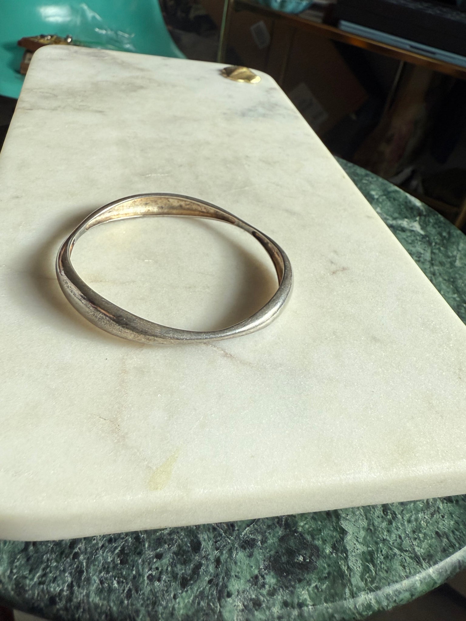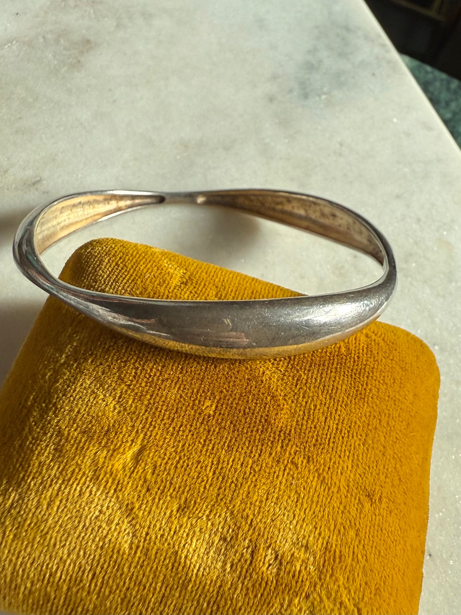 18.3 grams • .925 Sterling silver • fits up to 7” wrist • measures 2.5” inside the center of the bangle