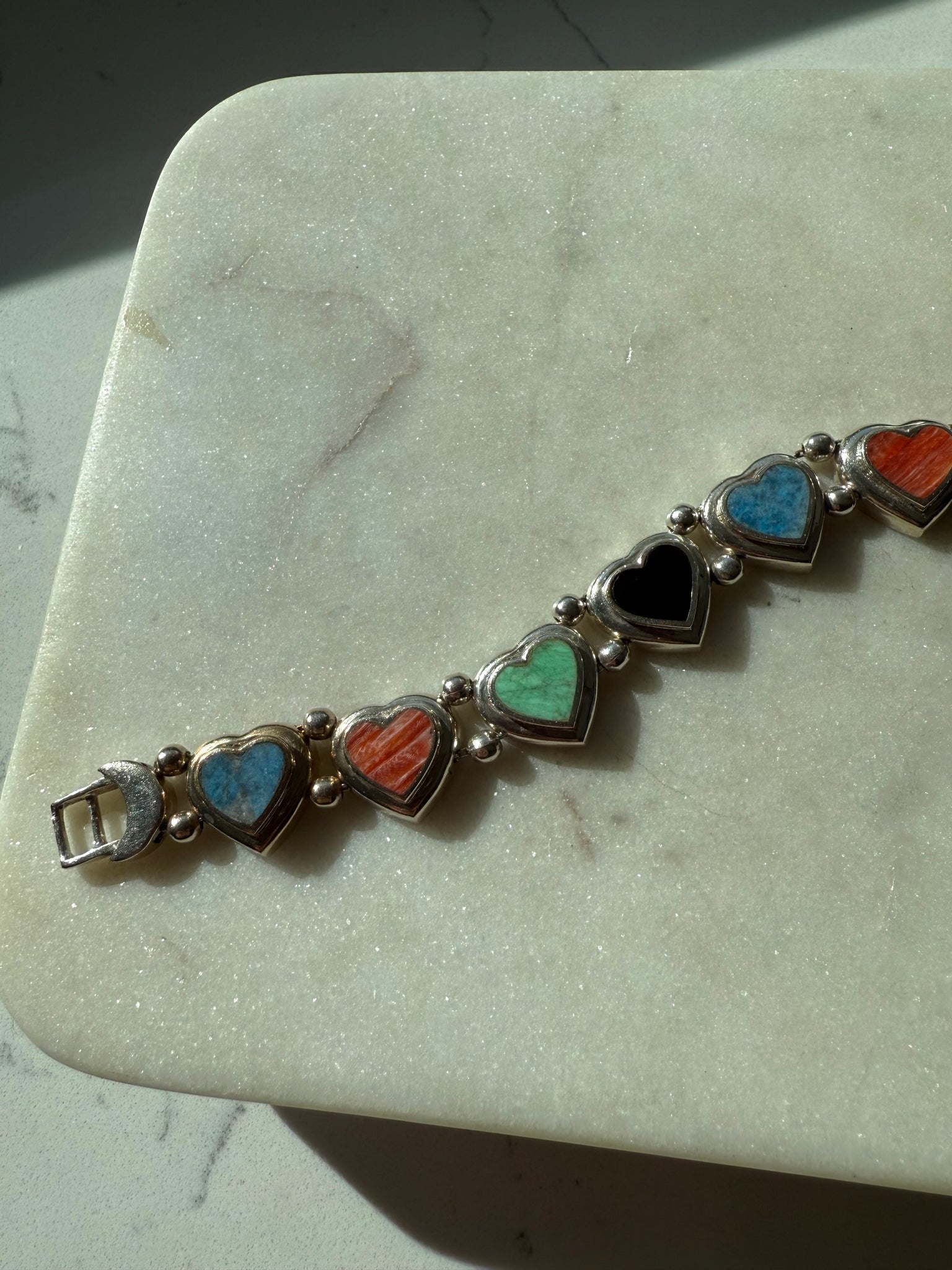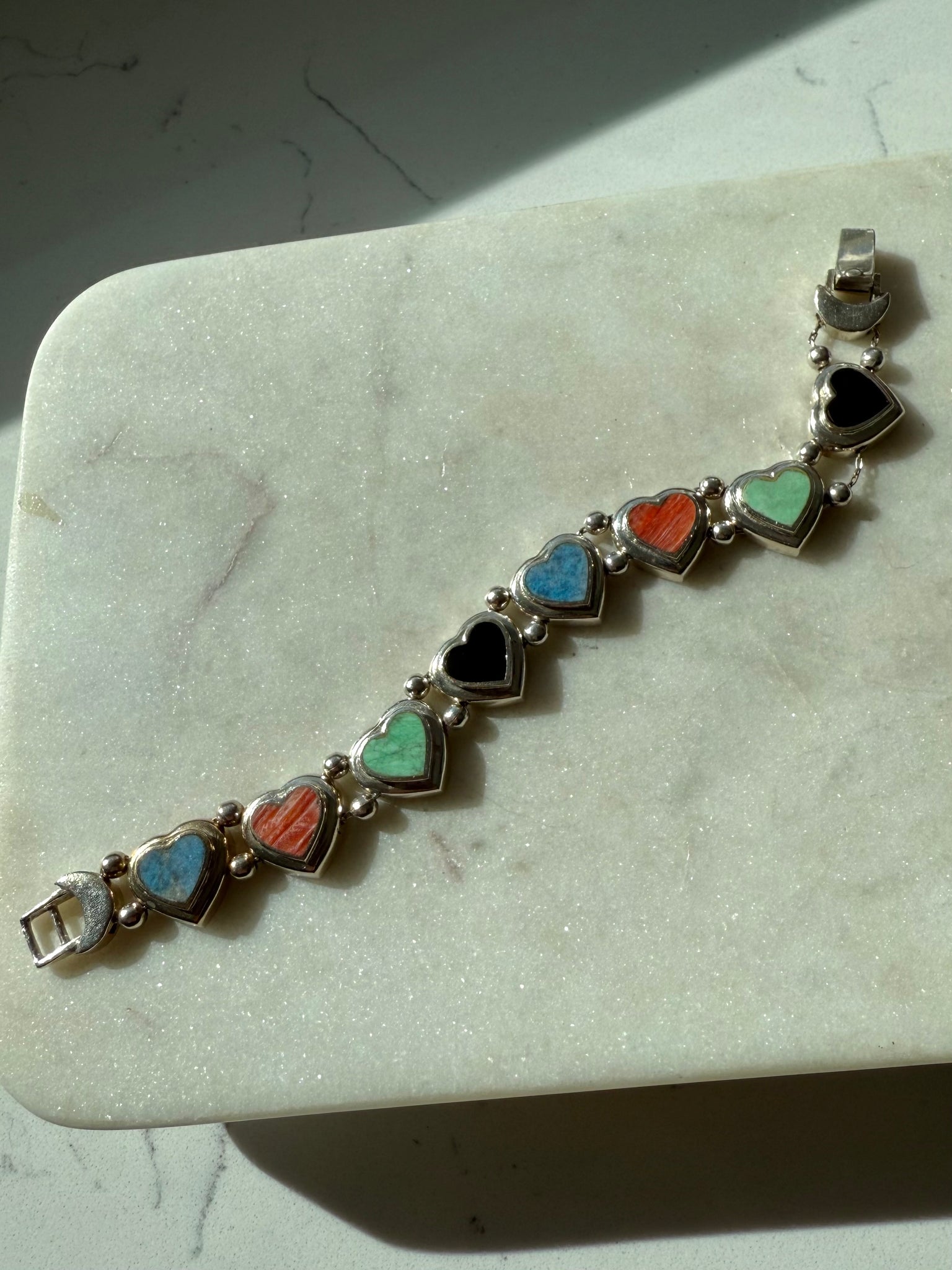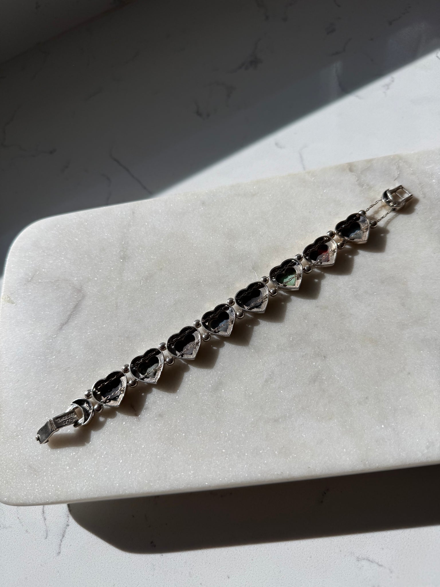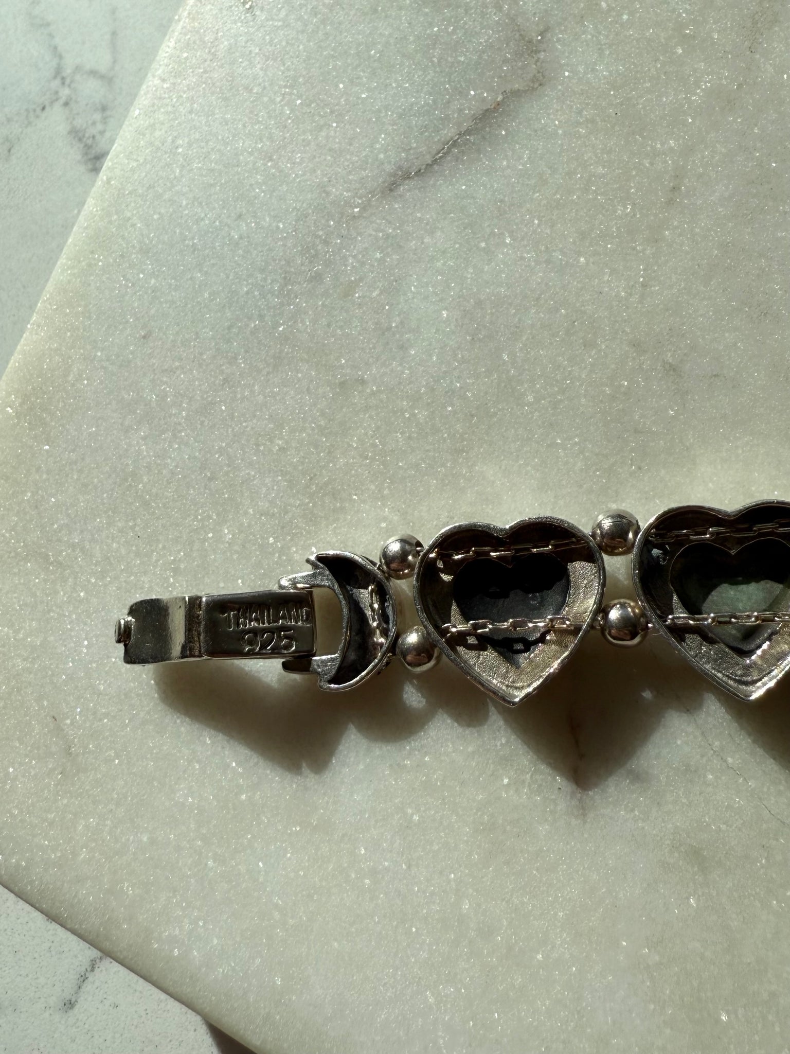 Vintage Sterling Silver Heart Bracelet 7.5”