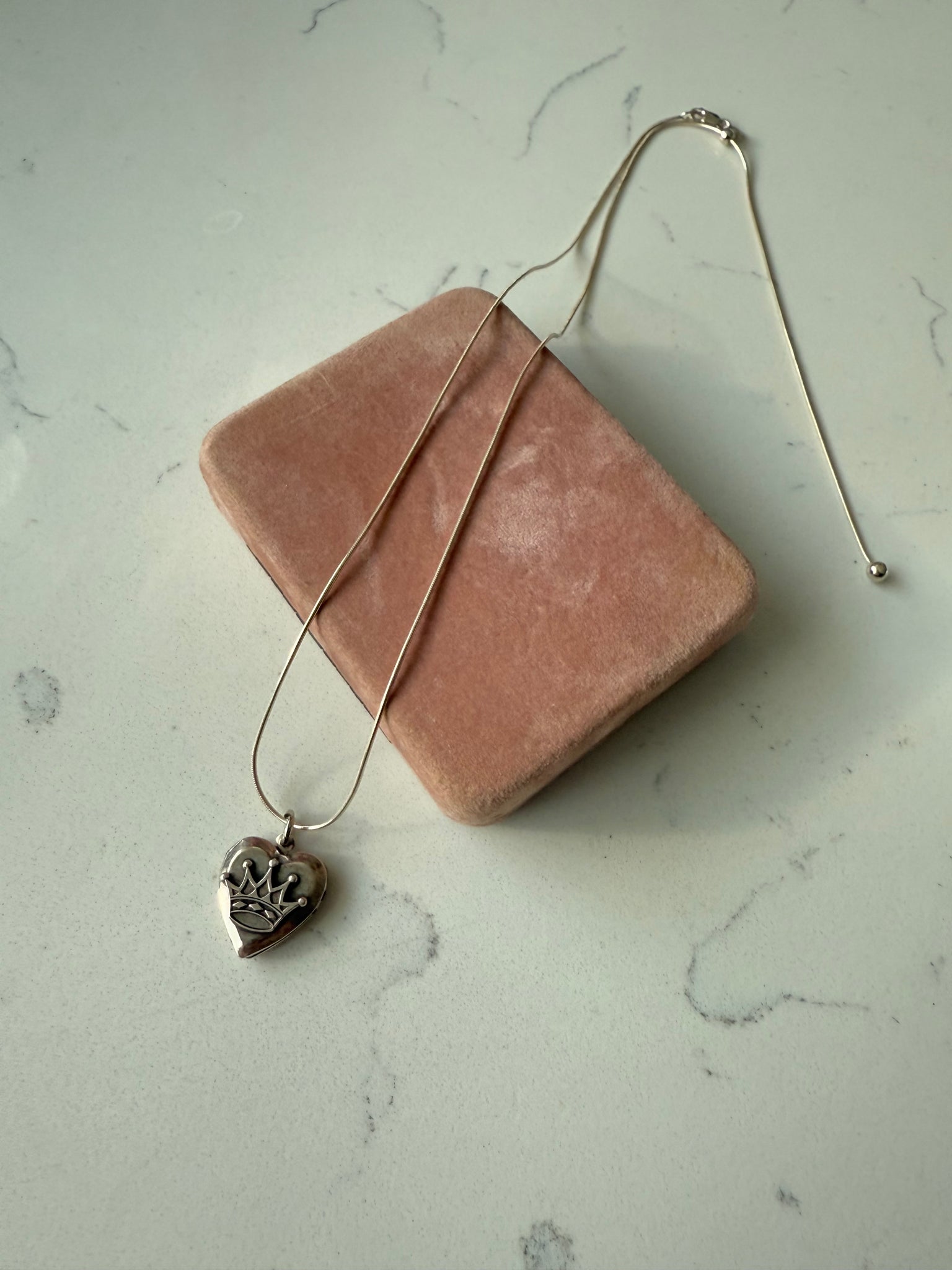 chain measures multiple lengths, has adjustable slider • chain & locket total weight combined is 7.3 grams