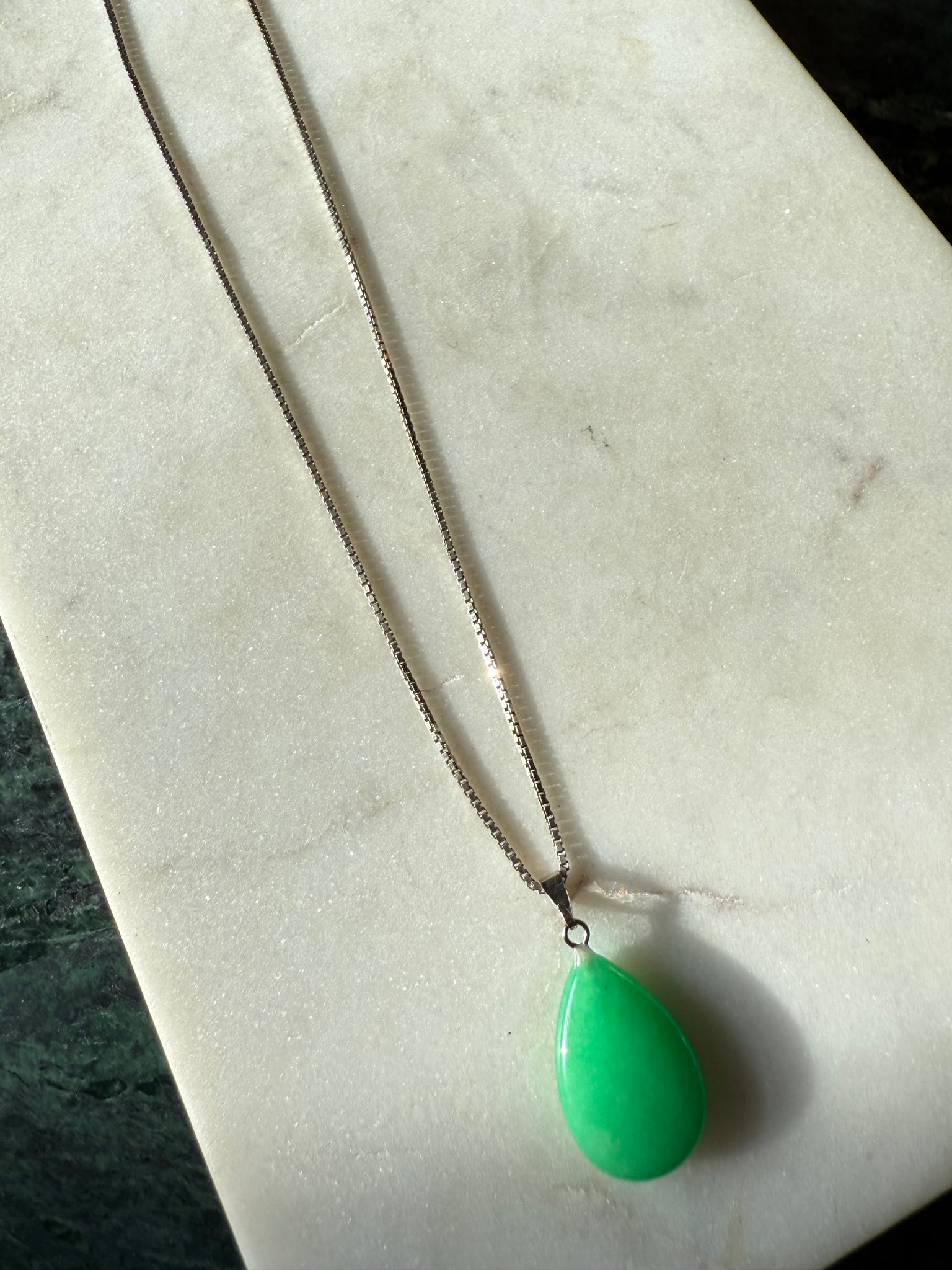 Unsure if the jade is real or not • .925 chain measures 19.5” length • the pendant measures 1” x .5” • 7.7 grams total (pendant and chain)