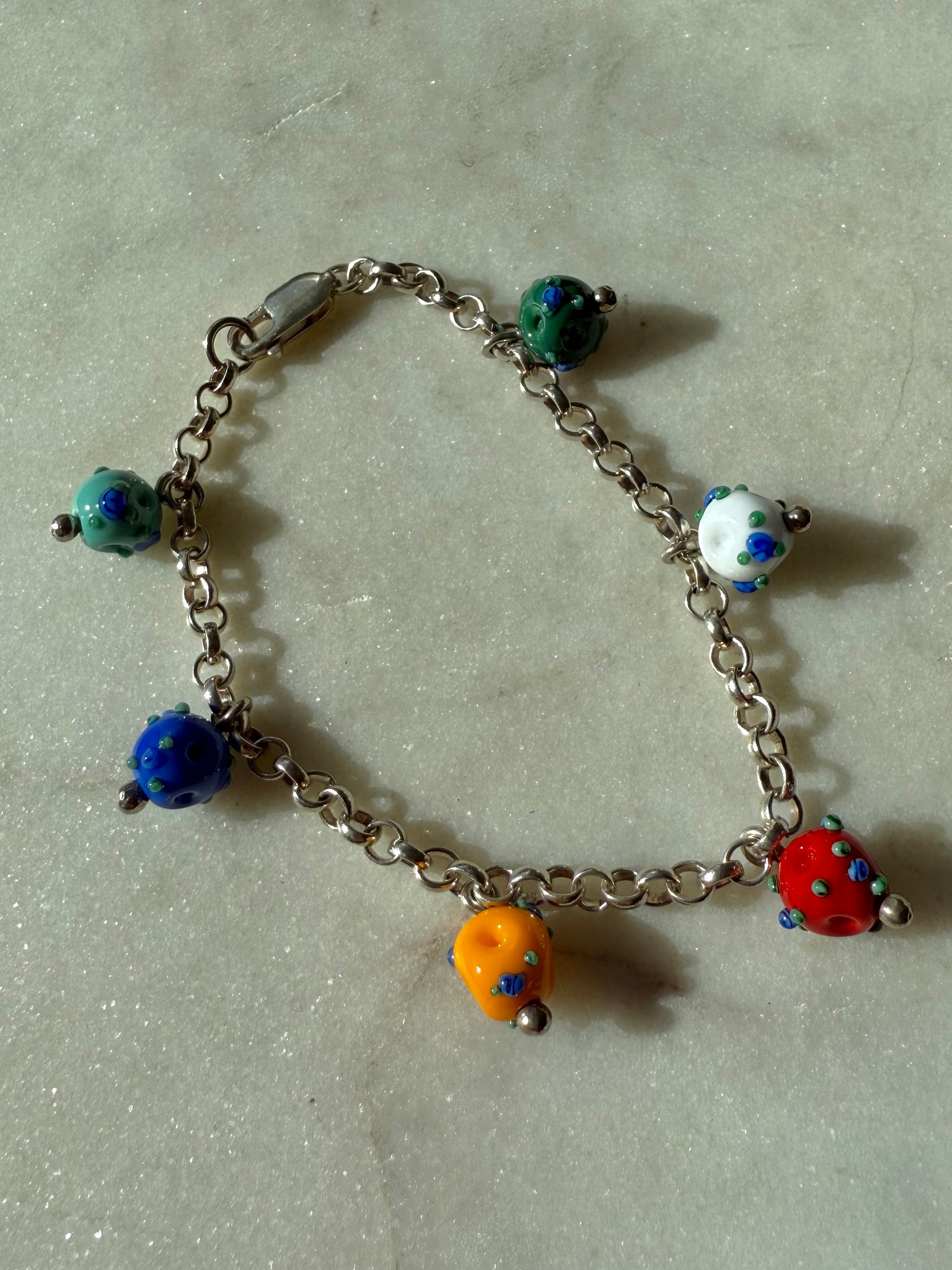 Vintage Sterling Silver Murano Glass Bracelet 7.5”