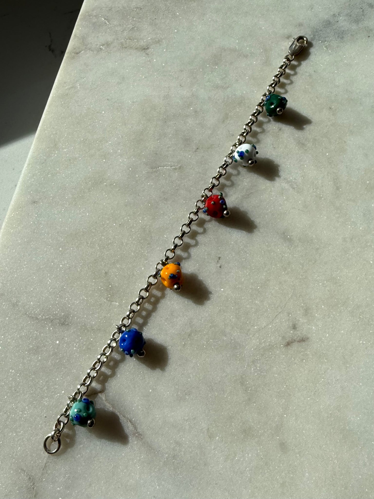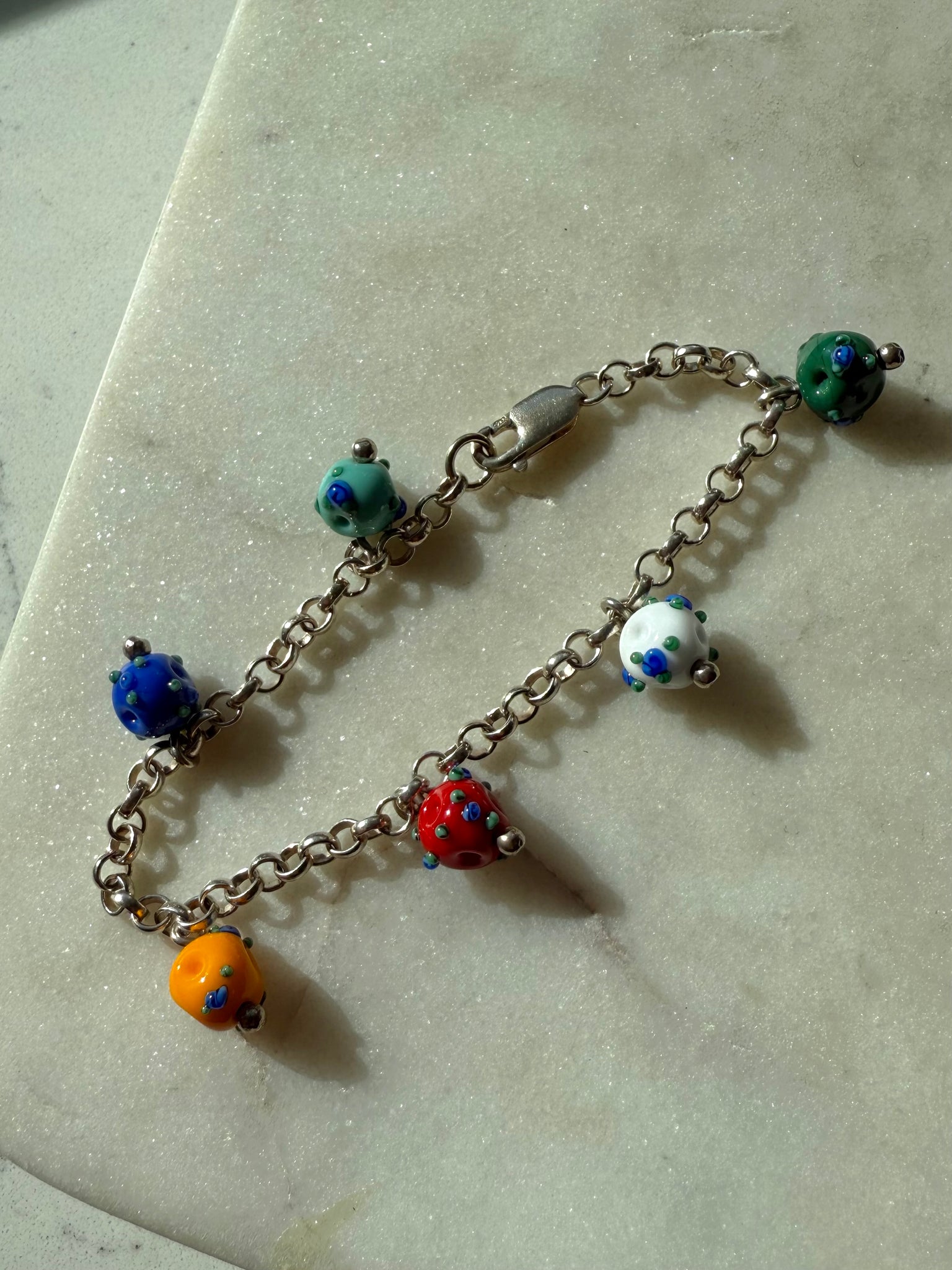 .925 Sterling silver • 12 grams • 7.5” length • 9mm glass beads