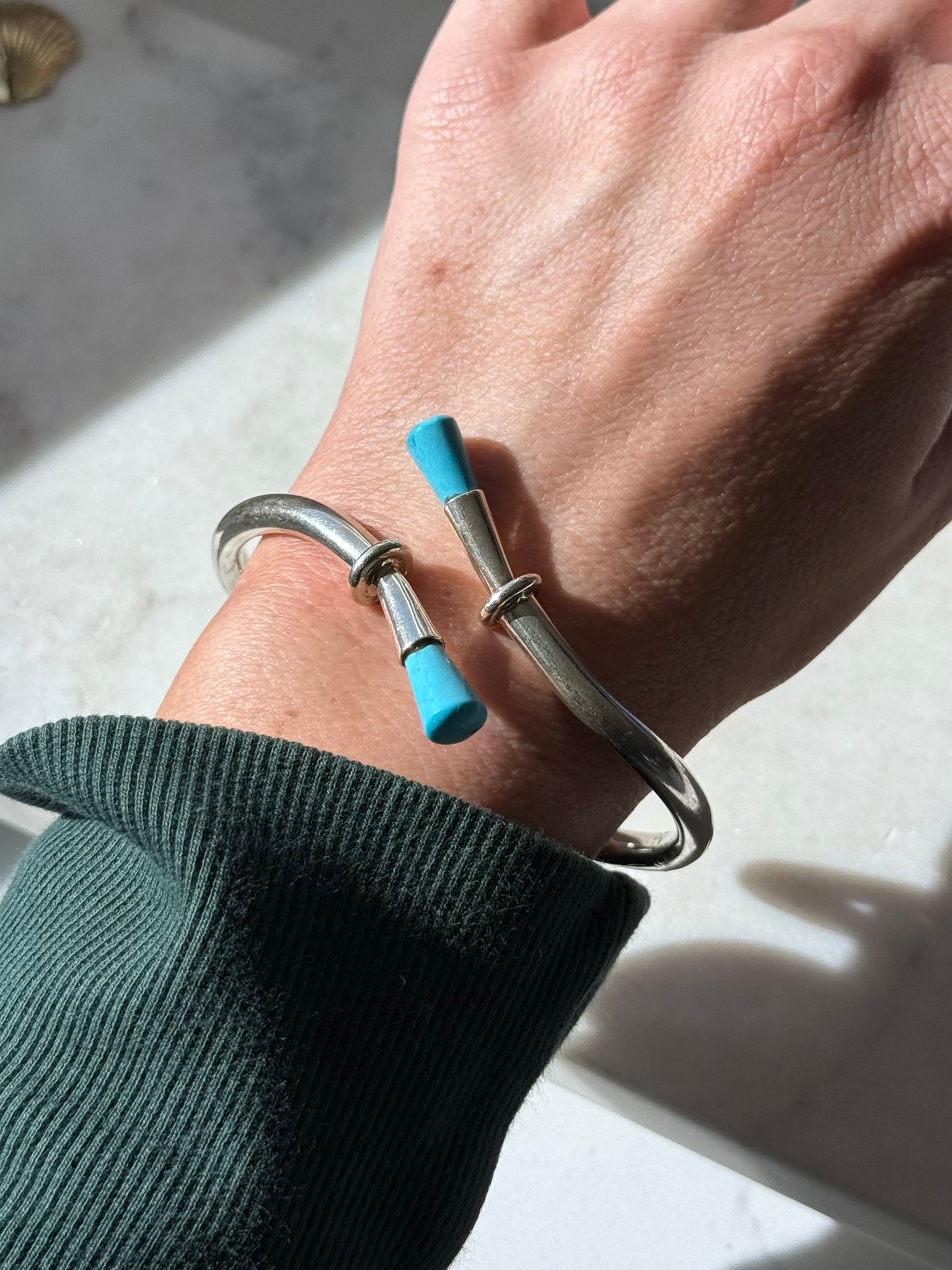 Vintage Sterling Silver Turquoise Bangle Bracelet