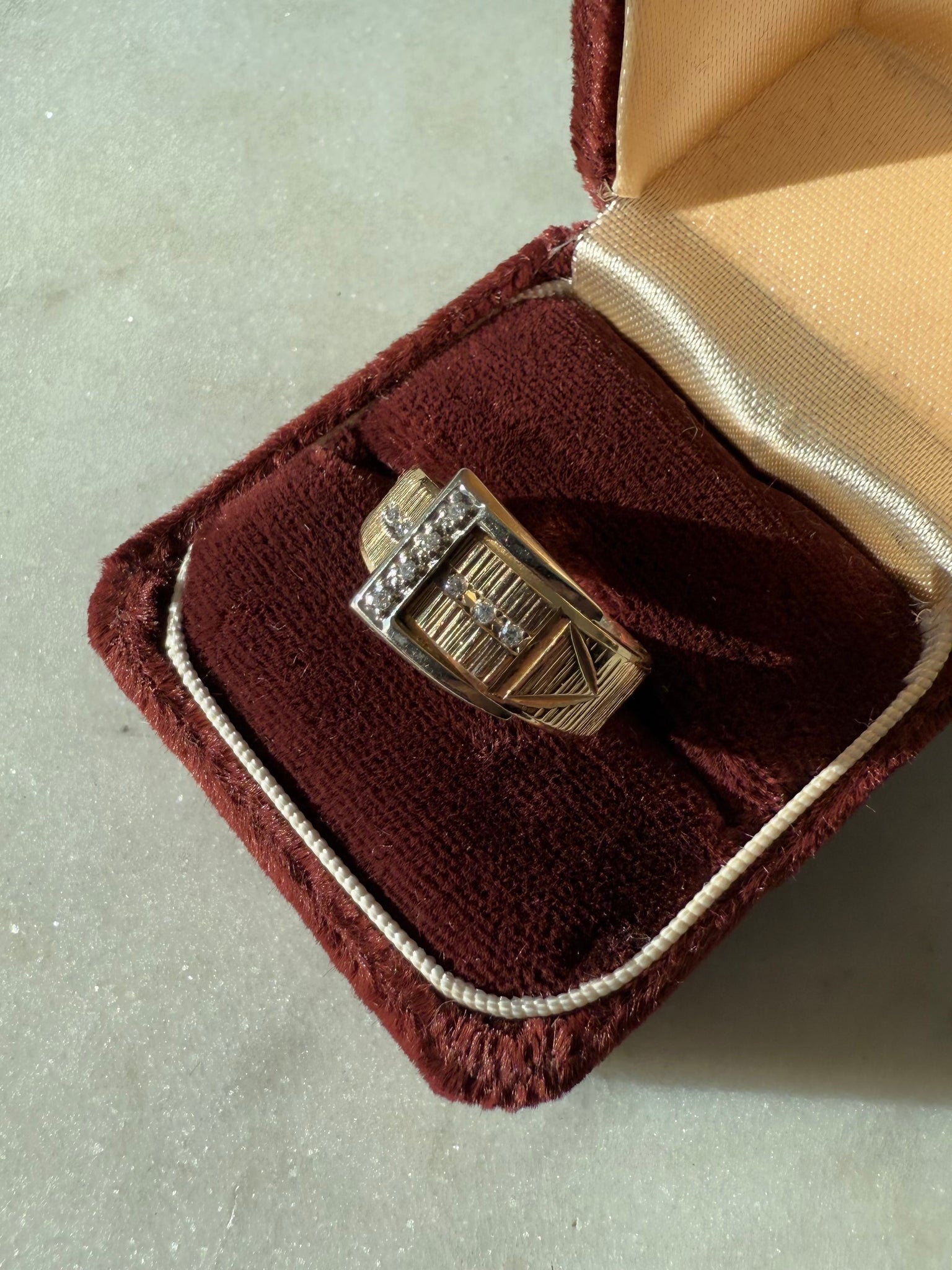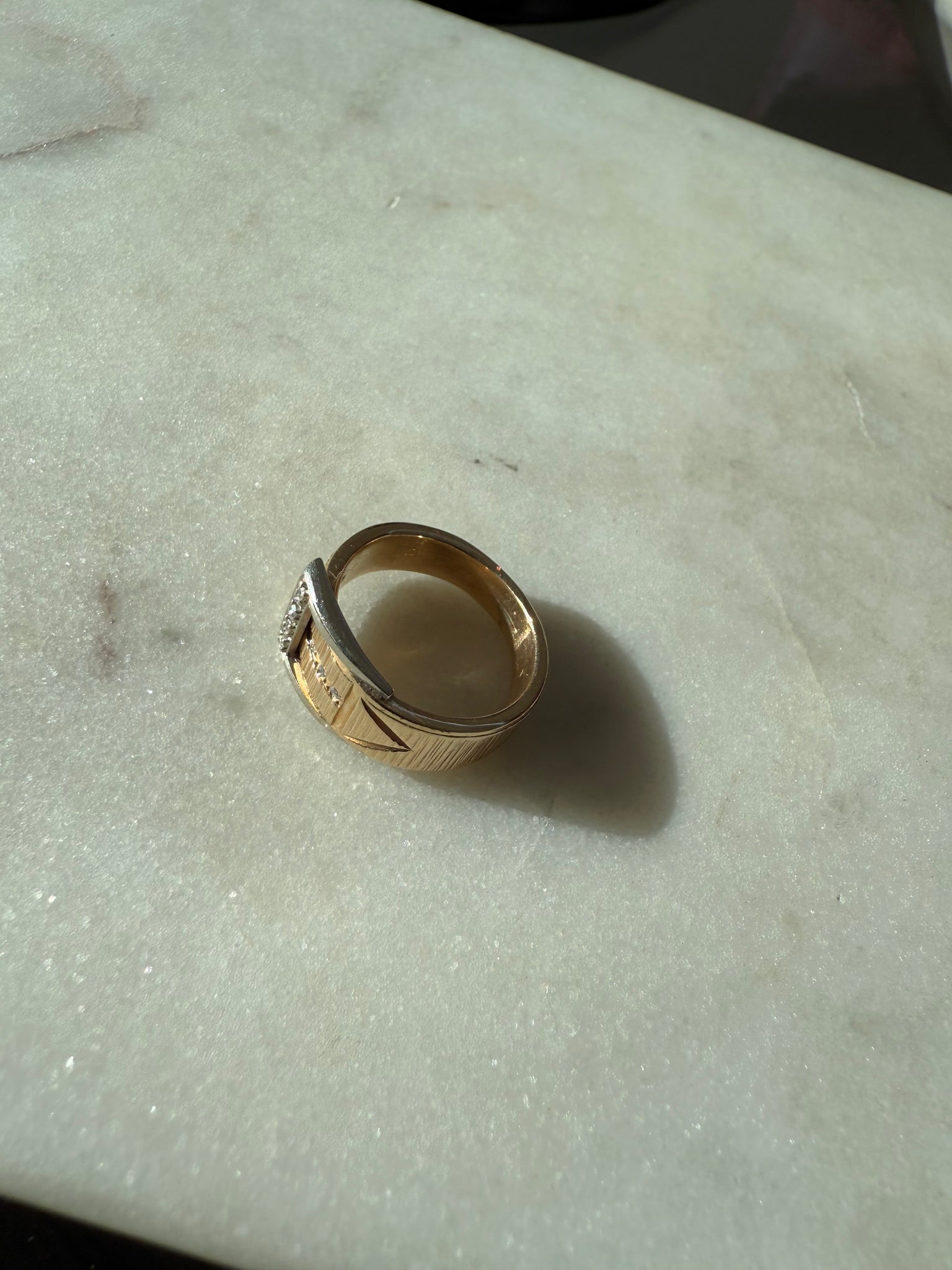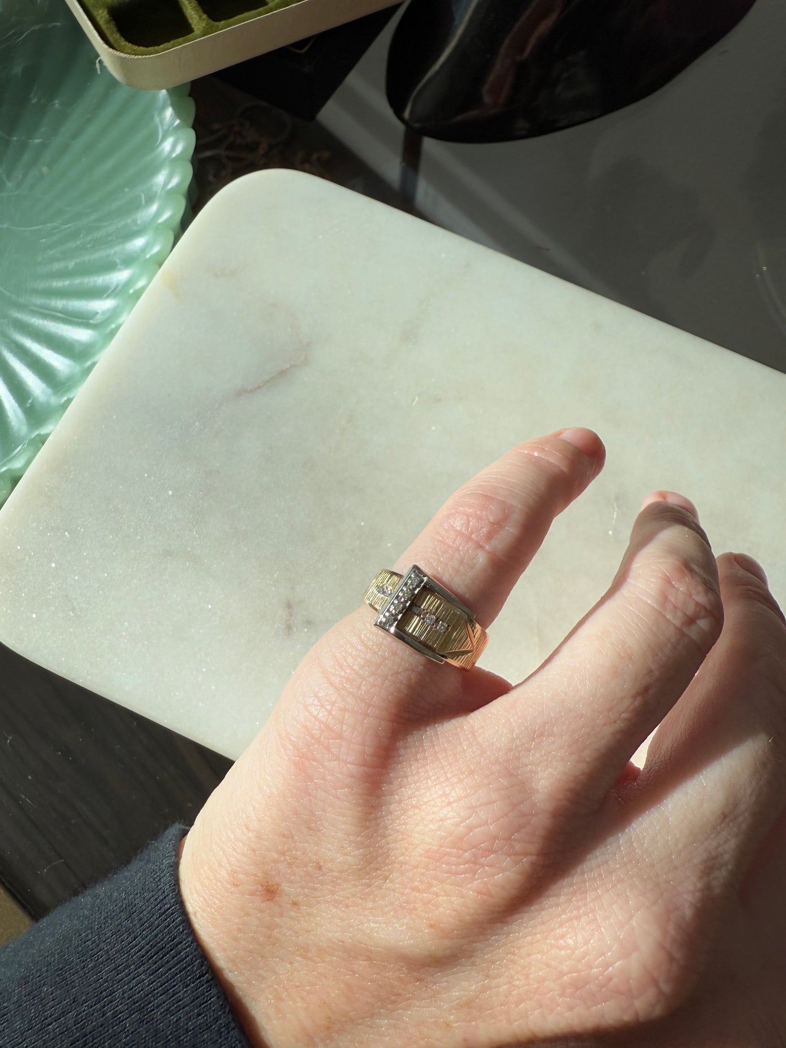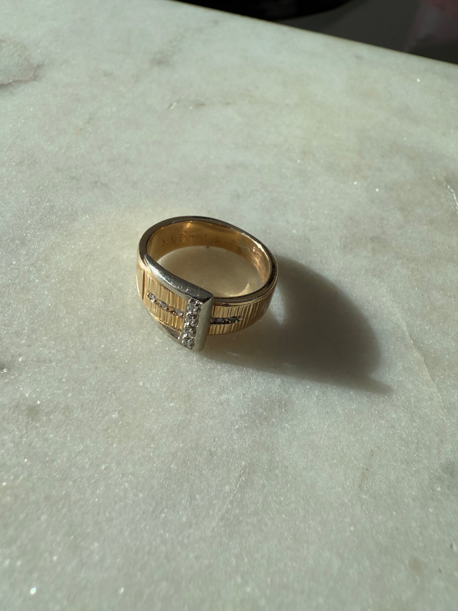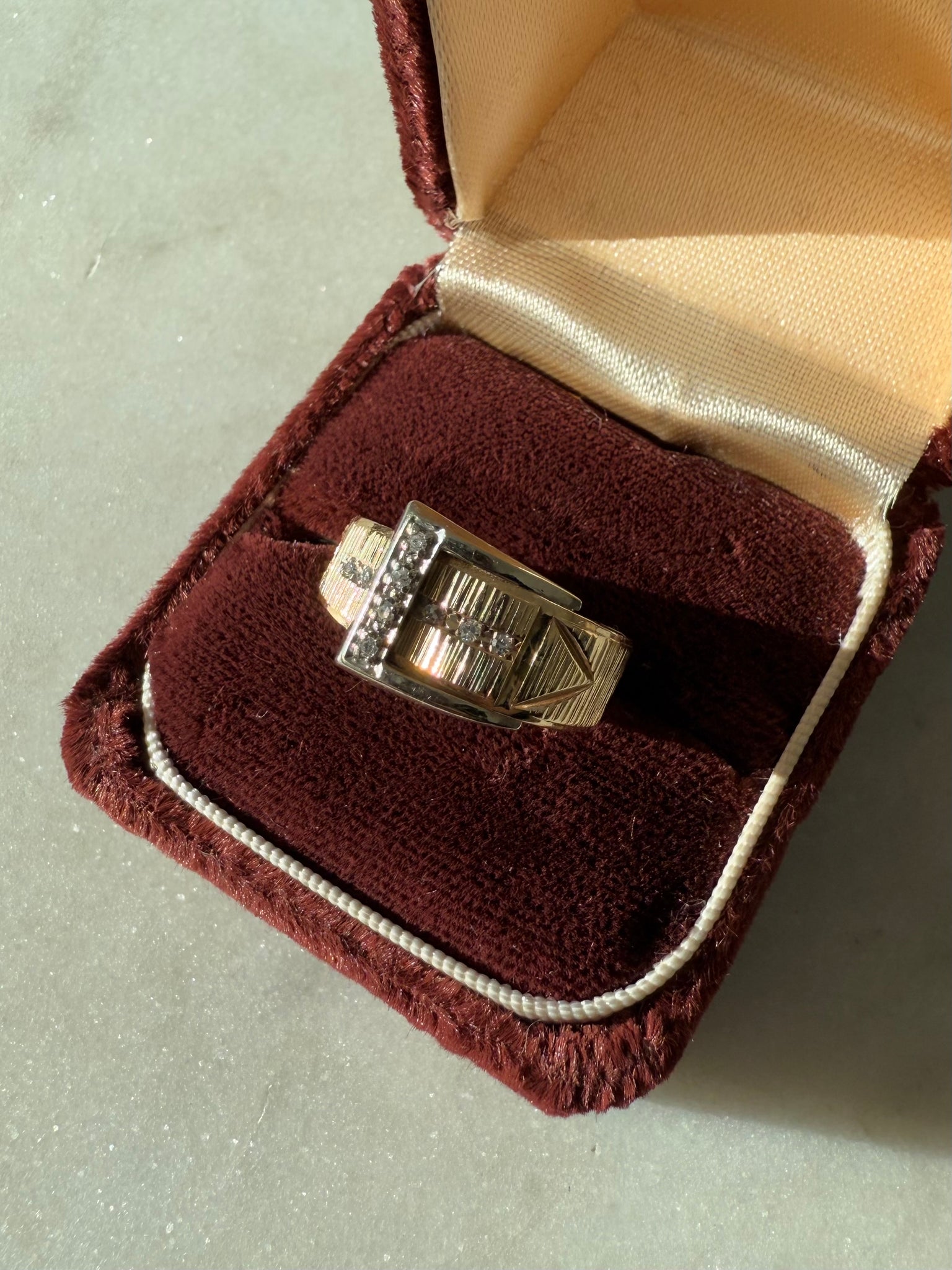 Vintage Two-Toned Solid 14k Gold Diamond Buckle Ring