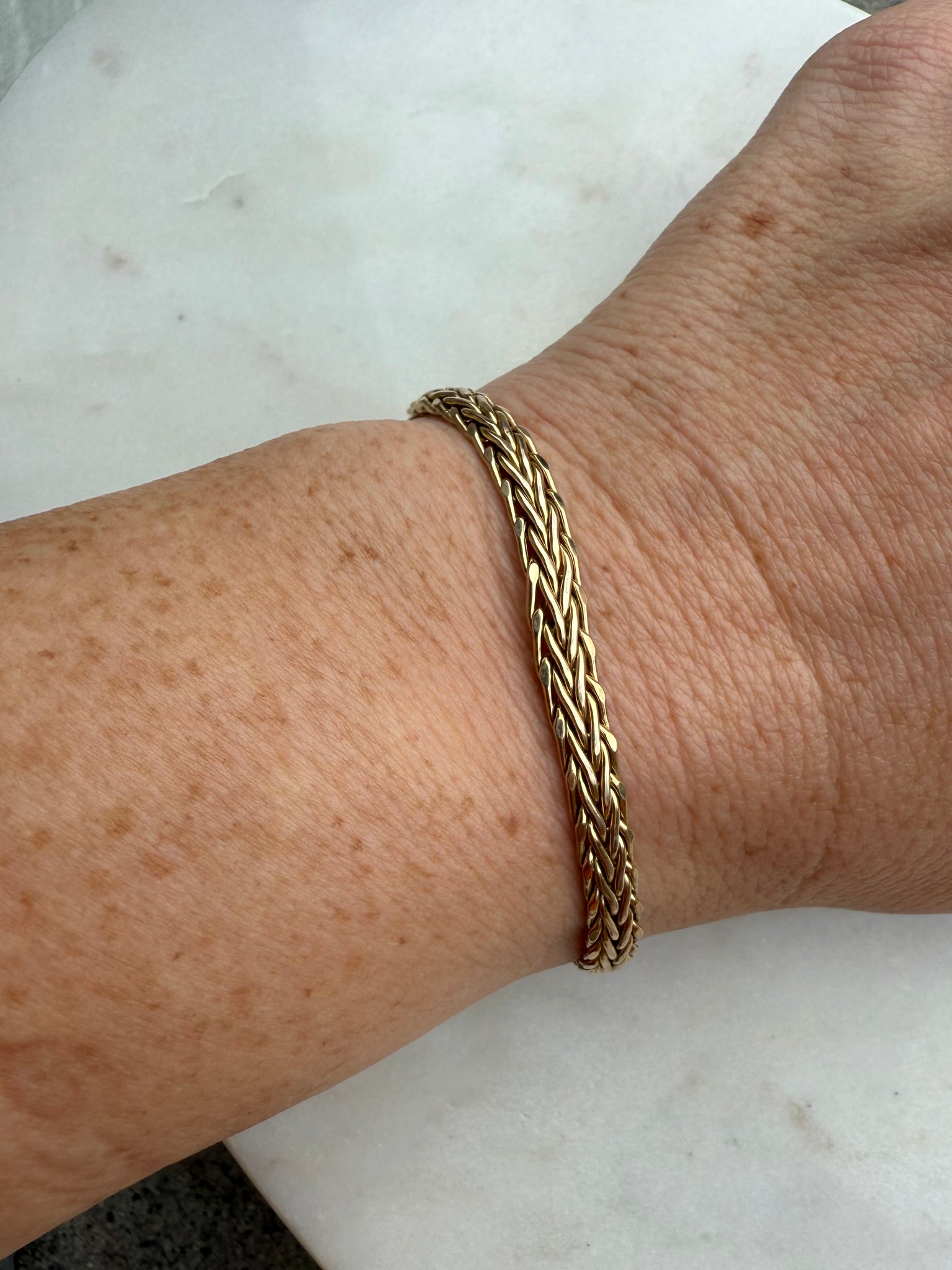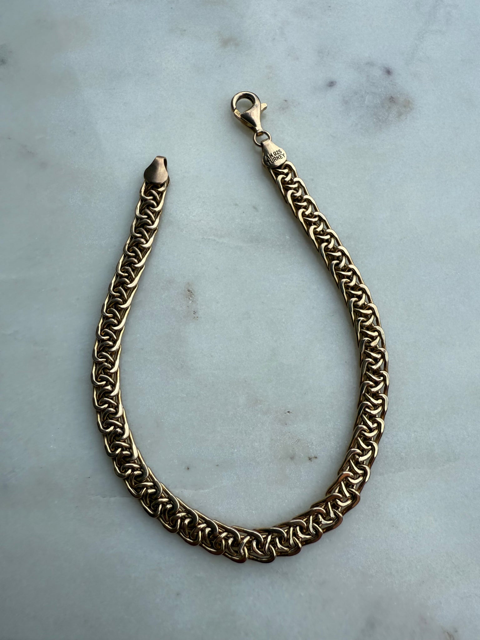 5.3 grams • 5mm width • a little past 7.5” length lying flat out, best for 7.25” wrist and under • stamped .925 turkey