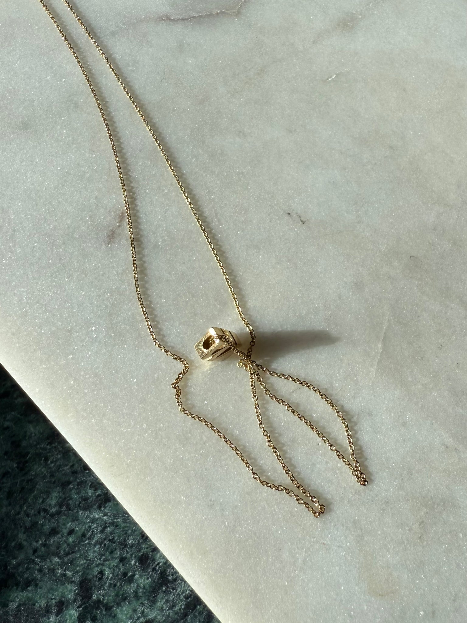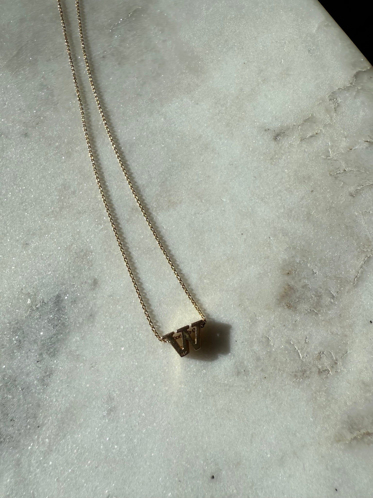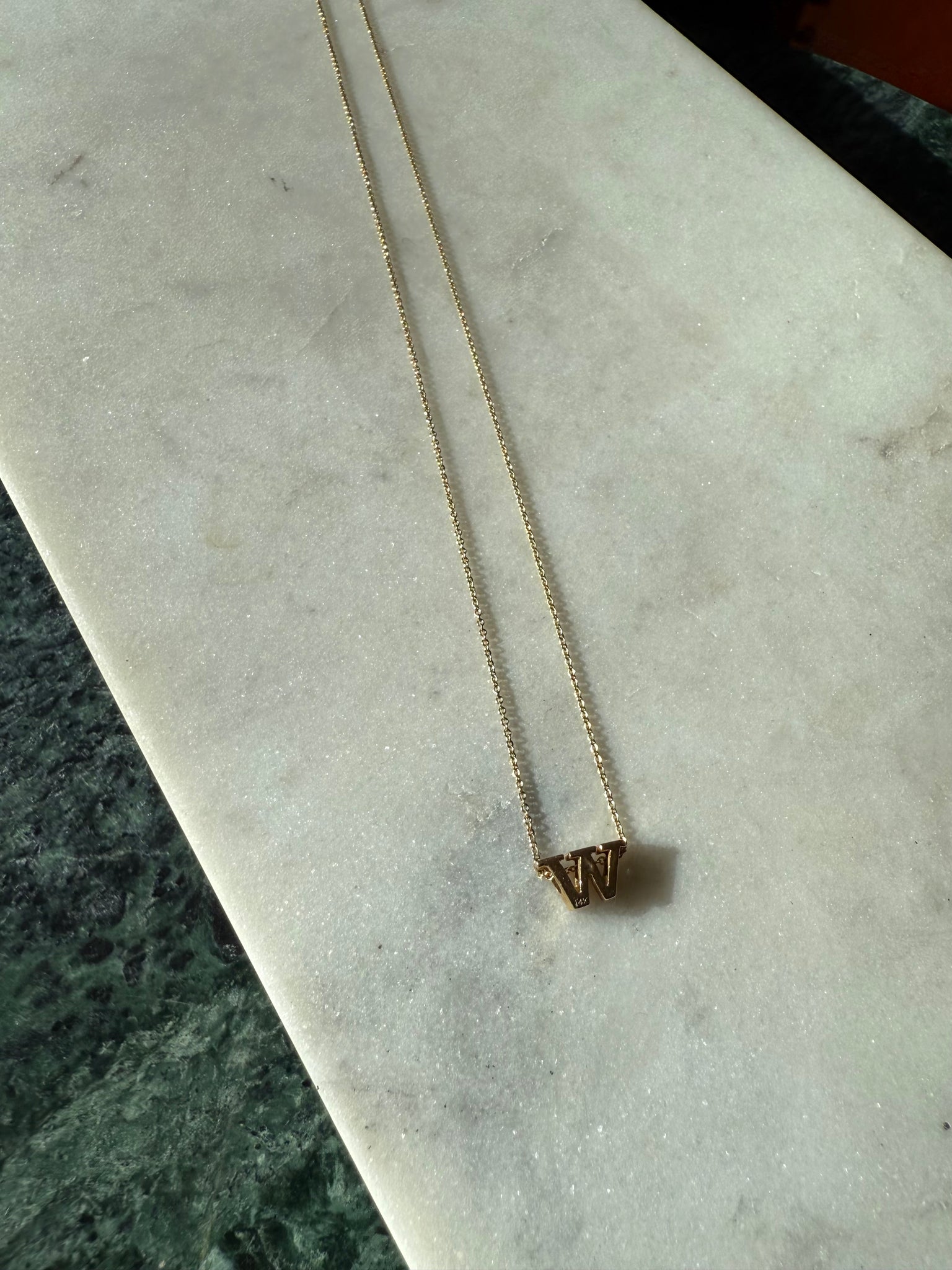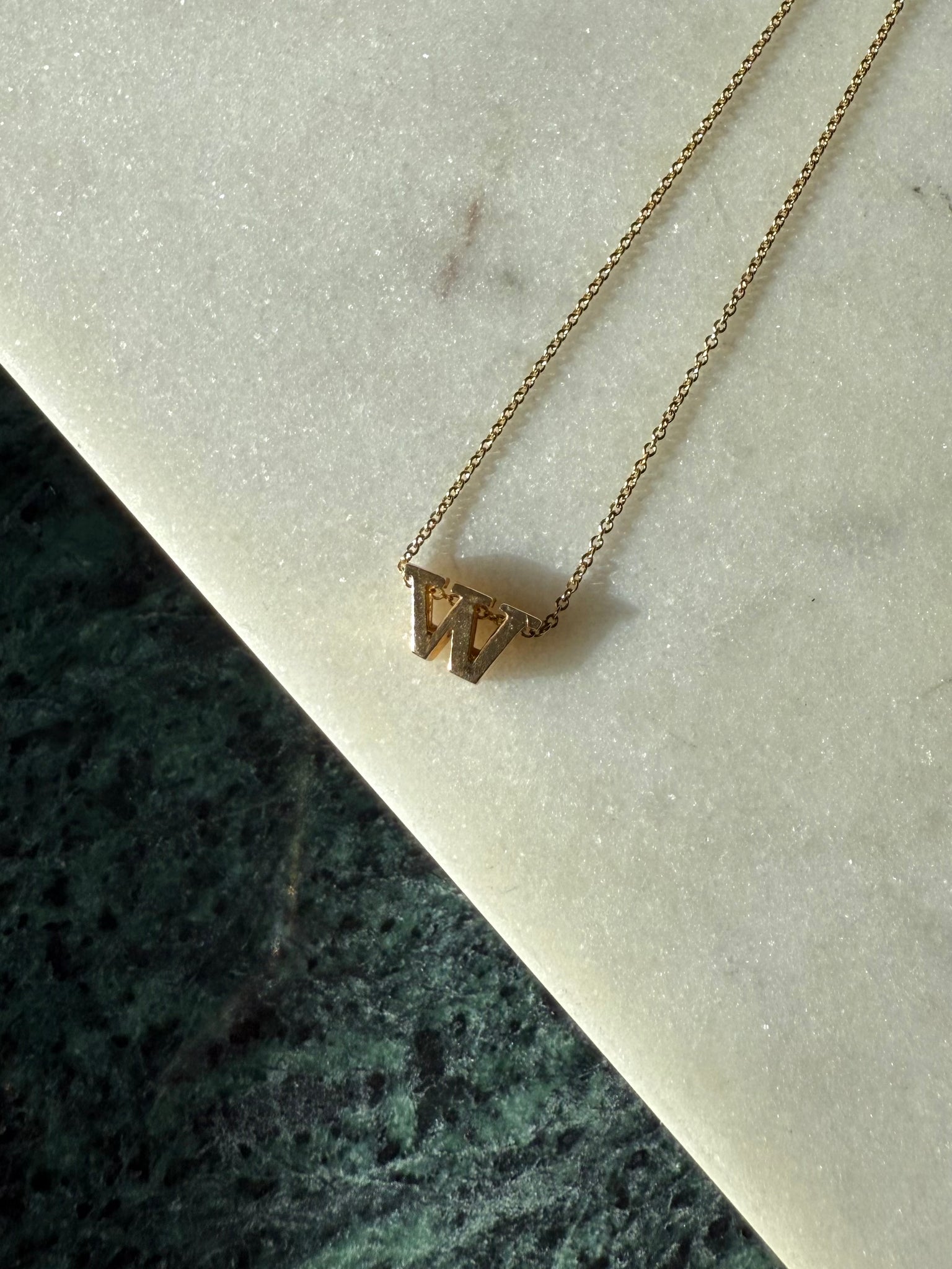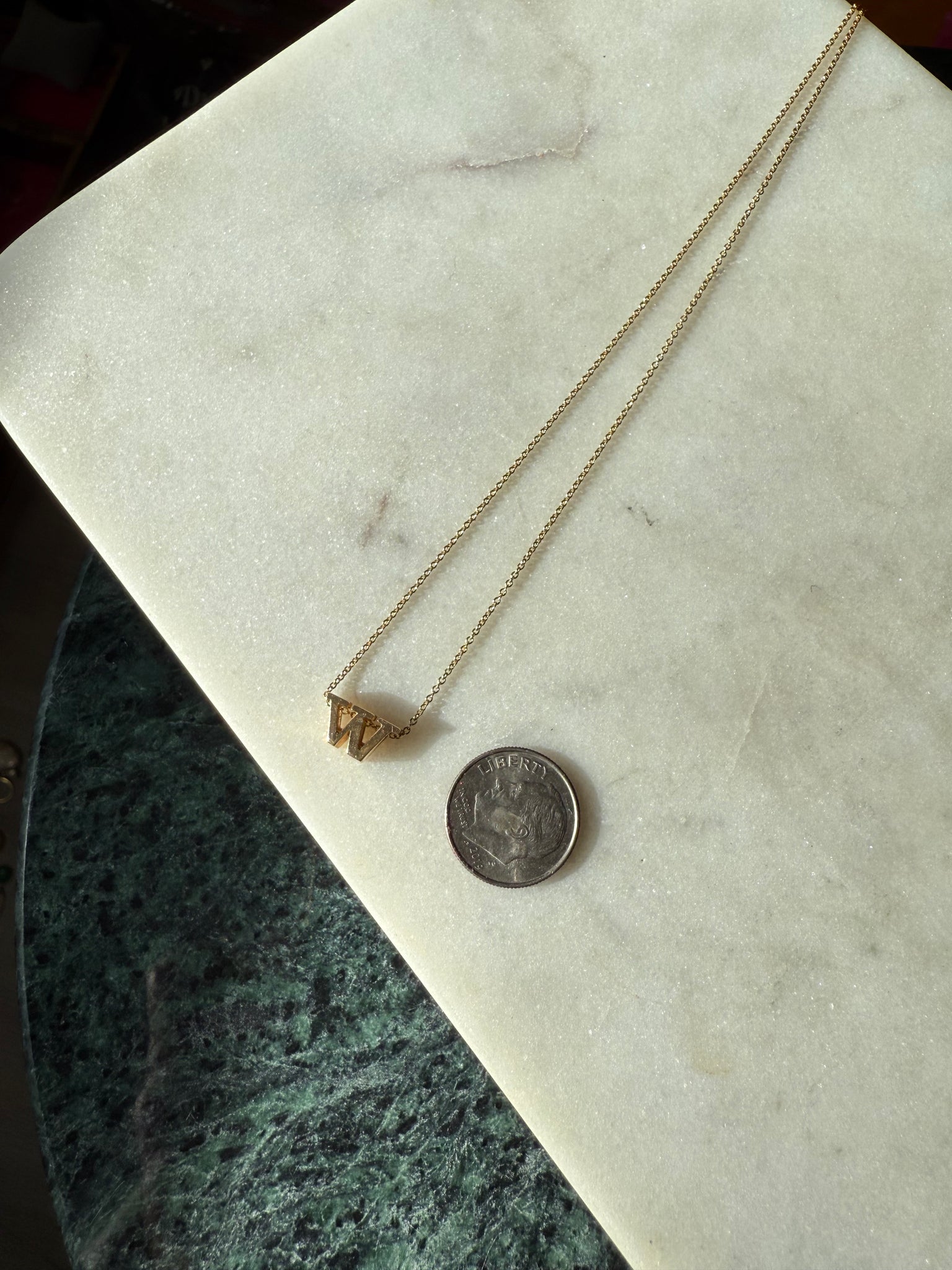 2.2 grams • comes with charm and chain, the slider W can come off the chain if you want to wear them separately • W measures 11mm x 6mm • chain measures 18” length and .75mm width links